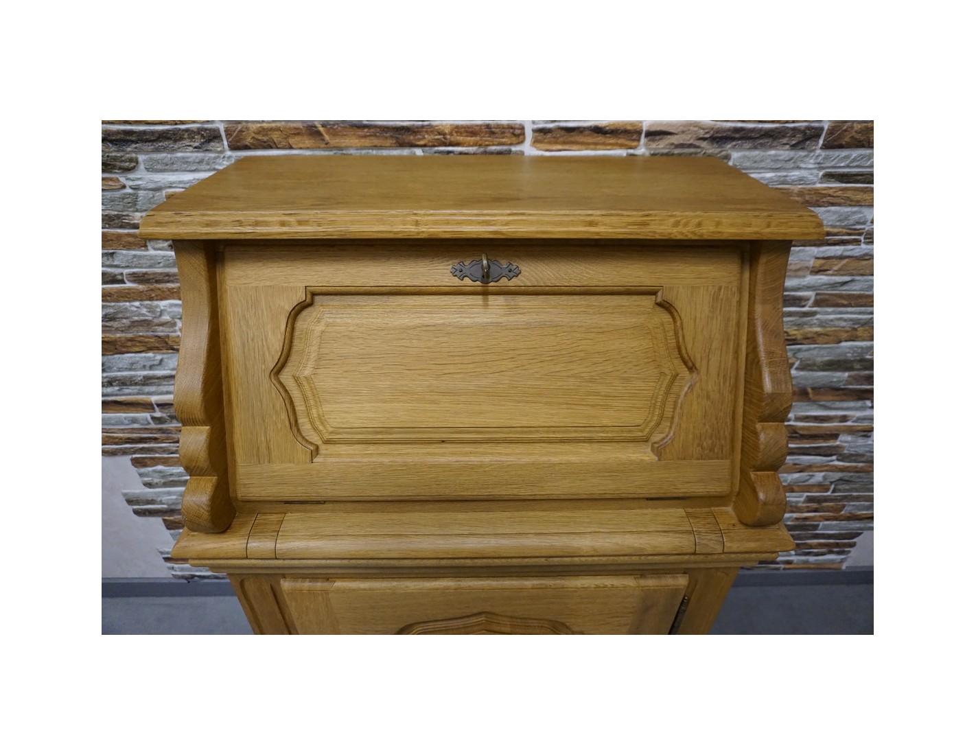 SEKRETARZYK Z LITEGO DĘBU O WYMIARACH 76 CM X 44 CM X 112 CM TO STYLOWE I FUNKCJONALNE ROZWIĄZANIE DO TWOJEGO WNĘTRZA. Z DWOMA DRZWICZKAMI ZAPEWNIA PRAKTYCZNĄ PRZESTRZEŃ DO PRZECHOWYWANIA, ZACHOWUJĄC JEDNOCZEŚNIE ELEGANCJĘ. SOLIDNA KONSTRUKCJA I MINIMALISTYCZNY DESIGN SPRAWIAJĄ, ŻE TEN SEKRETARZYK DOSKONALE ŁĄCZY TRADYCYJNY UROK Z NOWOCZESNĄ FUNKCJONALNOŚCIĄ, STANOWIĄC WYJĄTKOWE MIEJSCE DO PRACY CZY PRZECHOWYWANIA DROBIAZGÓW.