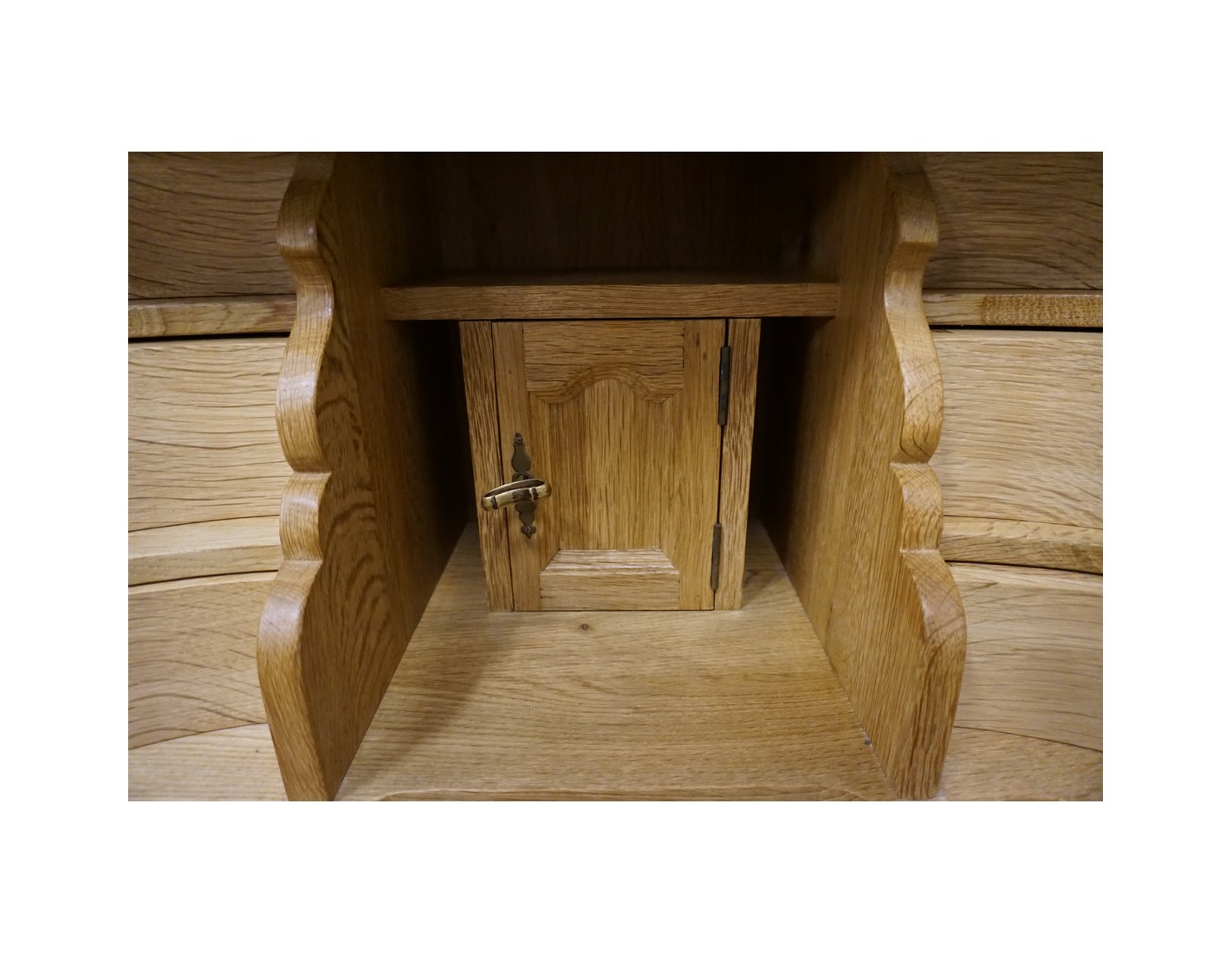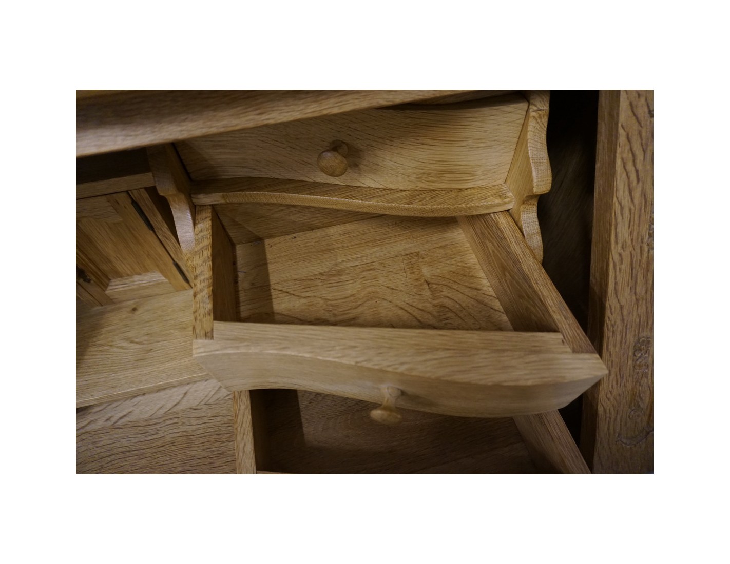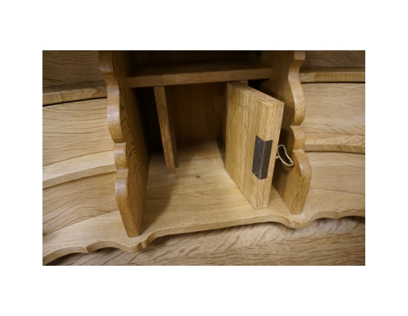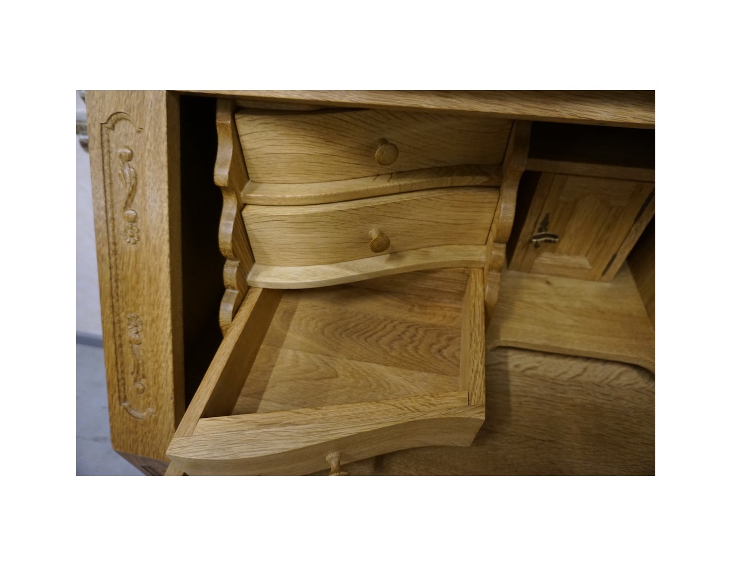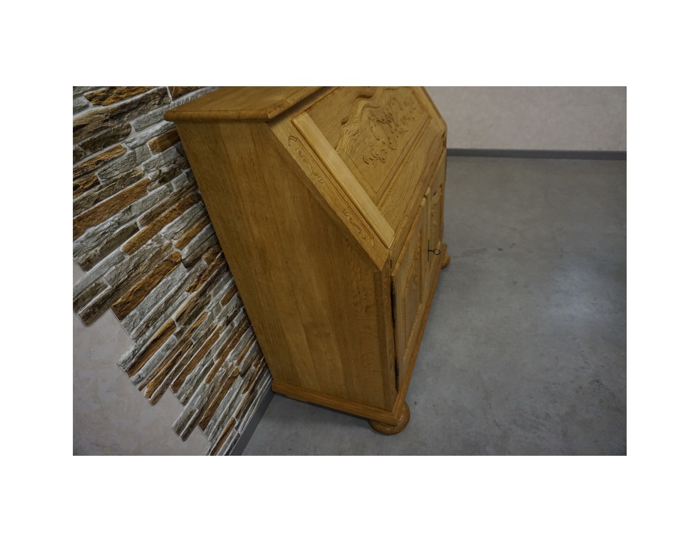 Stylowy sekretarzyk z litego dębu to doskonałe połączenie klasycznego designu i praktycznych rozwiązań. Idealnie sprawdzi się w gabinecie, salonie lub sypialni, oferując wygodne miejsce do pracy oraz przechowywania.