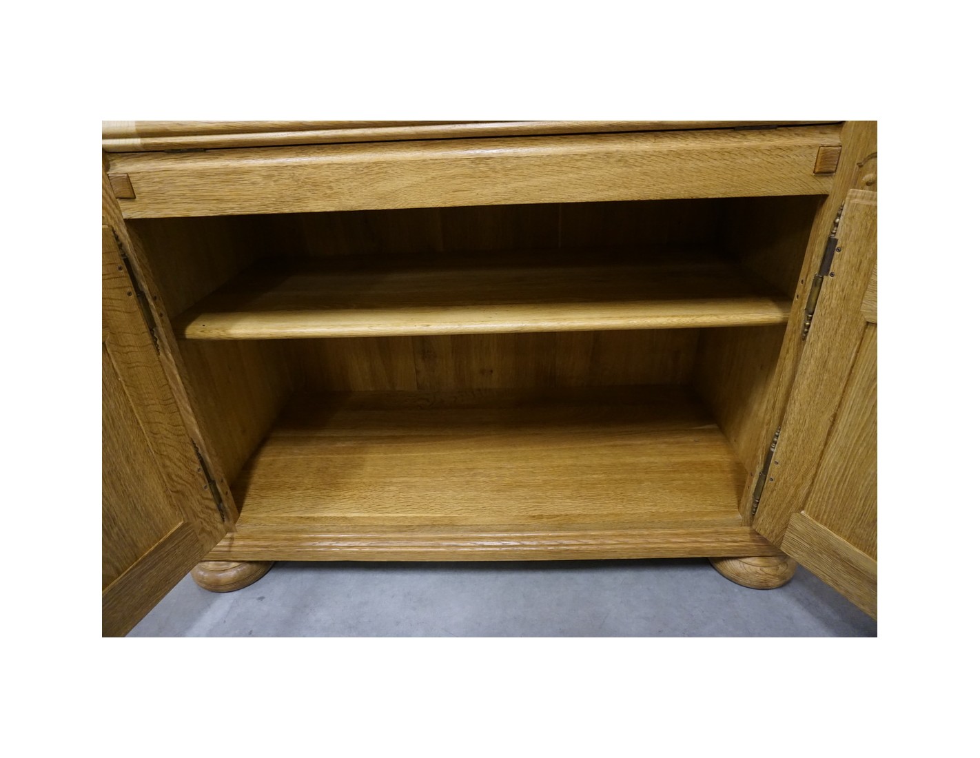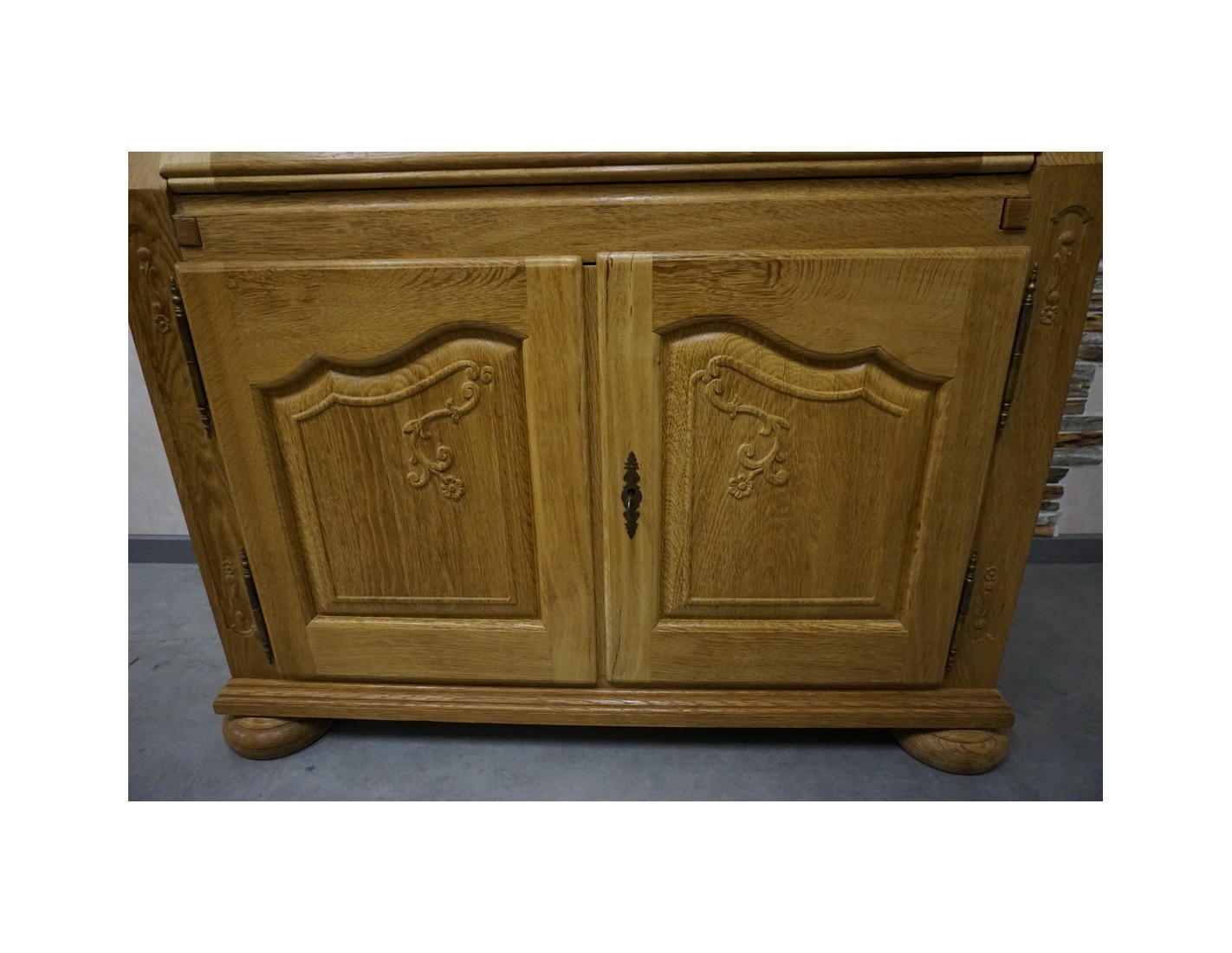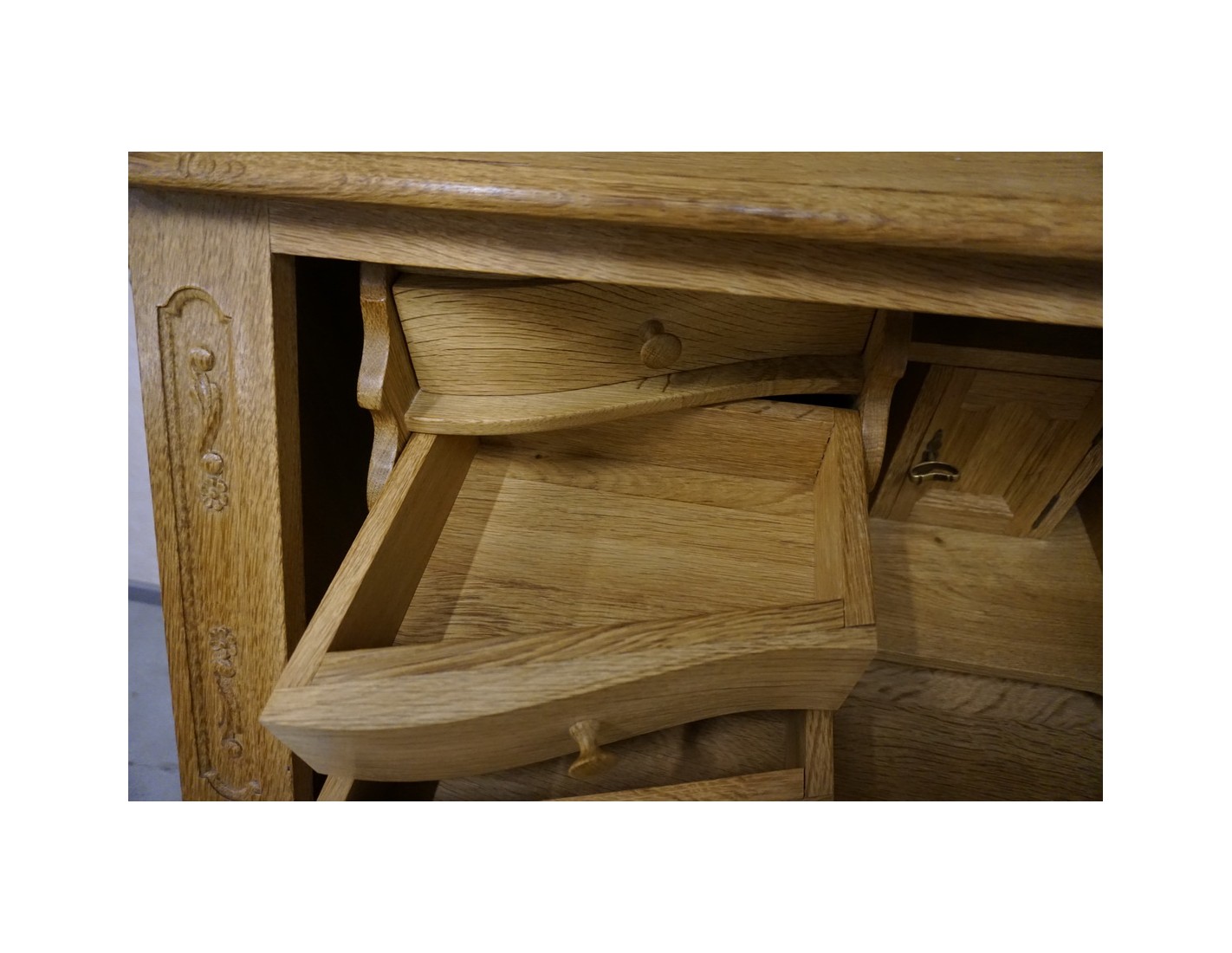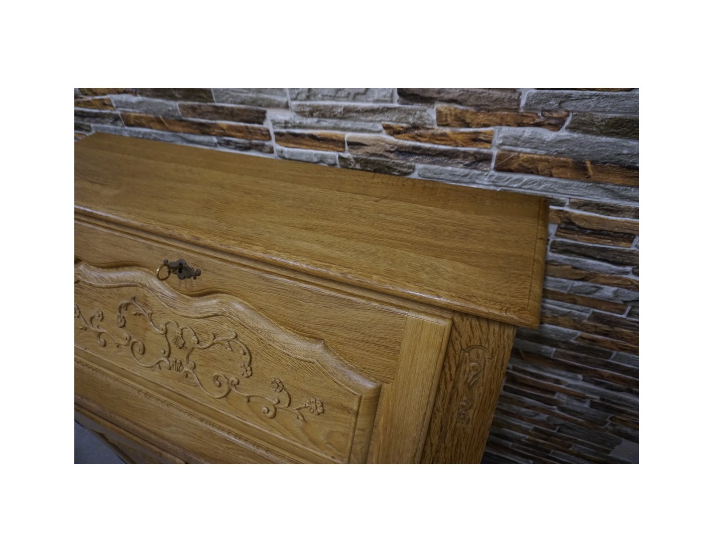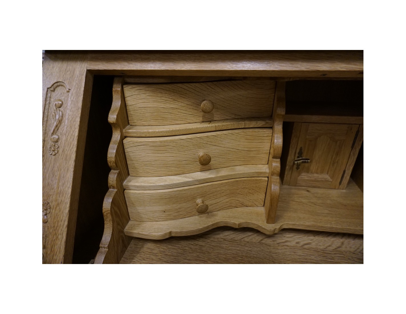 Stylowy sekretarzyk z litego dębu to doskonałe połączenie klasycznego designu i praktycznych rozwiązań. Idealnie sprawdzi się w gabinecie, salonie lub sypialni, oferując wygodne miejsce do pracy oraz przechowywania.