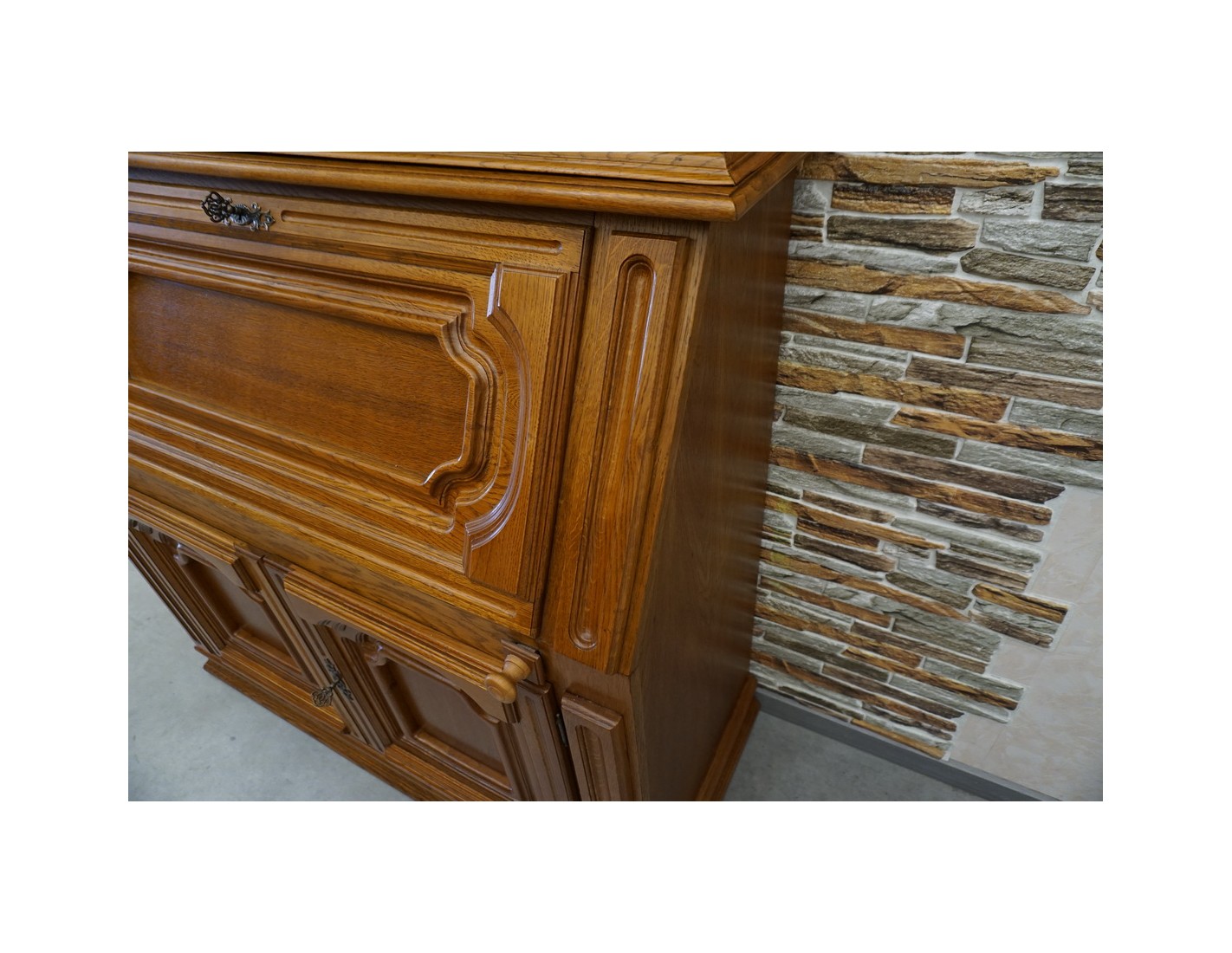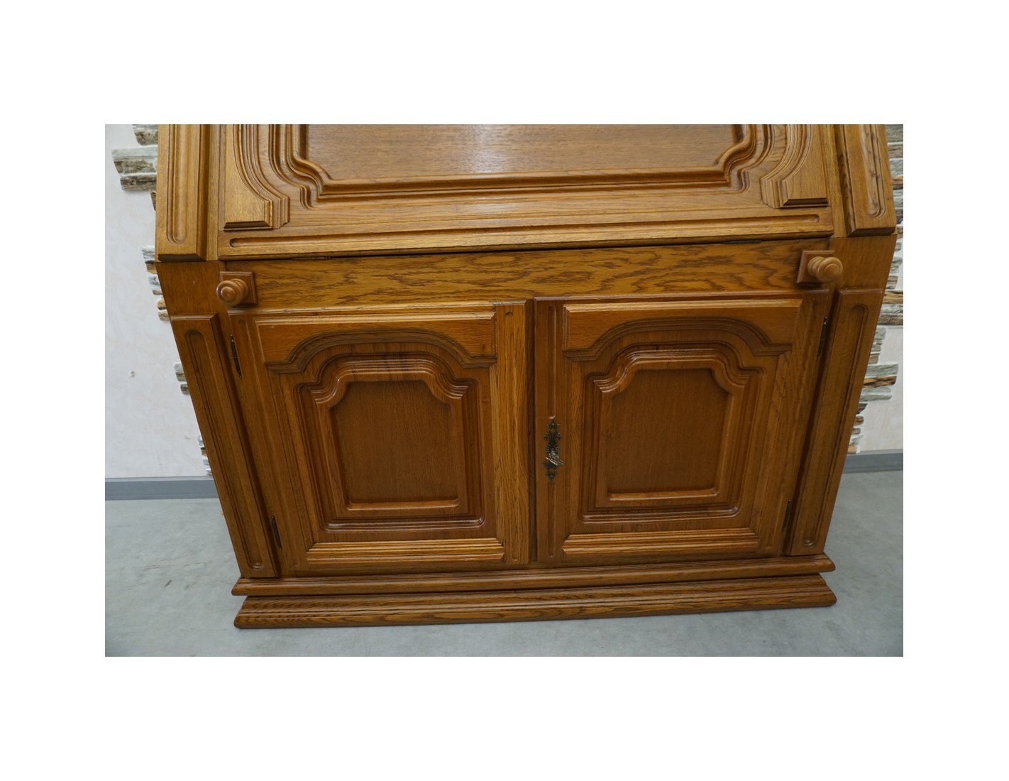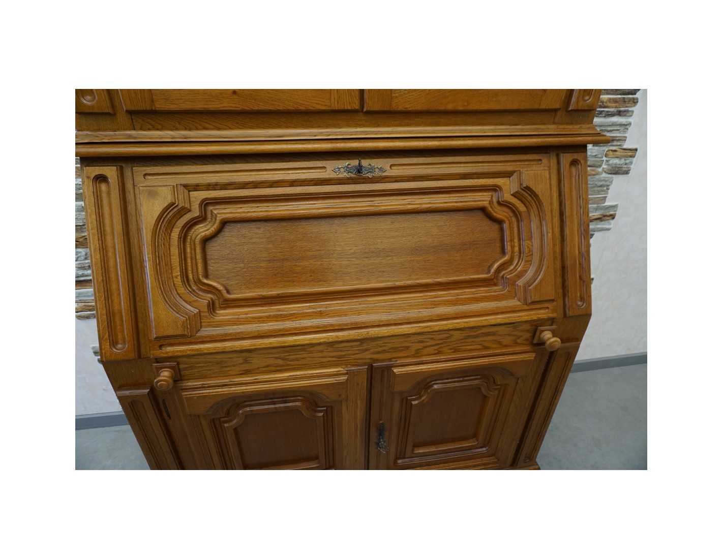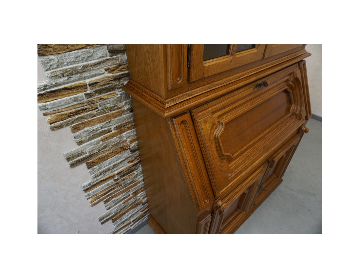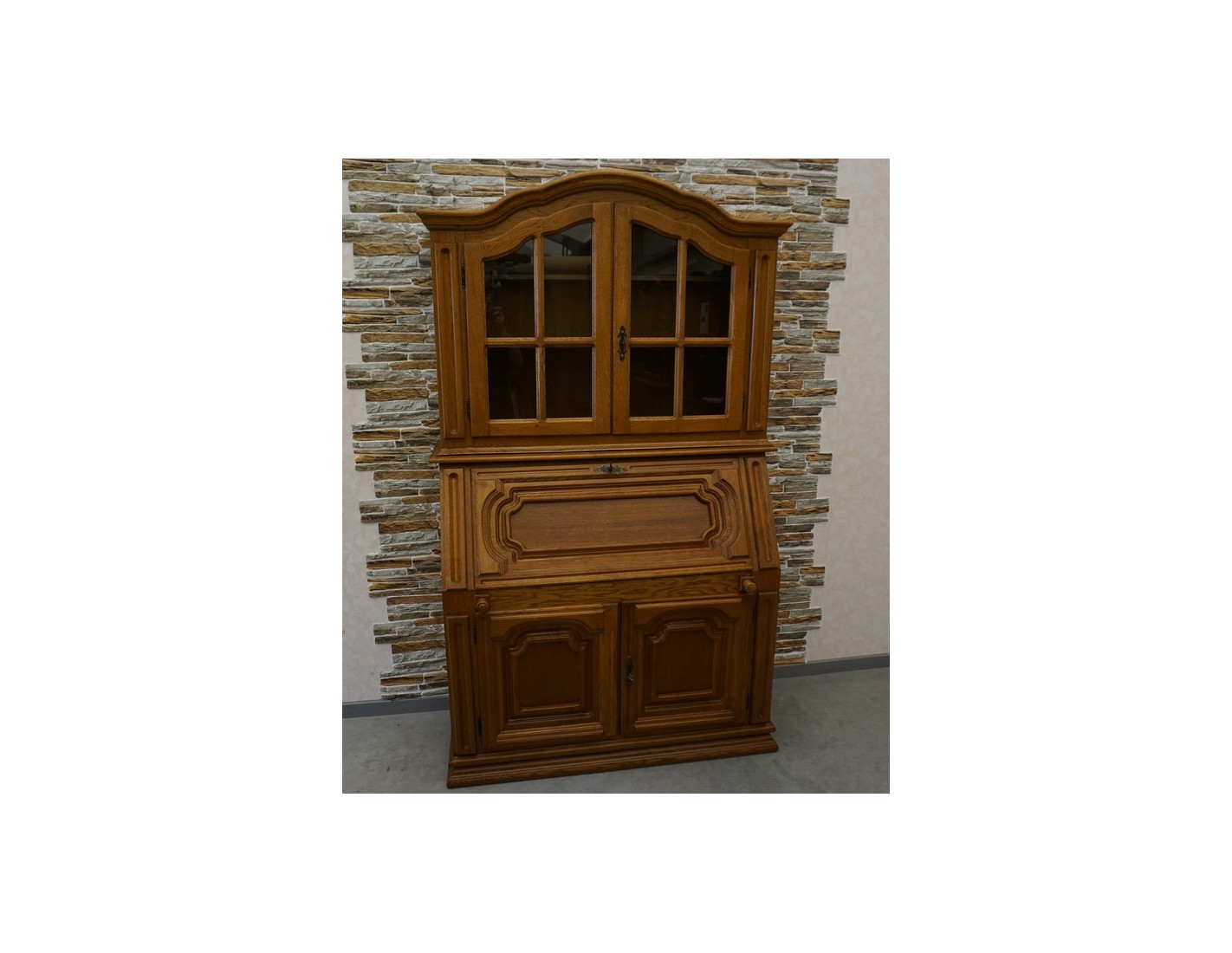 Elegancki sekretarzyk dębowy to połączenie funkcjonalności z klasycznym stylem. Wysoka forma z licznymi półkami i schowkami czyni go idealnym miejscem do pracy lub przechowywania dokumentów, korespondencji czy dekoracji. Wykonany z dbałością o detale, będzie stylowym dodatkiem do gabinetu, salonu lub biblioteki.
