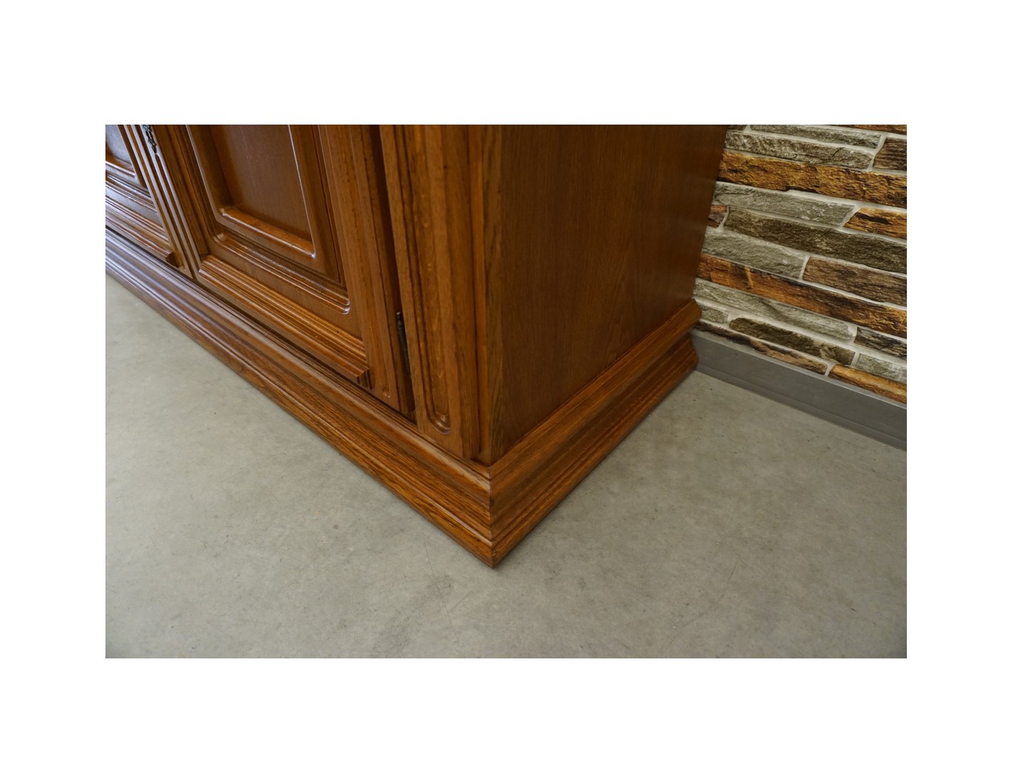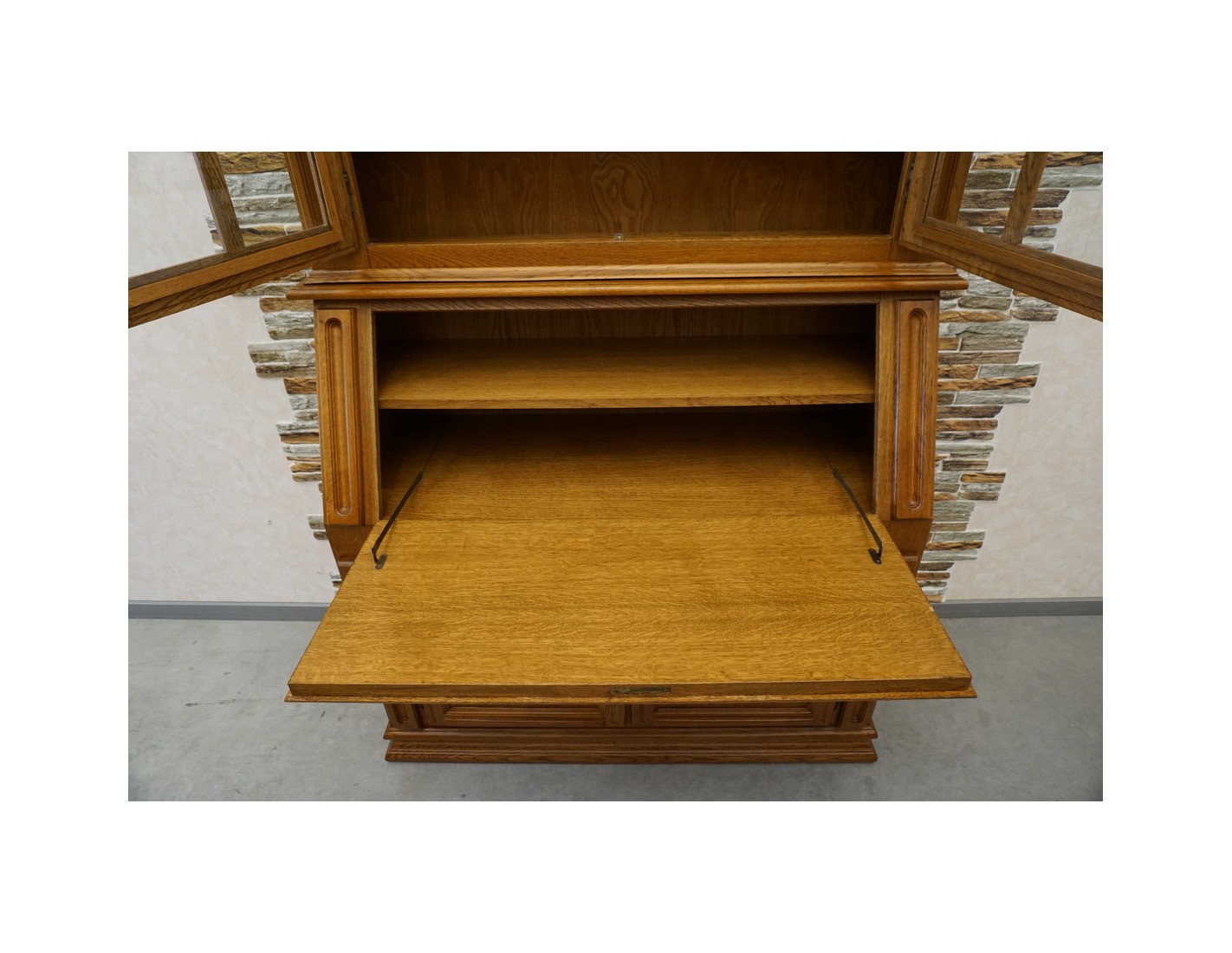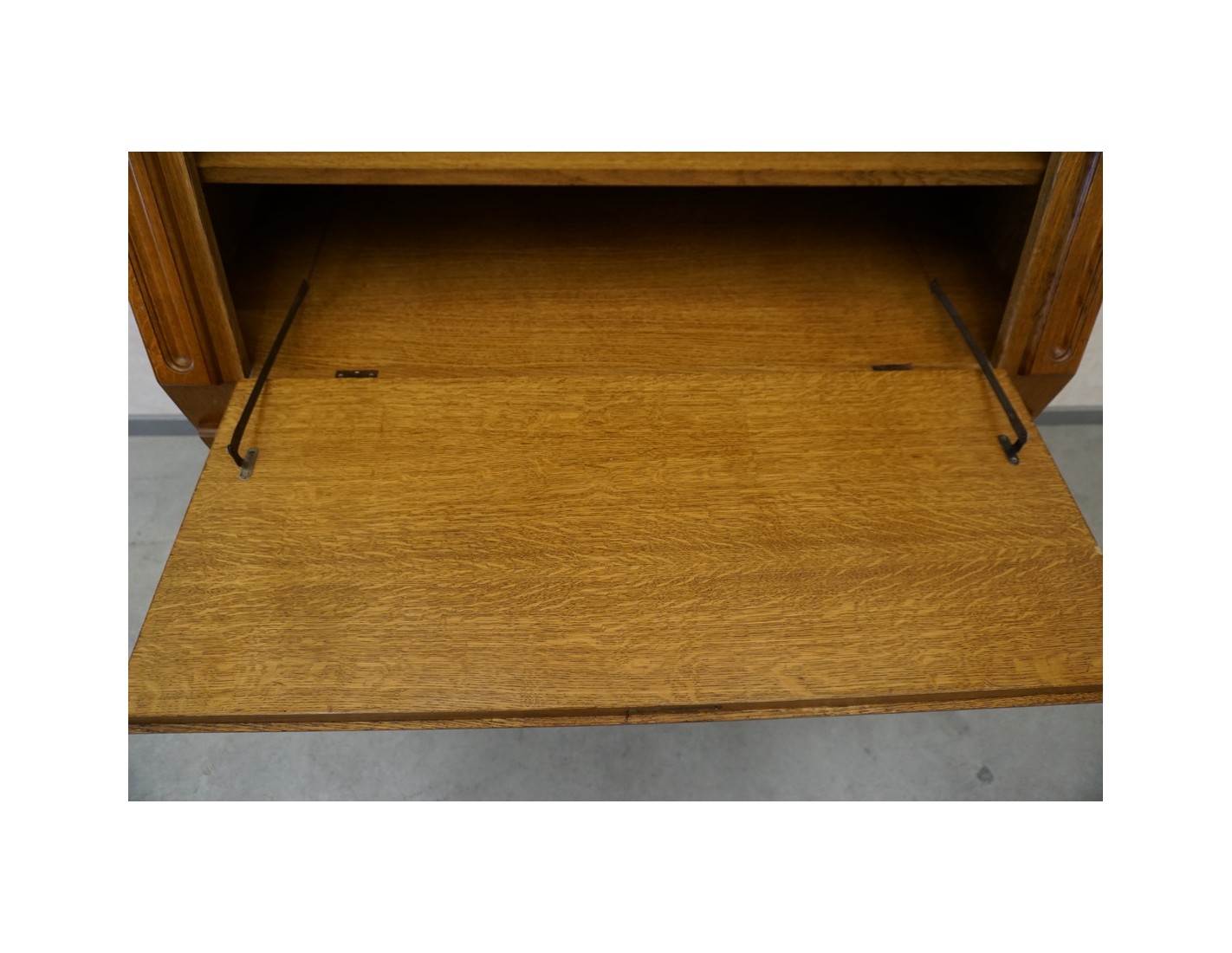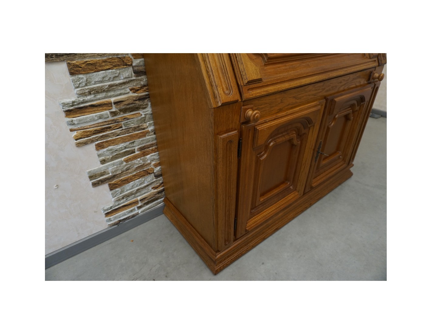 Elegancki sekretarzyk dębowy to połączenie funkcjonalności z klasycznym stylem. Wysoka forma z licznymi półkami i schowkami czyni go idealnym miejscem do pracy lub przechowywania dokumentów, korespondencji czy dekoracji. Wykonany z dbałością o detale, będzie stylowym dodatkiem do gabinetu, salonu lub biblioteki.