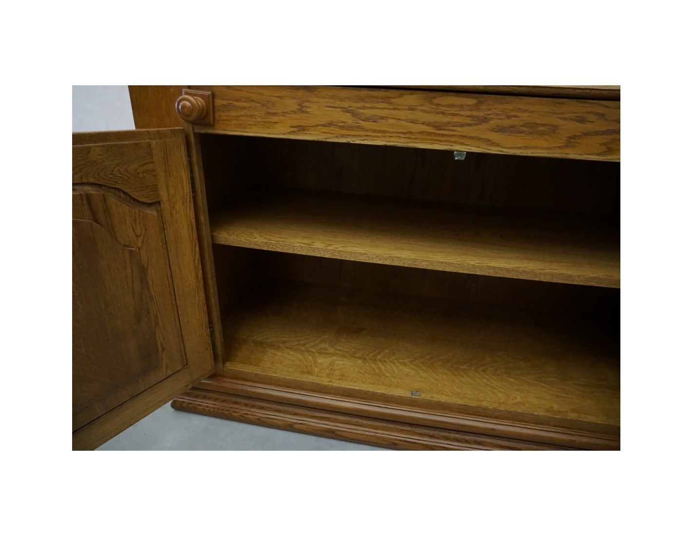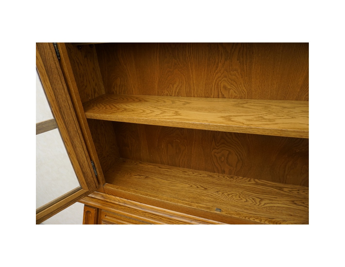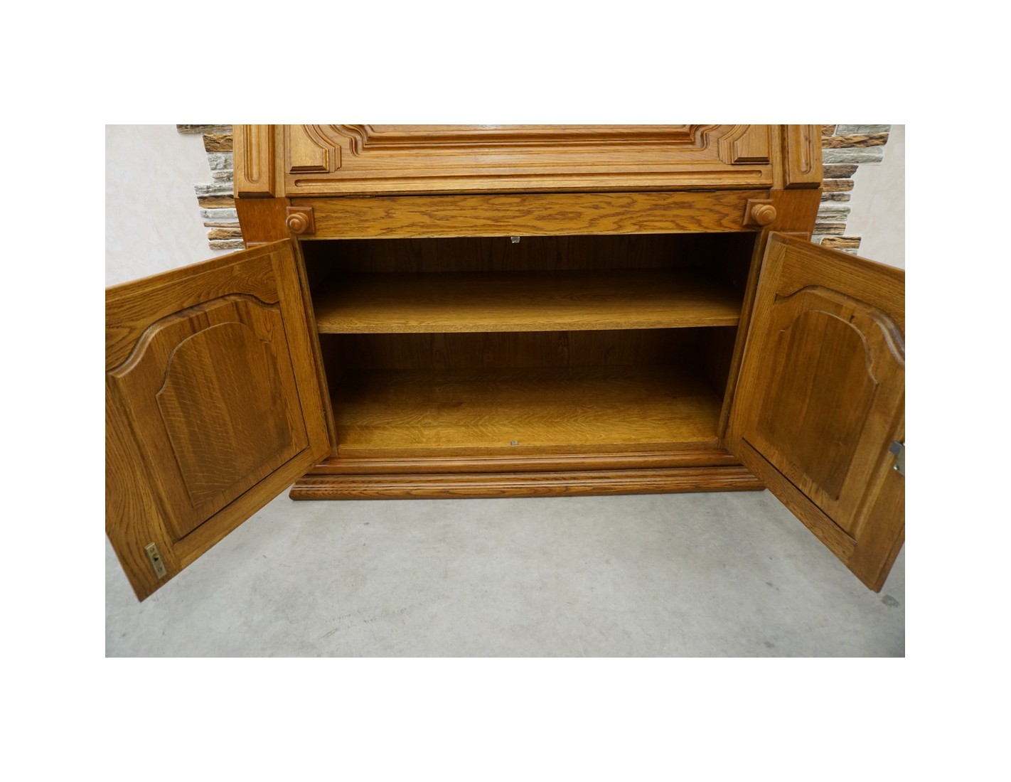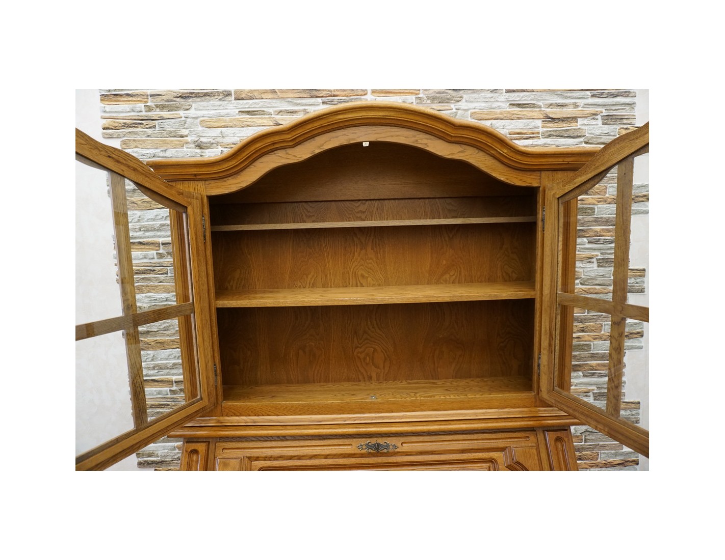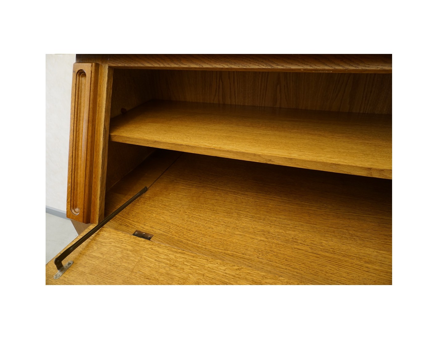Elegancki sekretarzyk dębowy to połączenie funkcjonalności z klasycznym stylem. Wysoka forma z licznymi półkami i schowkami czyni go idealnym miejscem do pracy lub przechowywania dokumentów, korespondencji czy dekoracji. Wykonany z dbałością o detale, będzie stylowym dodatkiem do gabinetu, salonu lub biblioteki.