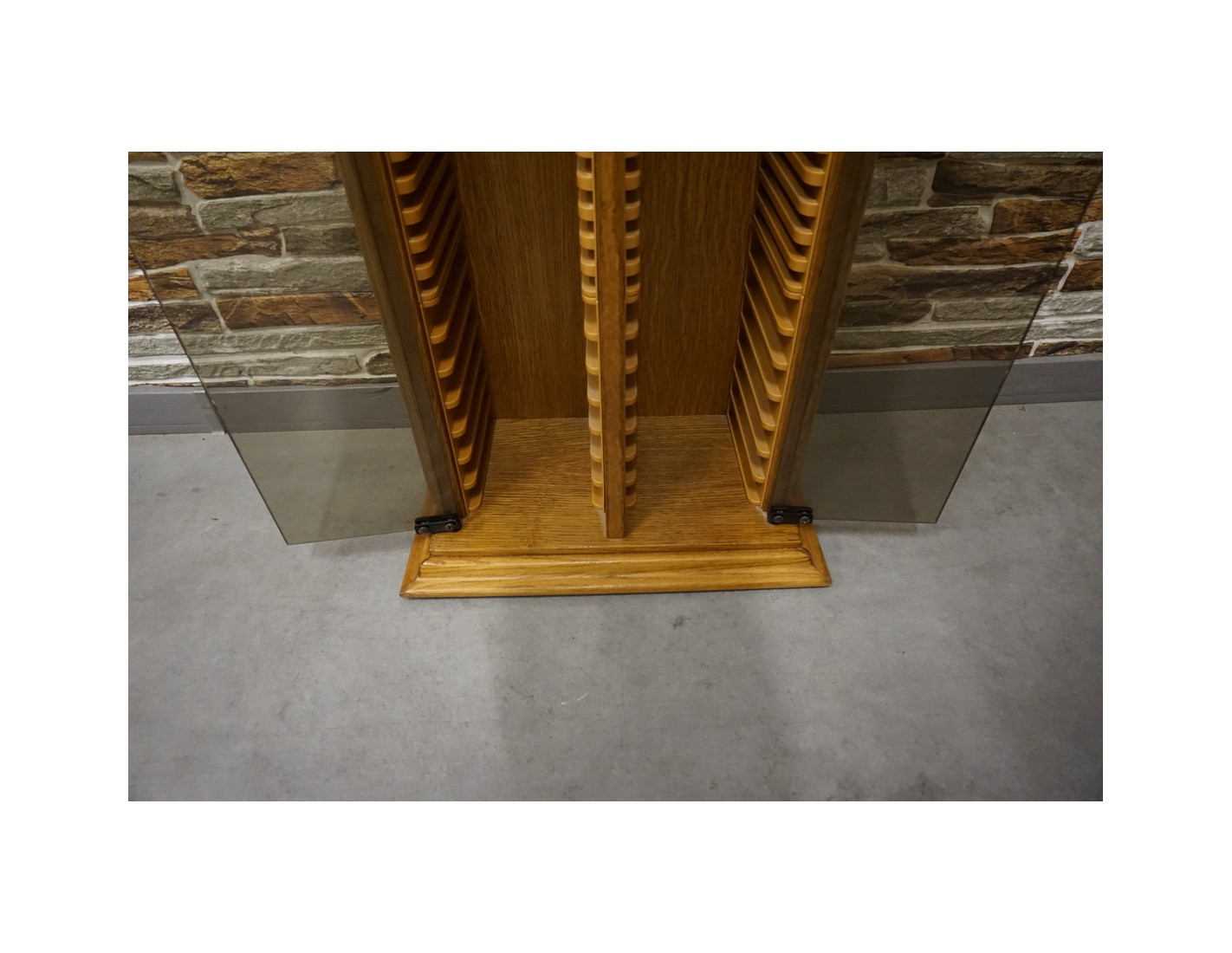 Szafka została zaprojektowana z myślą o wygodnym przechowywaniu płyt CD. Stabilna konstrukcja oraz naturalne wykończenie dębu podkreślają jej solidność i elegancki charakter. Świetnie komponuje się z innymi meblami dębowymi, tworząc spójną aranżację wnętrza.