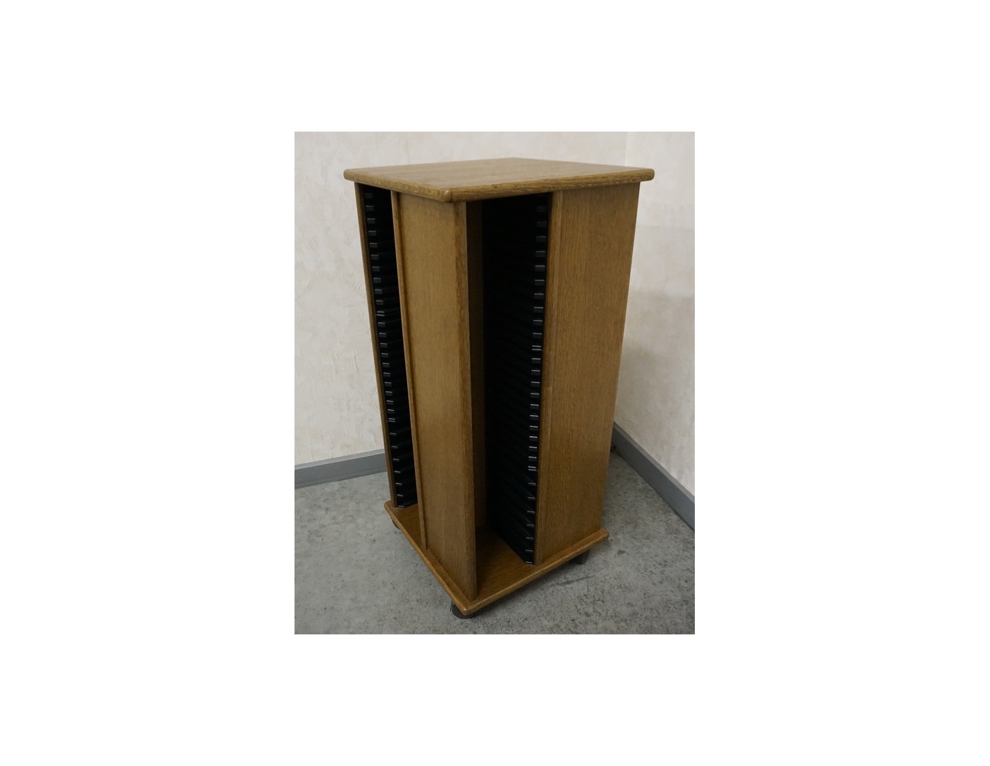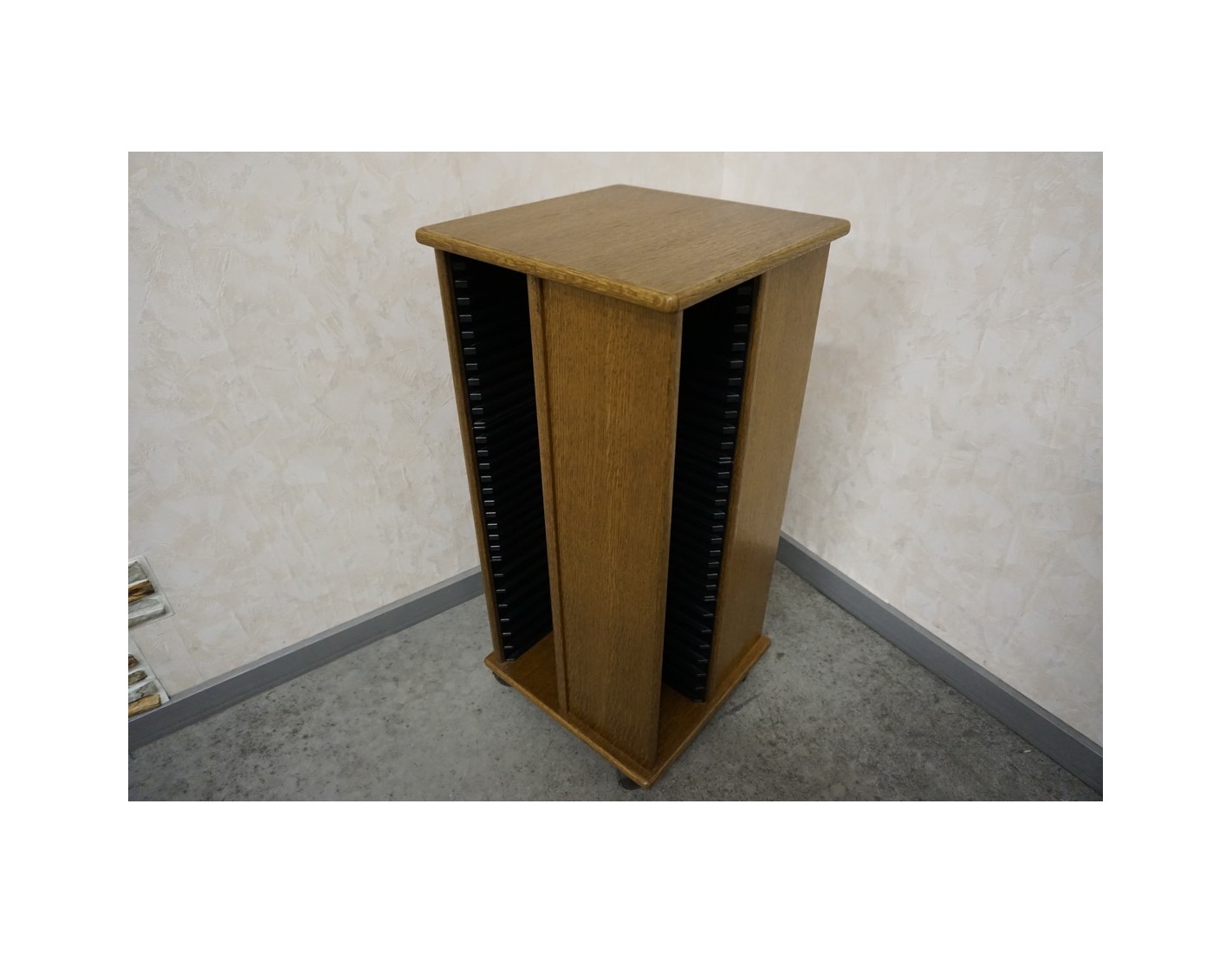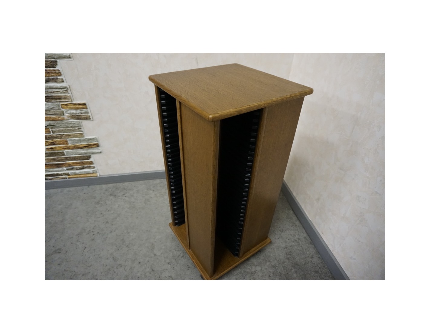 Stojak został zaprojektowany tak, aby pomieścić dużą liczbę płyt przy zachowaniu niewielkiej powierzchni użytkowej. Wewnątrz znajduje się miejsce na aż 144 płyty CD, co pozwala uporządkować kolekcję i mieć ją zawsze pod ręką.