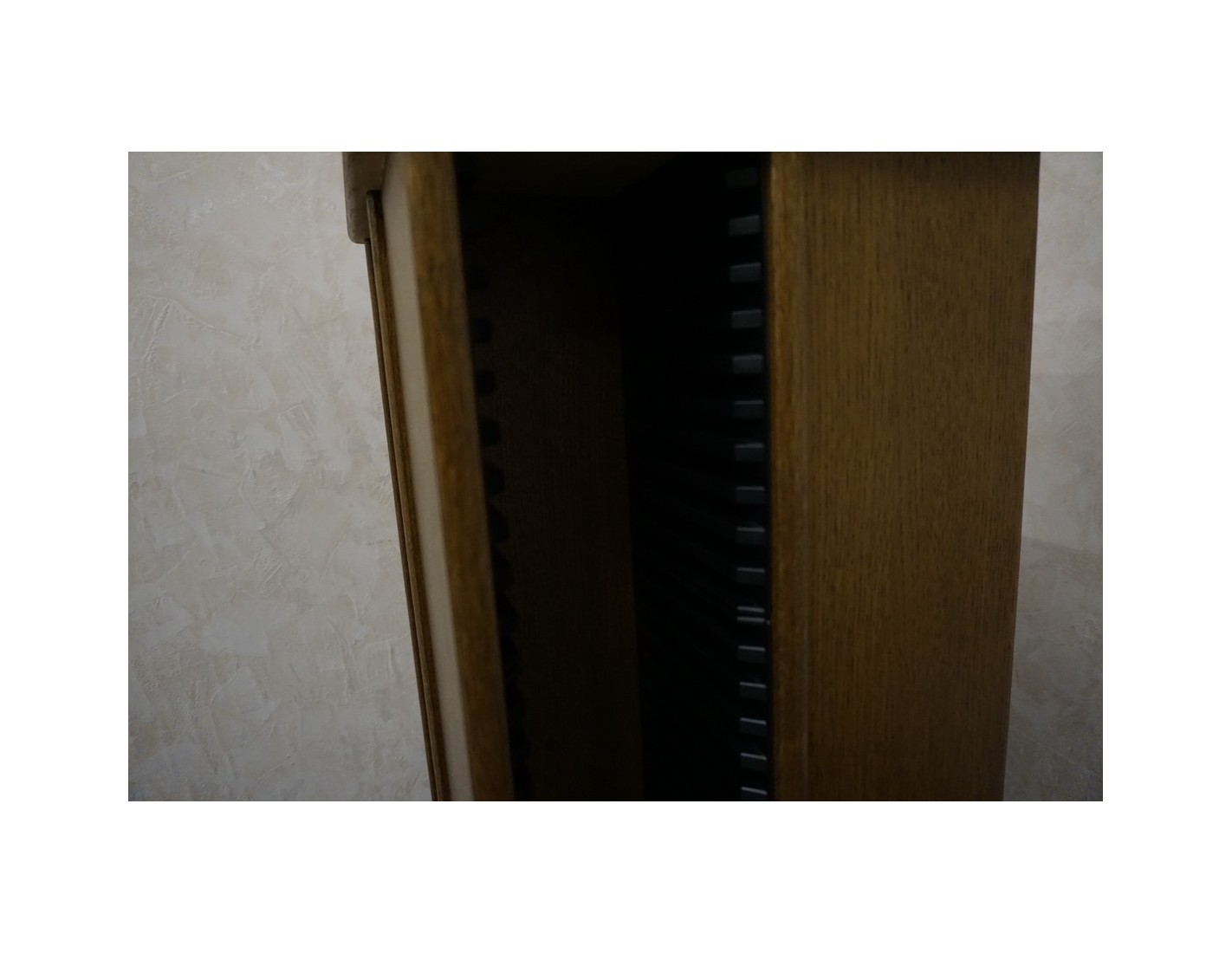 Dębowe wykończenie nadaje meblowi elegancki i ponadczasowy wygląd, dzięki czemu stojak dobrze komponuje się z różnymi stylami wnętrz – od klasycznych po nowoczesne.