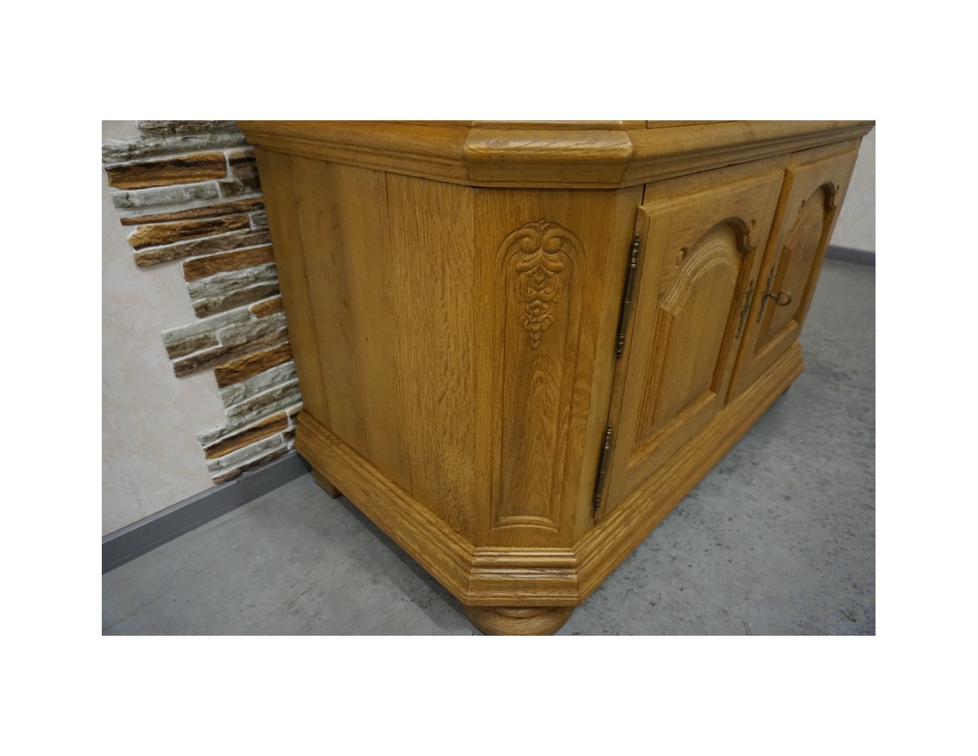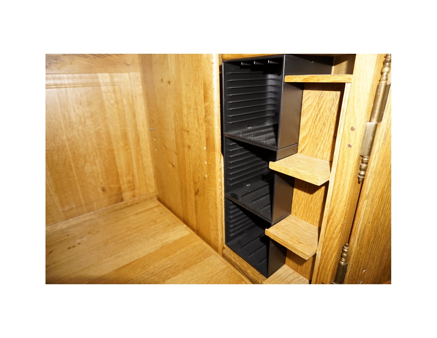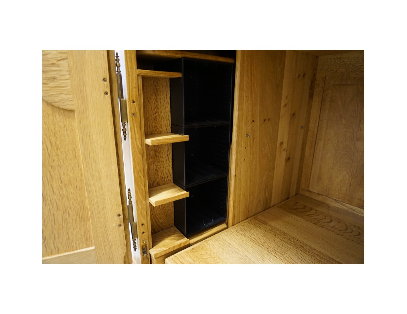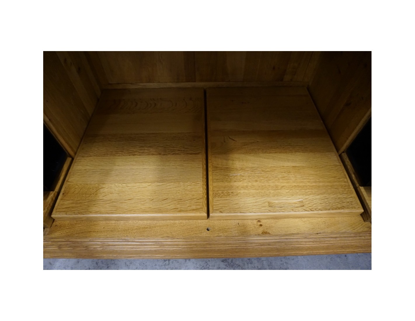 TA KOMODA NIE TYLKO ZACHWYCA ESTETYKĄ, ALE TAKŻE OFERUJE FUNKCJONALNE MIEJSCE NA PRZECHOWYWANIE PŁYT DVD W DOLNEJ CZĘŚCI. DĘBOWE WYKONANIE DODAJE NIEPOWTARZALNEGO UROKU, A WYSOKA FORMA MEBLA PRZYCIĄGA UWAGĘ, NADAJĄC WNĘTRZU ELEGANCJI.
