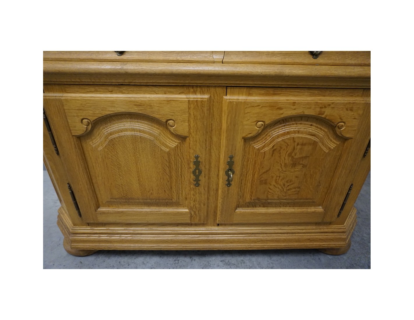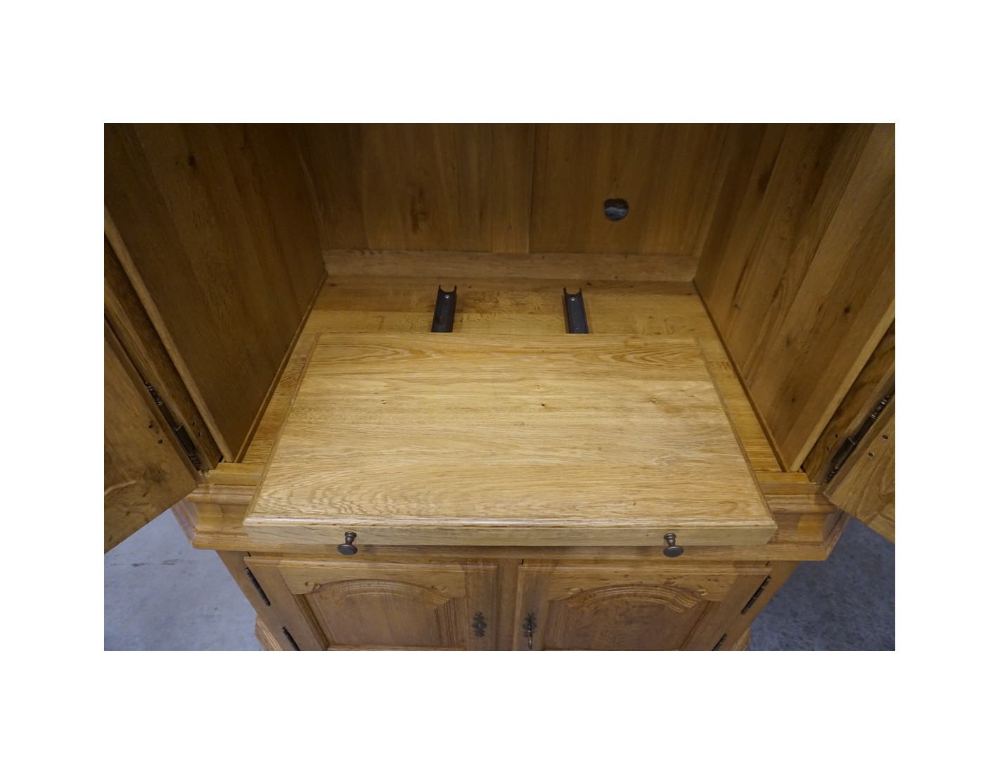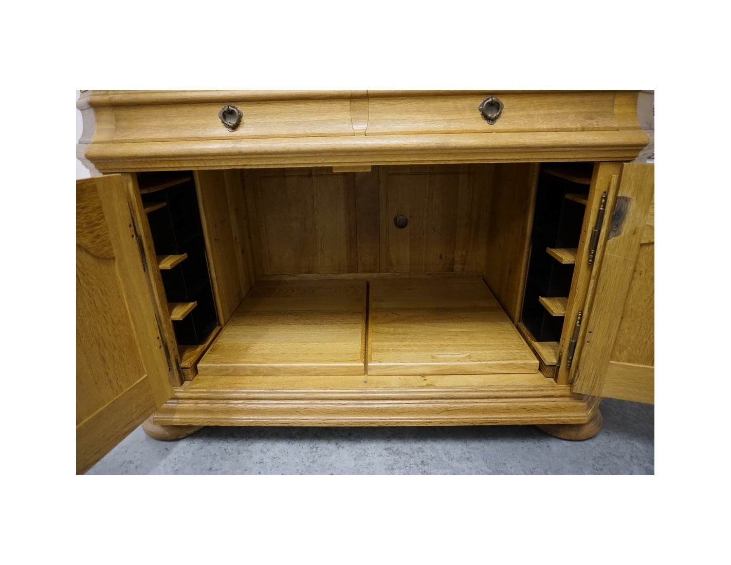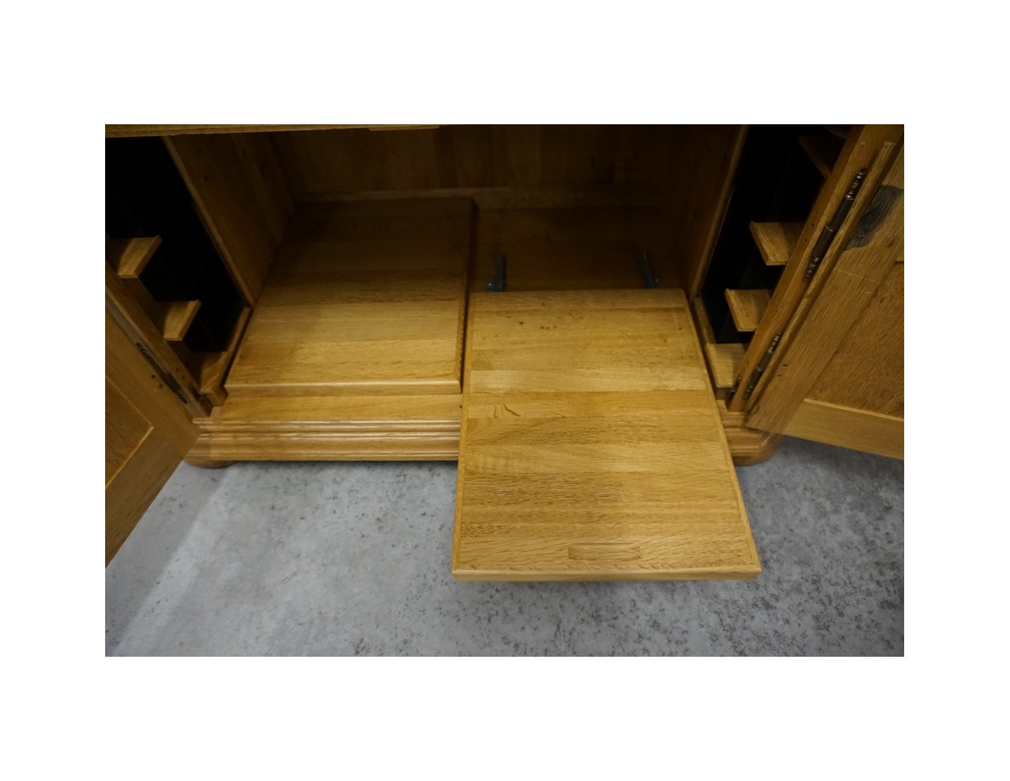 TA KOMODA NIE TYLKO ZACHWYCA ESTETYKĄ, ALE TAKŻE OFERUJE FUNKCJONALNE MIEJSCE NA PRZECHOWYWANIE PŁYT DVD W DOLNEJ CZĘŚCI. DĘBOWE WYKONANIE DODAJE NIEPOWTARZALNEGO UROKU, A WYSOKA FORMA MEBLA PRZYCIĄGA UWAGĘ, NADAJĄC WNĘTRZU ELEGANCJI.