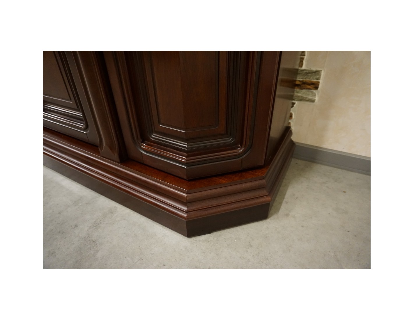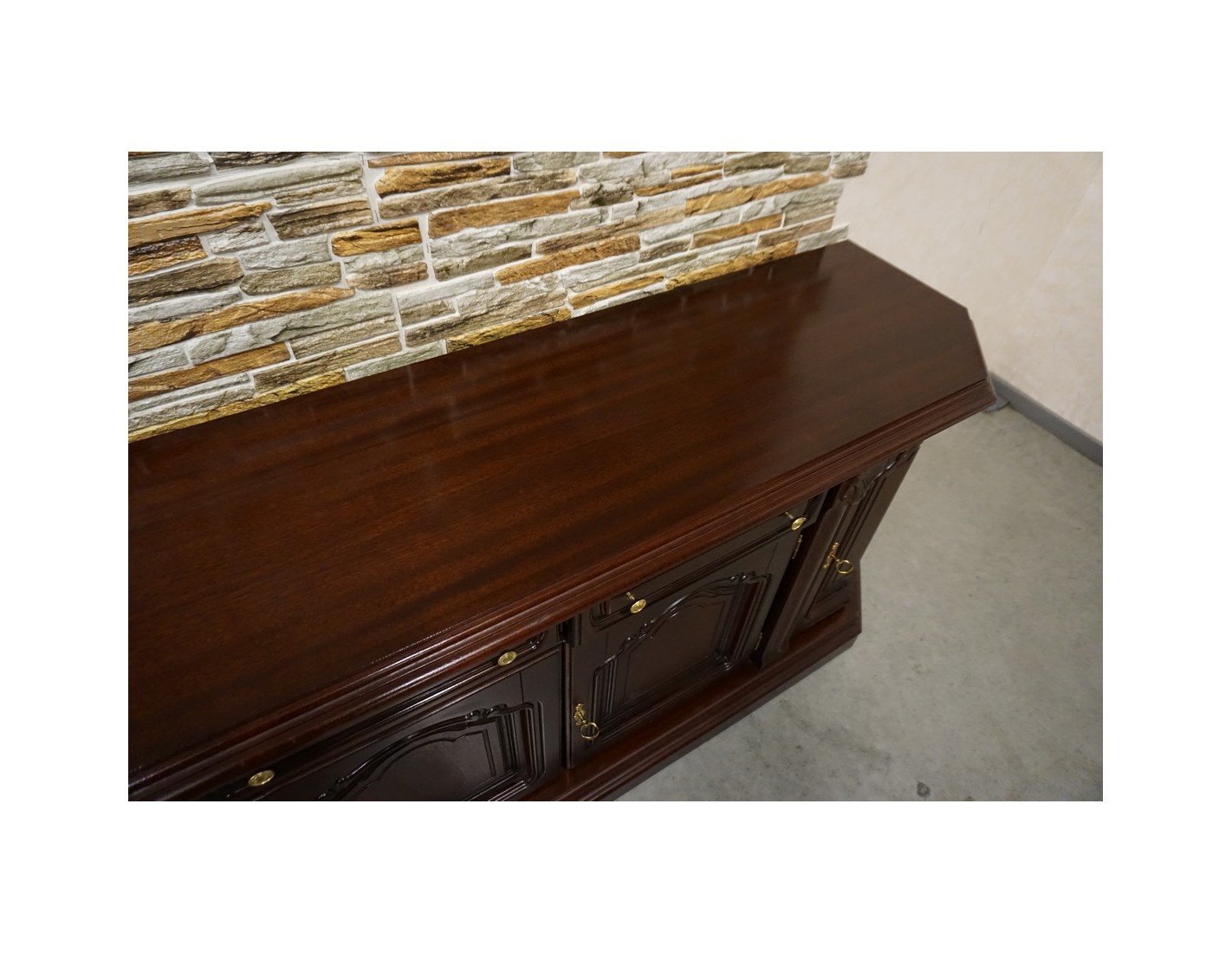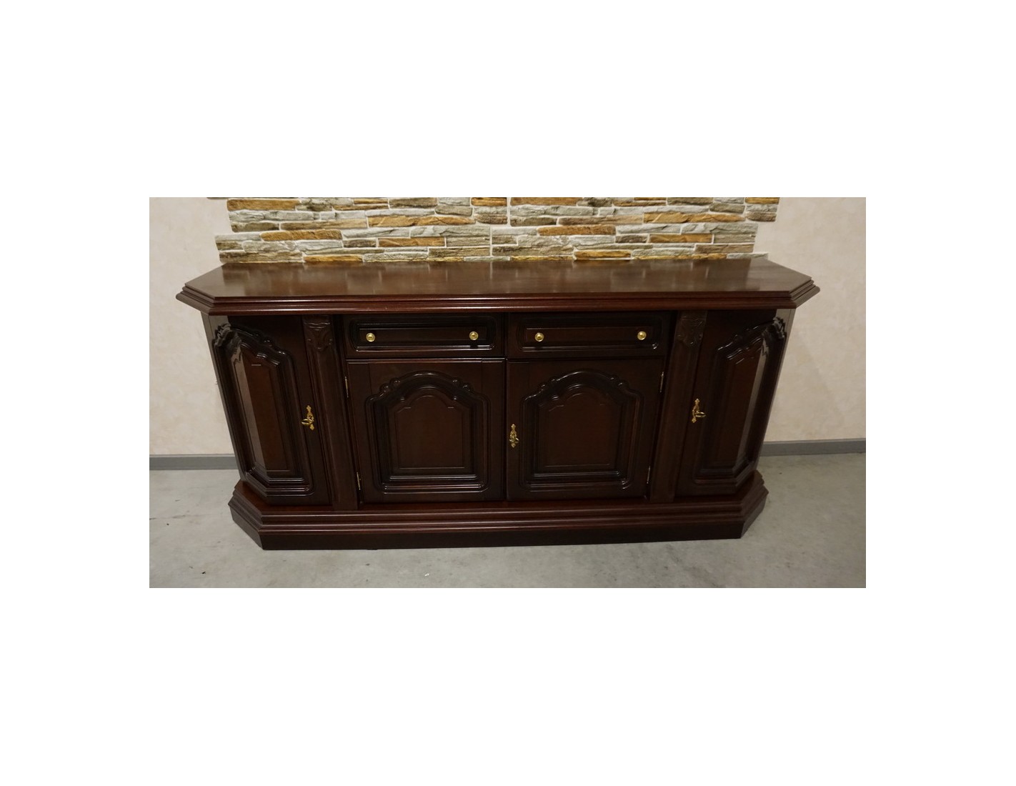 Elegancka komoda w kolorze mahoniu, która łączy klasyczny design z wysoką funkcjonalnością. Doskonale sprawdzi się w salonie, jadalni lub sypialni, oferując przestronną przestrzeń do przechowywania.