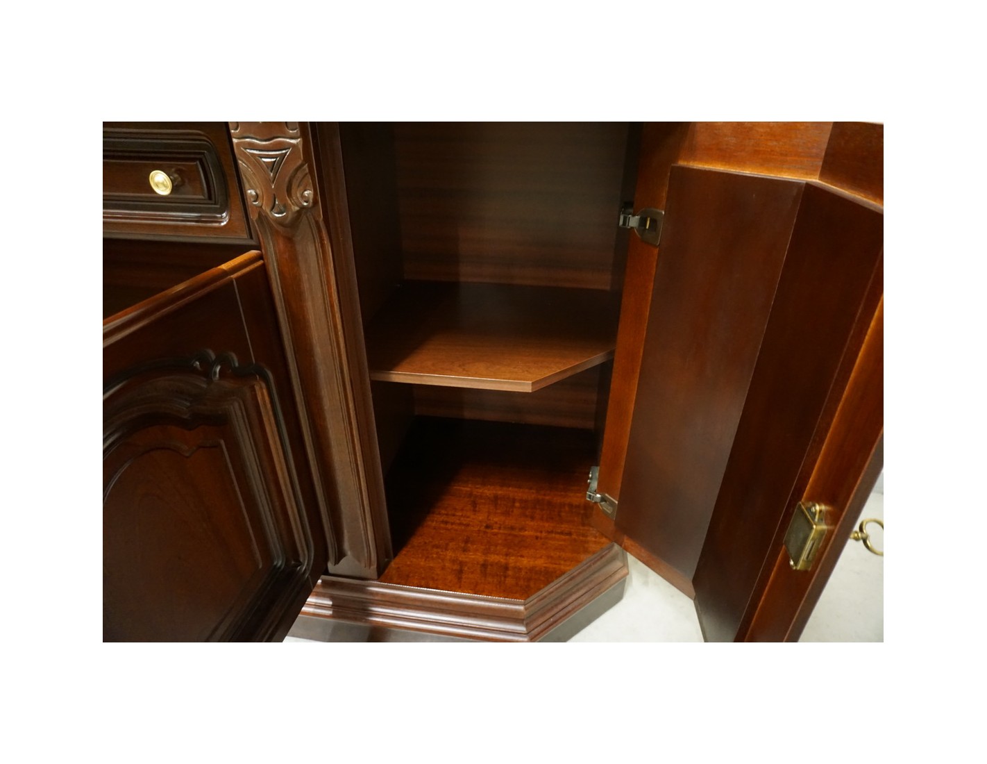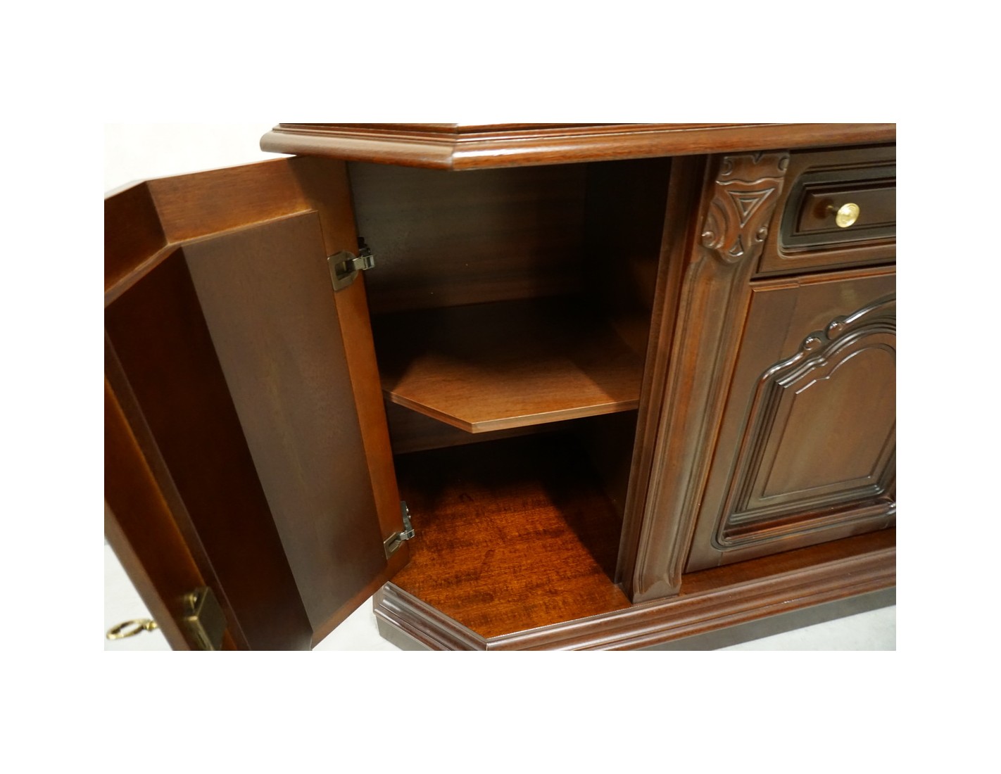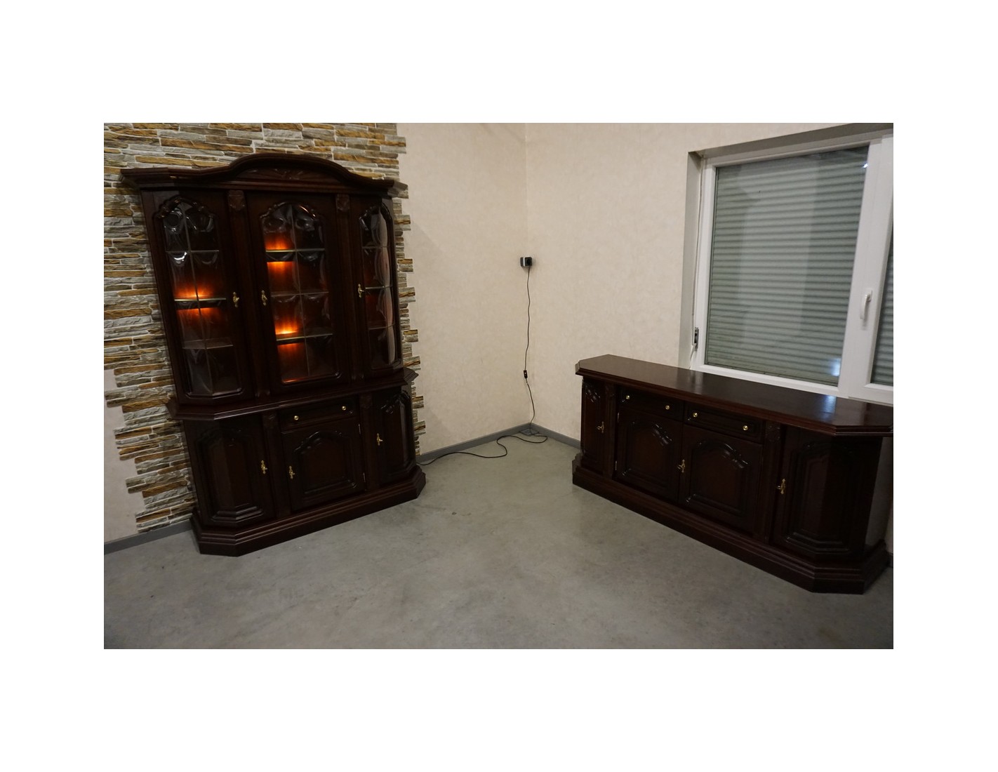 Elegancka komoda w kolorze mahoniu, która łączy klasyczny design z wysoką funkcjonalnością. Doskonale sprawdzi się w salonie, jadalni lub sypialni, oferując przestronną przestrzeń do przechowywania.