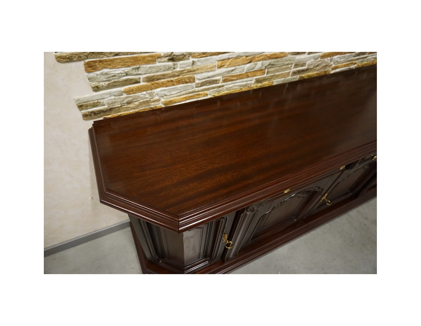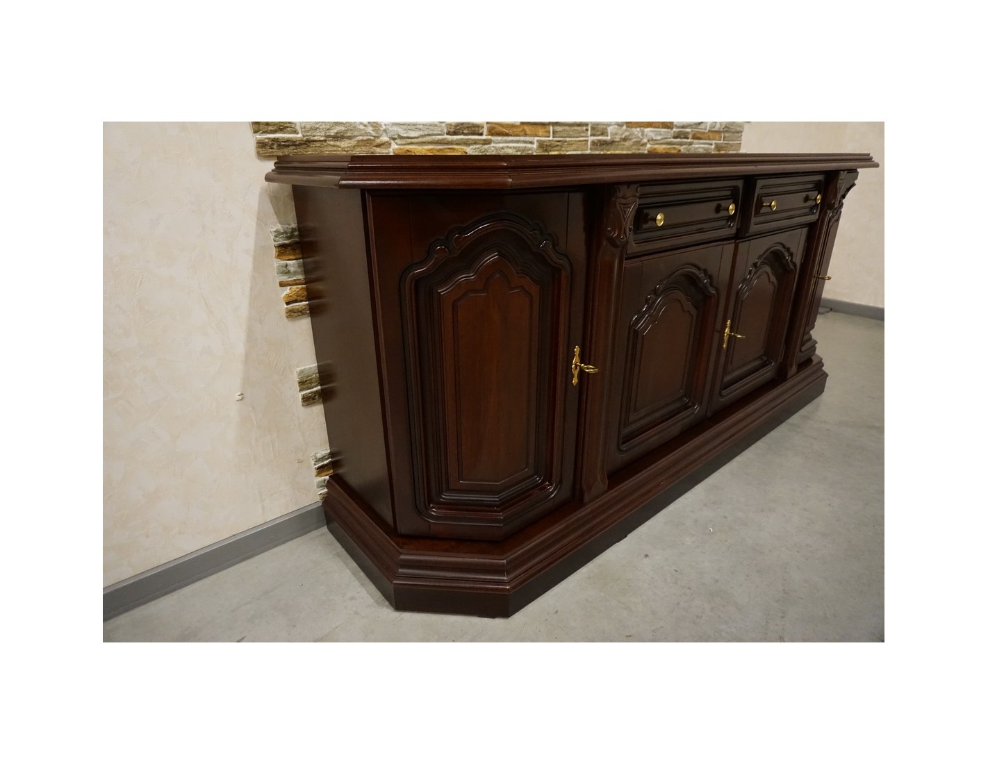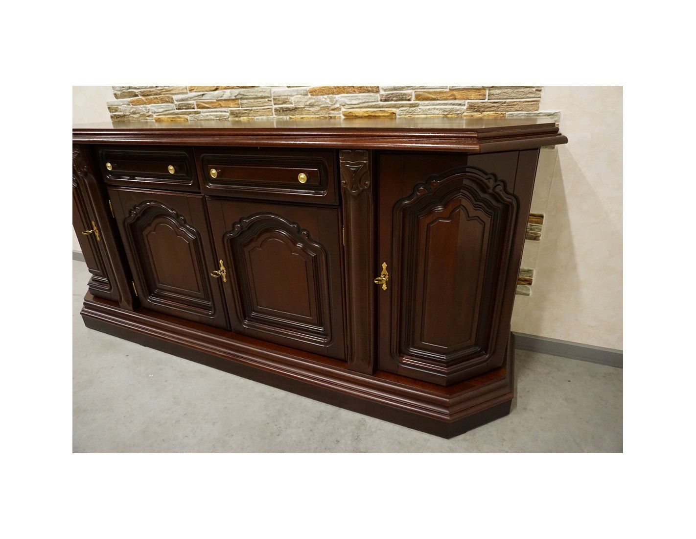 Komoda wyposażona jest w cztery drzwi oraz dwie praktyczne szuflady, które pomieszczą wszystkie niezbędne przedmioty. Mahoń nadaje jej wyjątkowego charakteru i klasy.