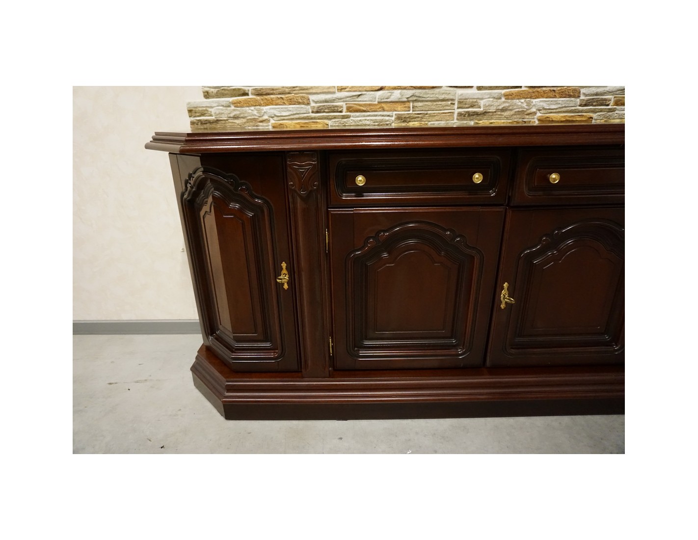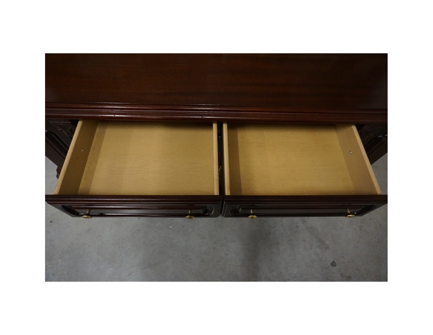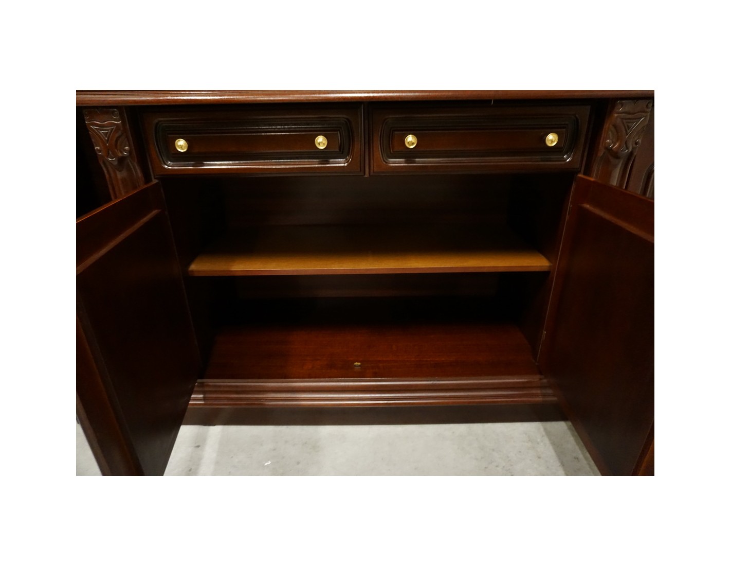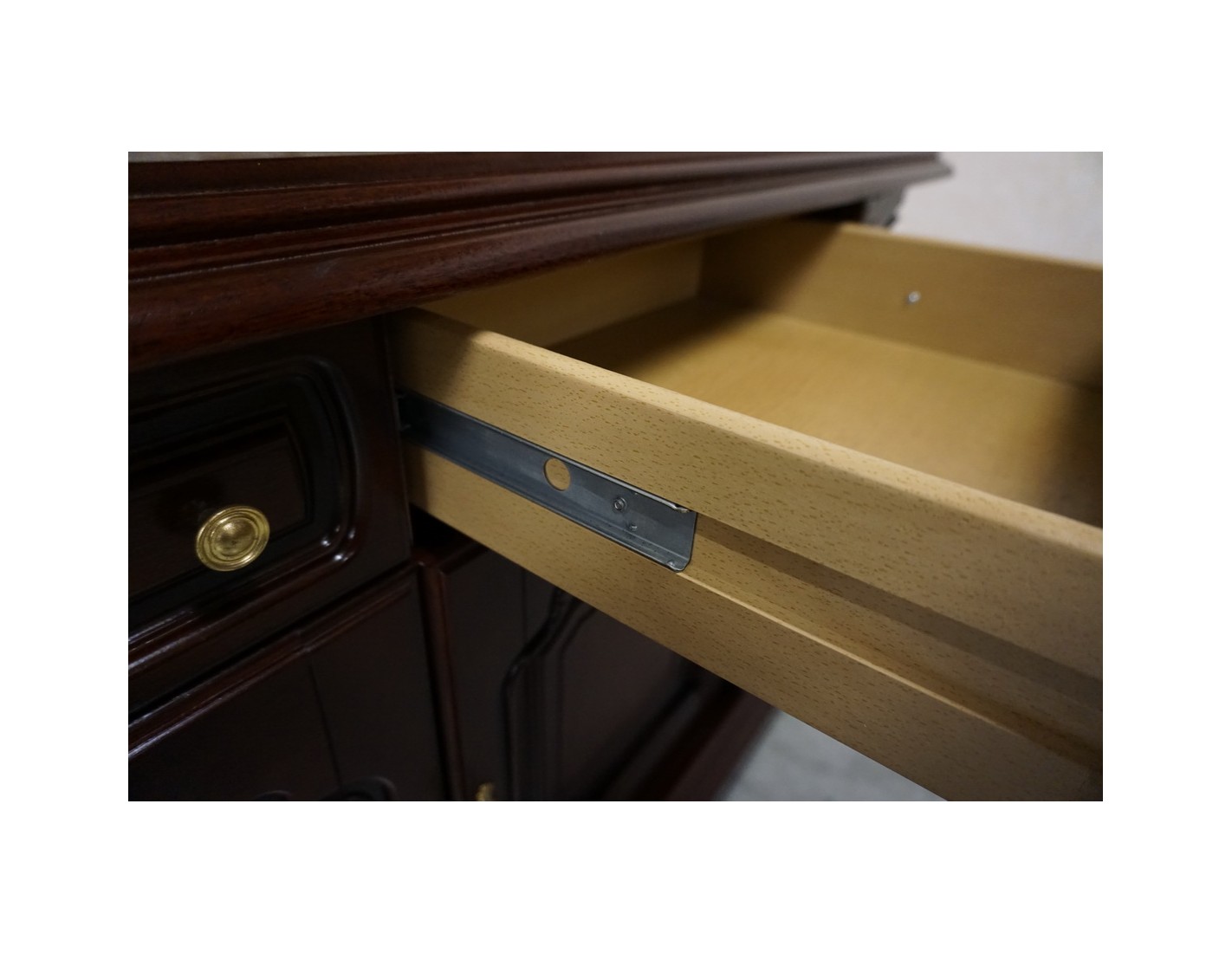 Komoda wyposażona jest w cztery drzwi oraz dwie praktyczne szuflady, które pomieszczą wszystkie niezbędne przedmioty. Mahoń nadaje jej wyjątkowego charakteru i klasy.