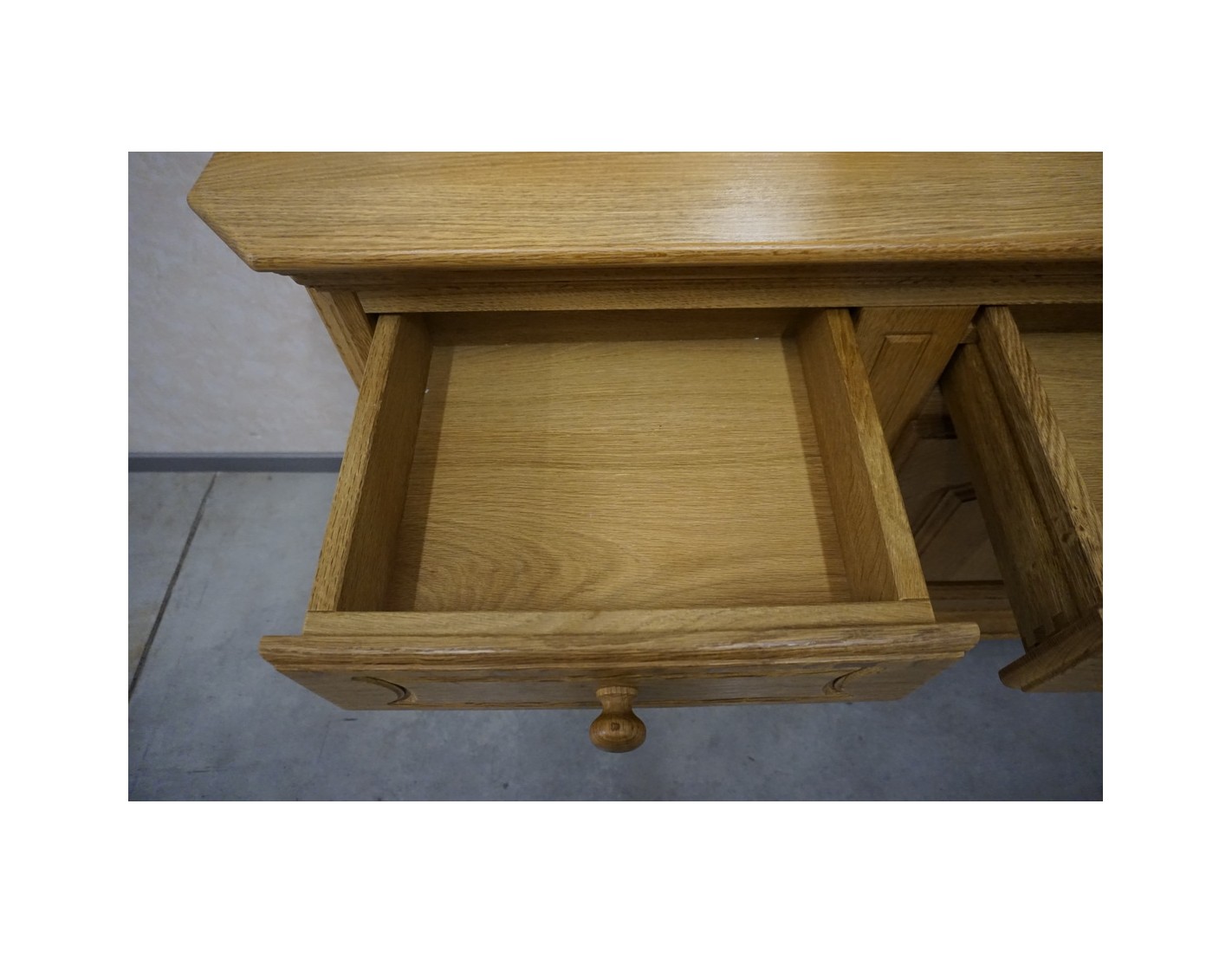Przestronna i elegancka komoda wykonana z litego dębu. Doskonała do salonu, jadalni czy sypialni, zapewnia mnóstwo miejsca do przechowywania.