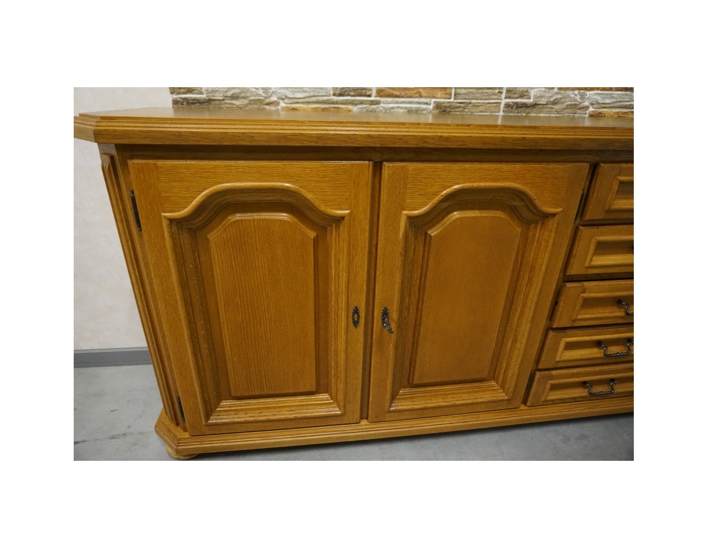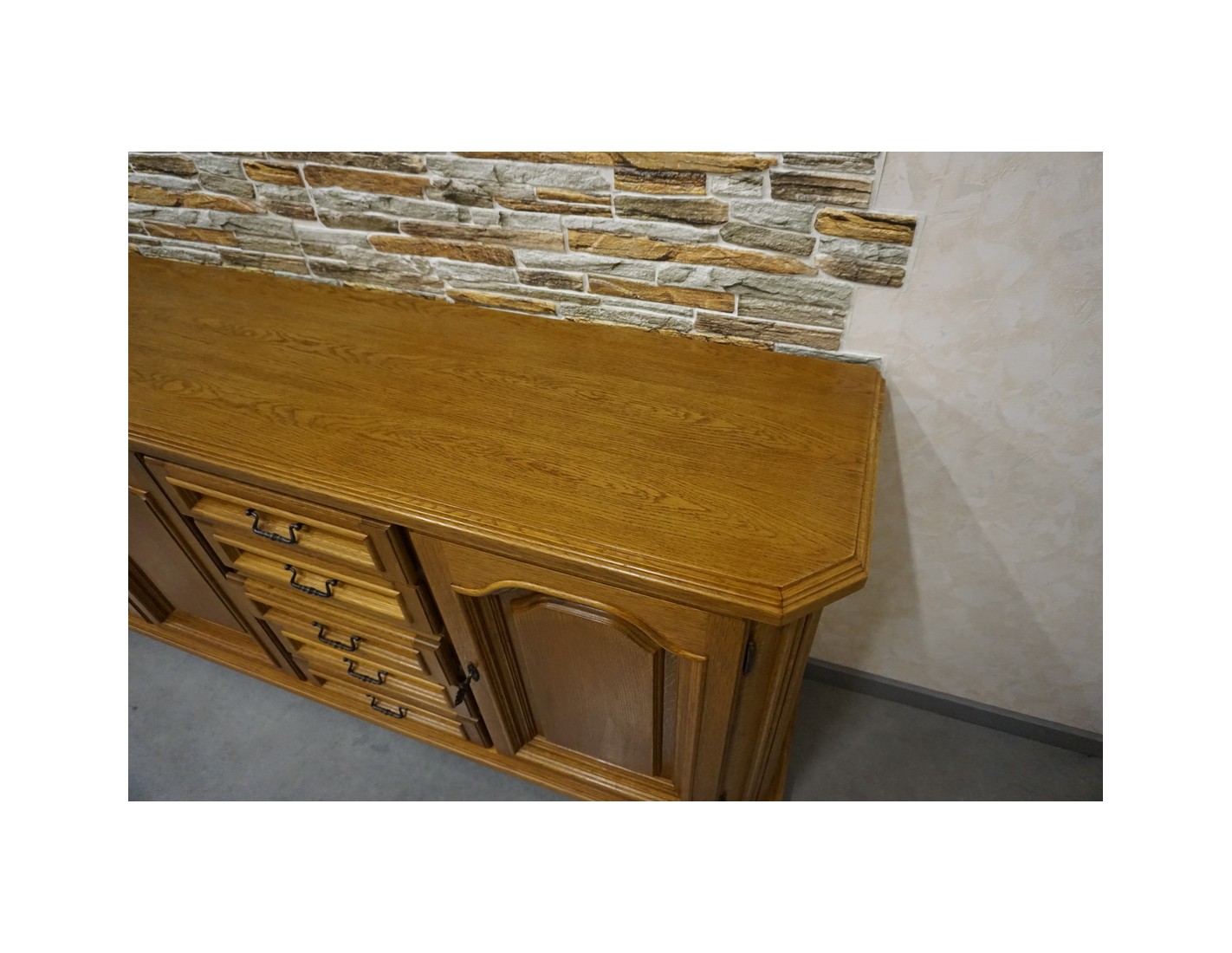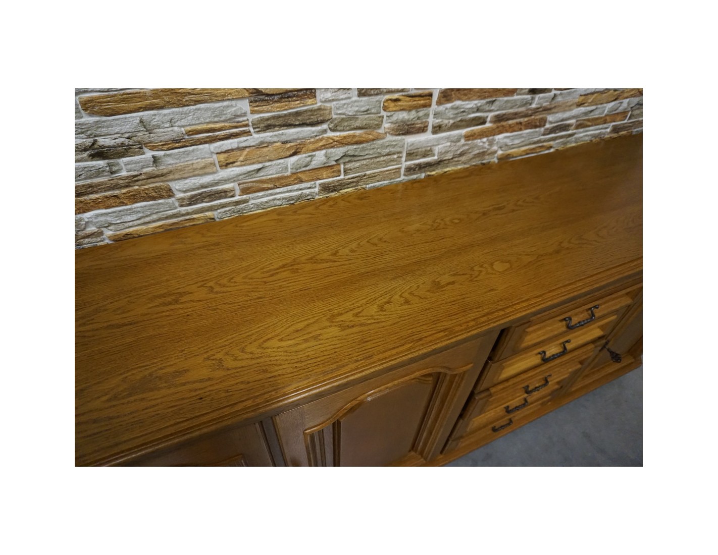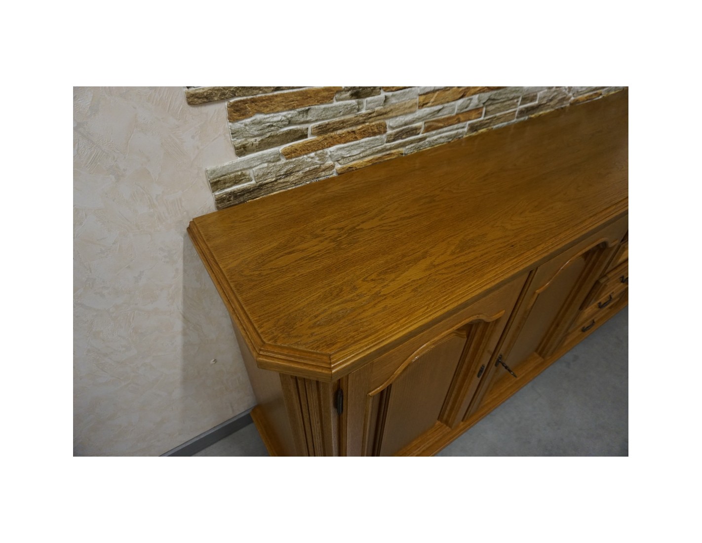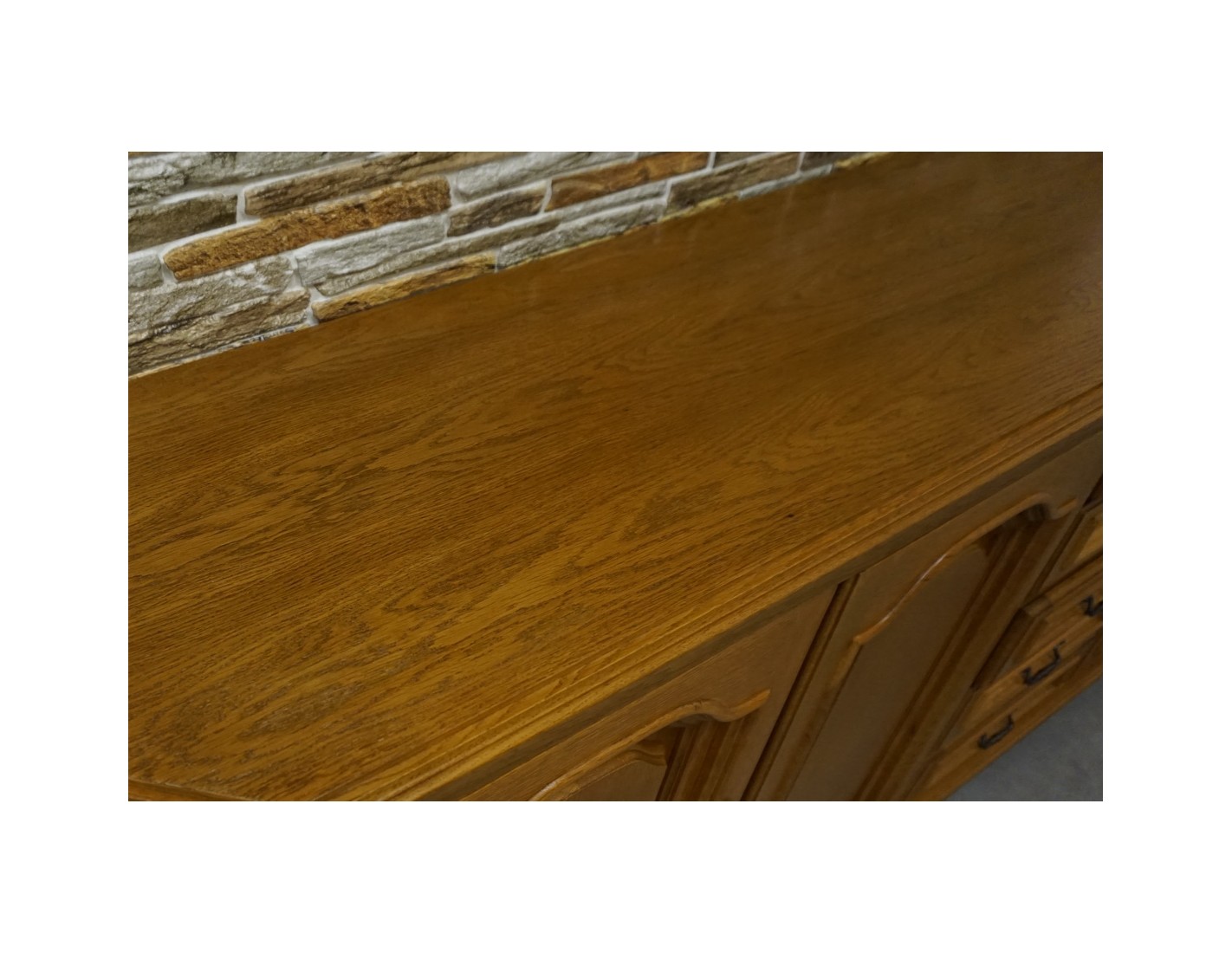 Stylowa i funkcjonalna komoda dębowa, która doskonale sprawdzi się w salonie, sypialni lub jadalni. Przemyślany układ szafek i szuflad zapewnia wygodne przechowywanie.
