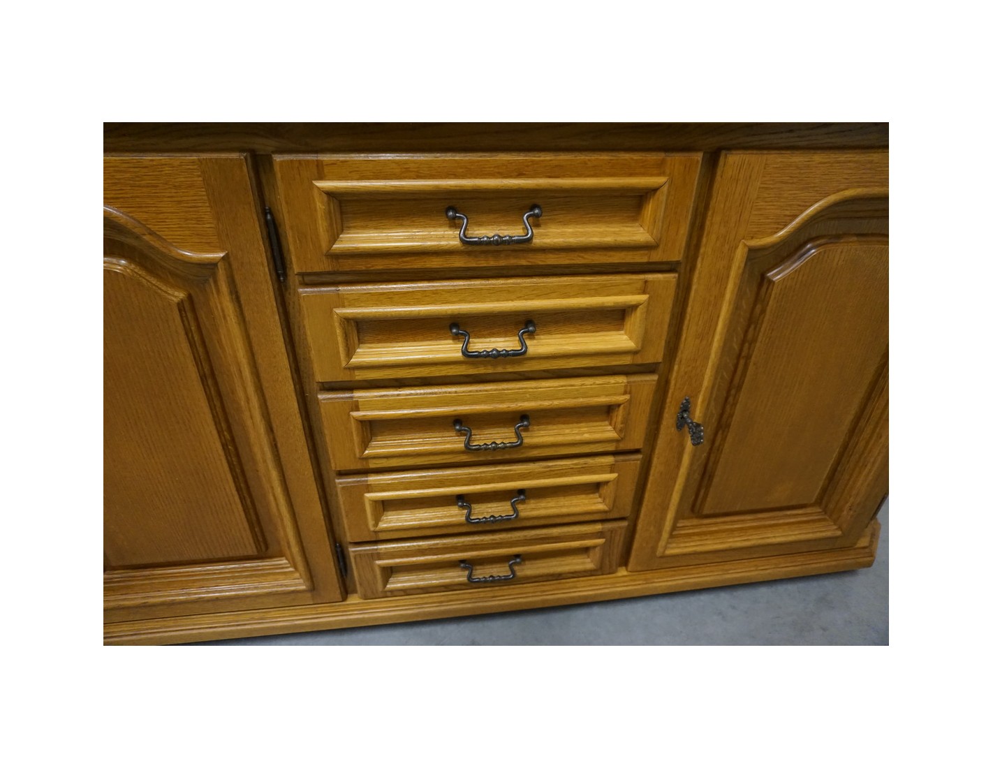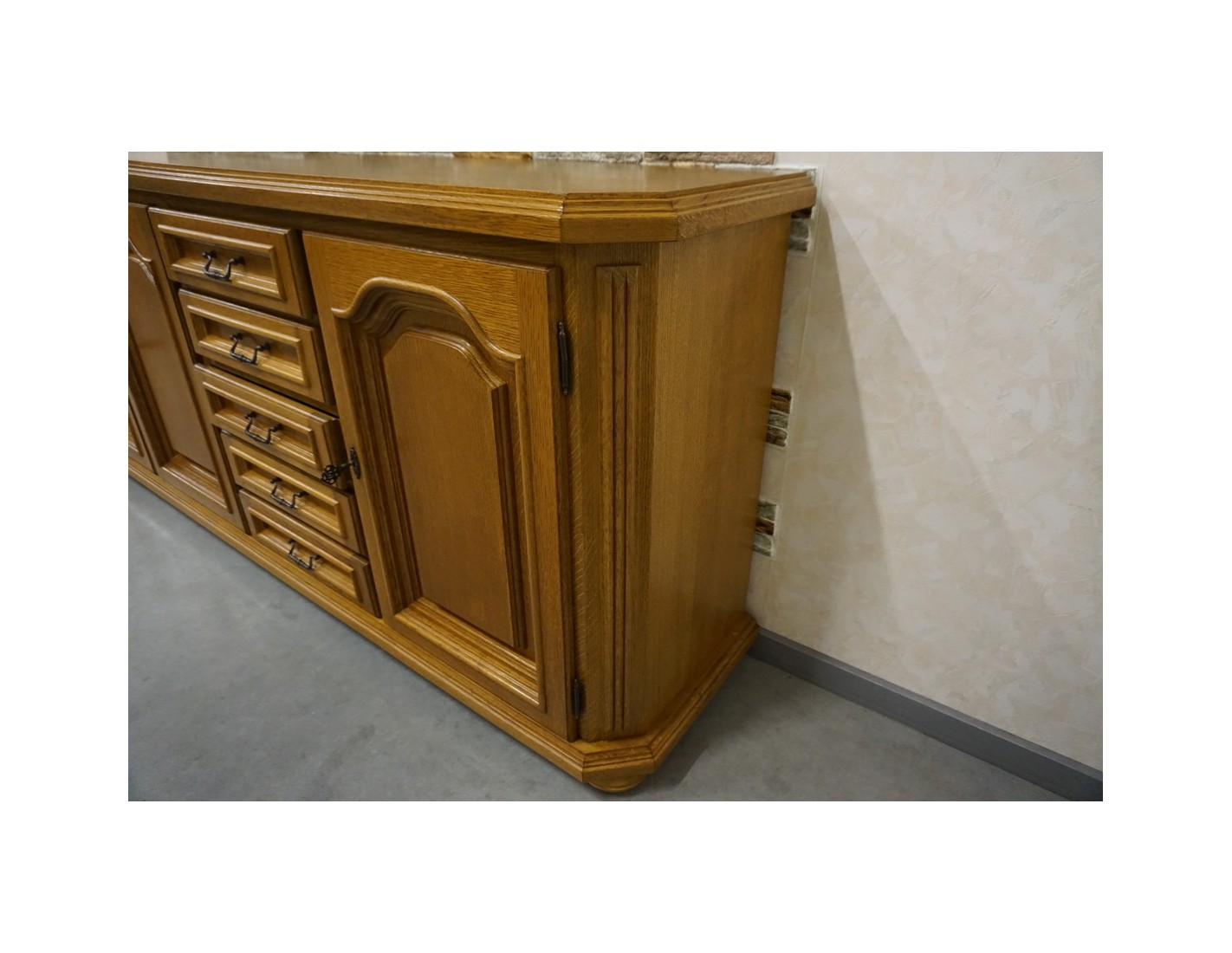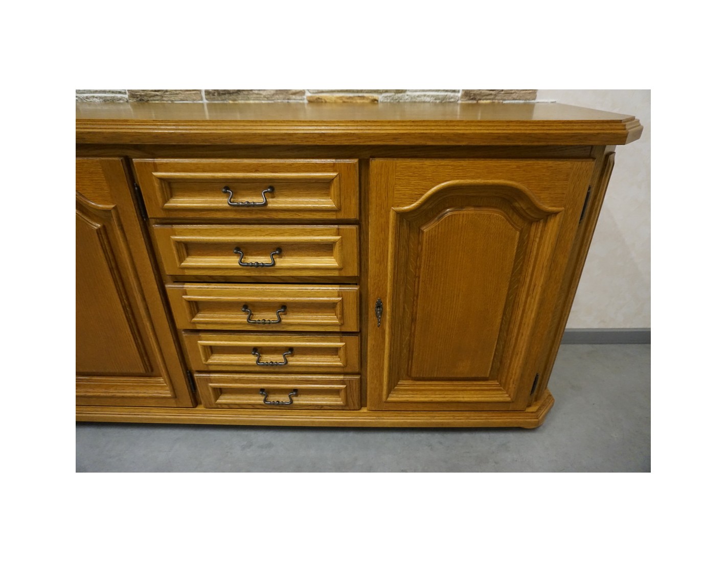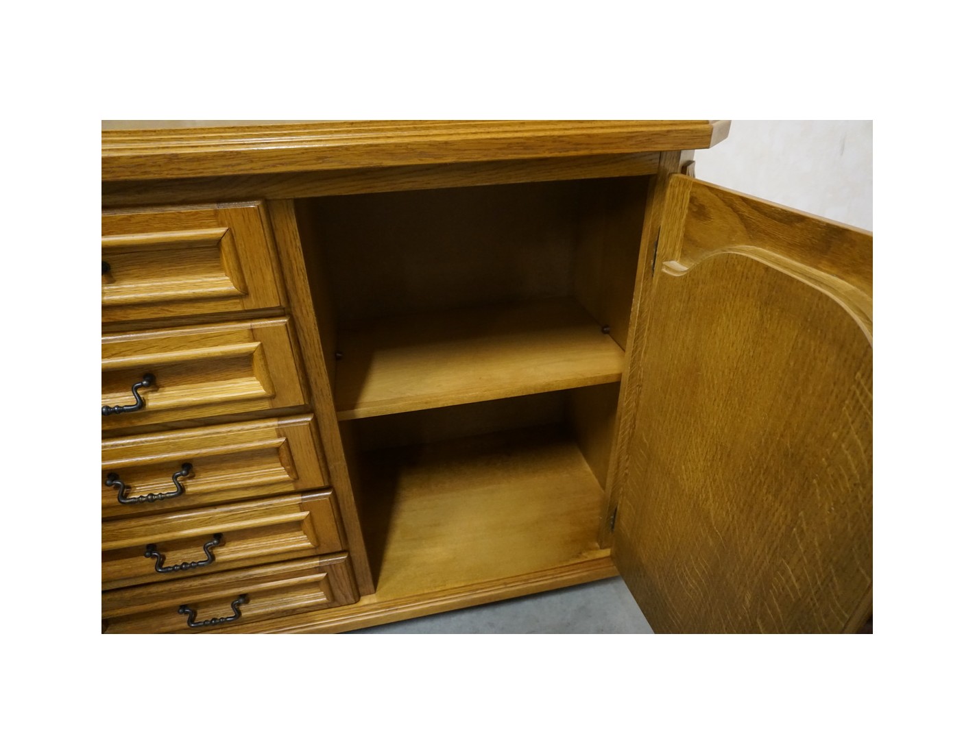 Stylowa i funkcjonalna komoda dębowa, która doskonale sprawdzi się w salonie, sypialni lub jadalni. Przemyślany układ szafek i szuflad zapewnia wygodne przechowywanie.