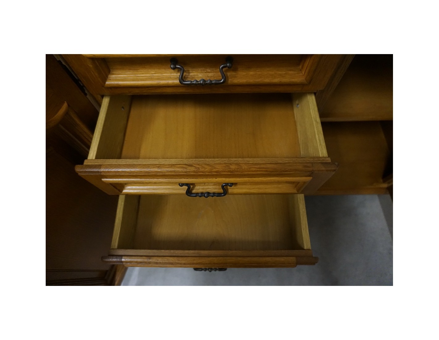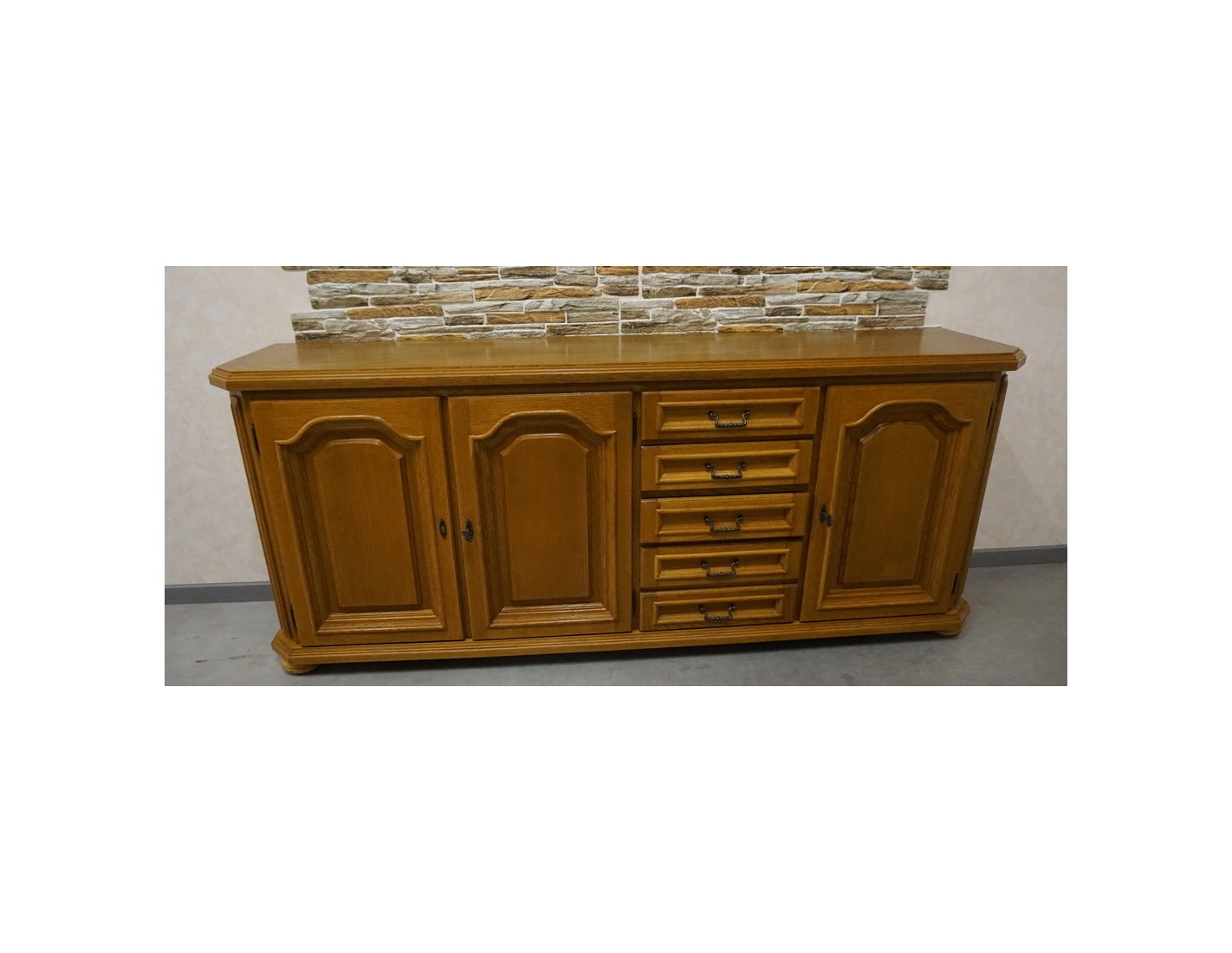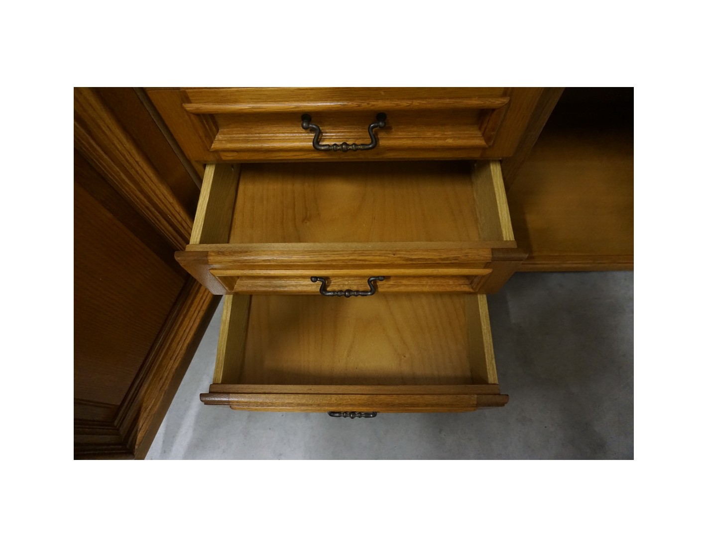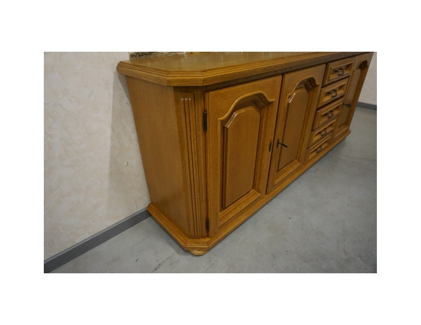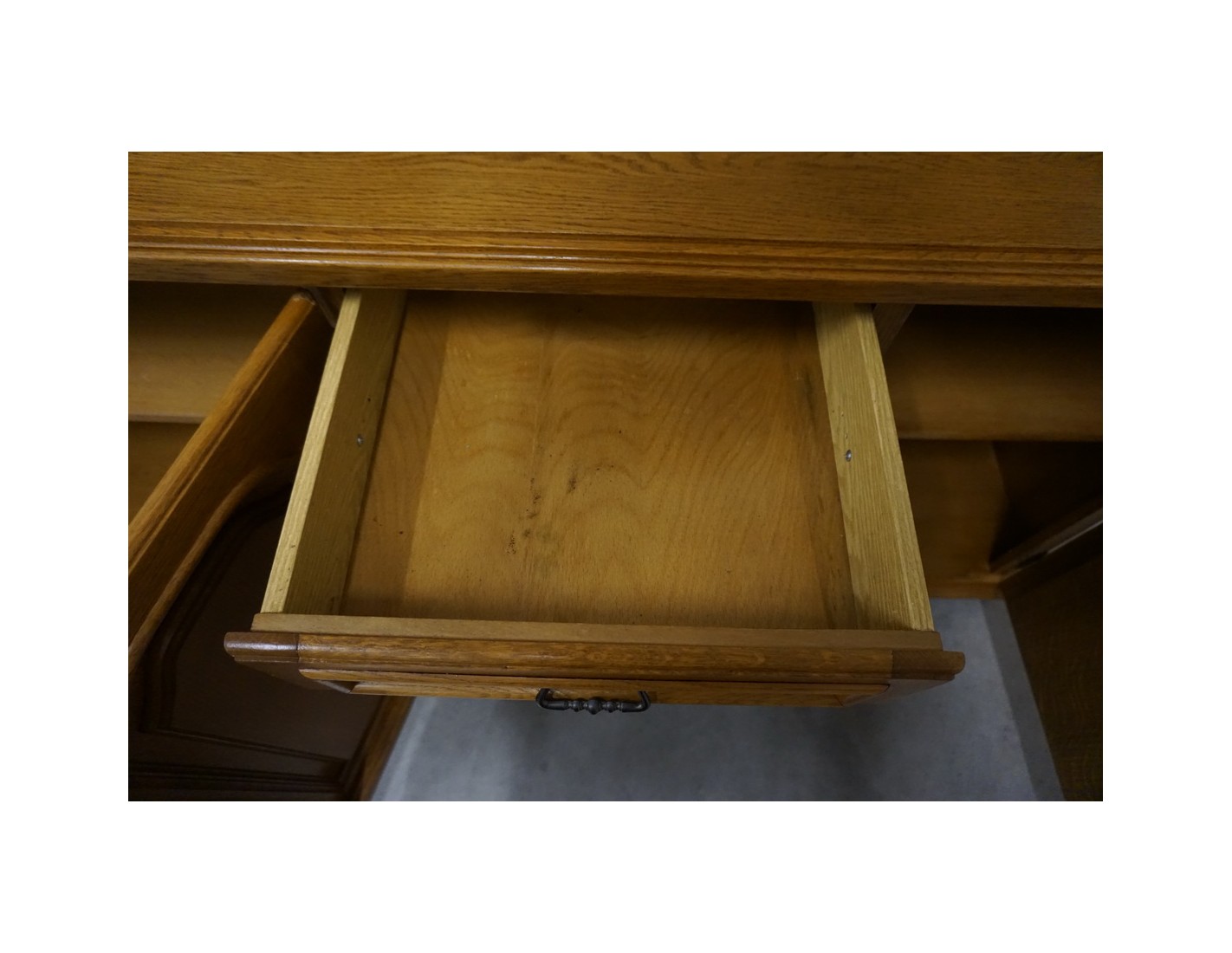Stylowa i funkcjonalna komoda dębowa, która doskonale sprawdzi się w salonie, sypialni lub jadalni. Przemyślany układ szafek i szuflad zapewnia wygodne przechowywanie.