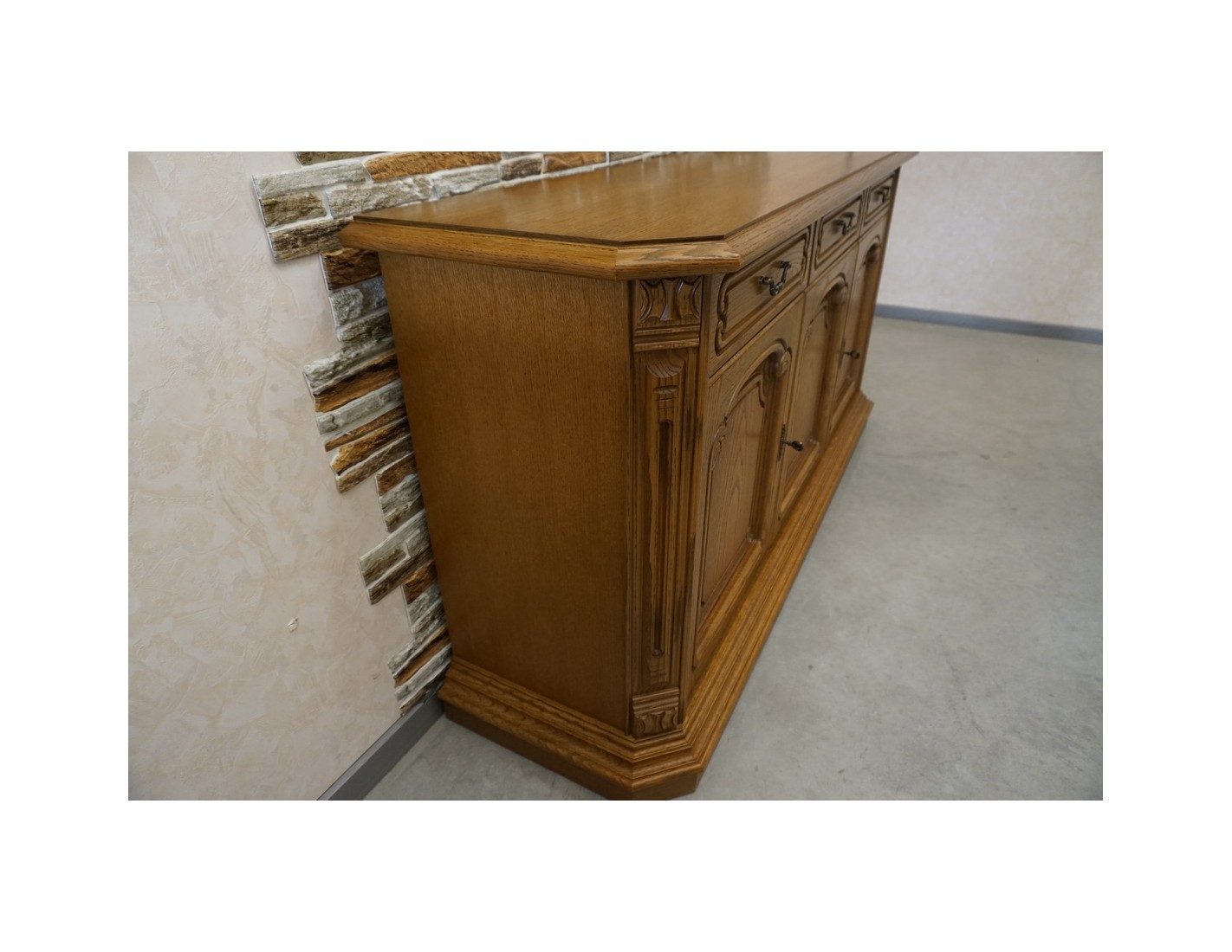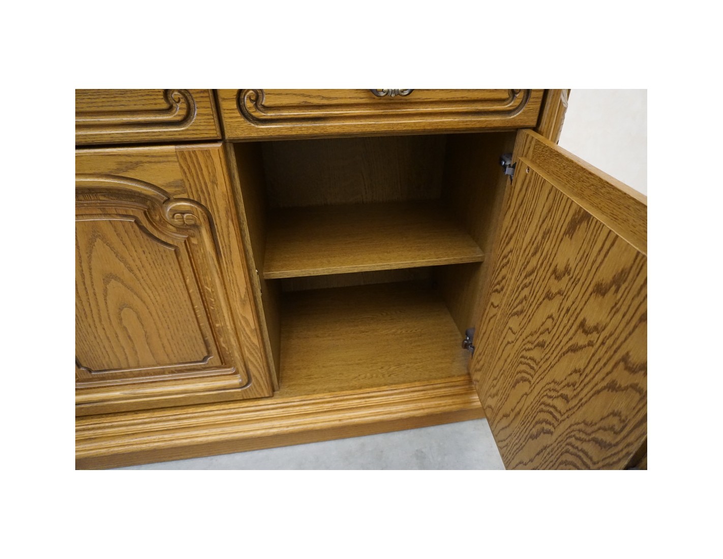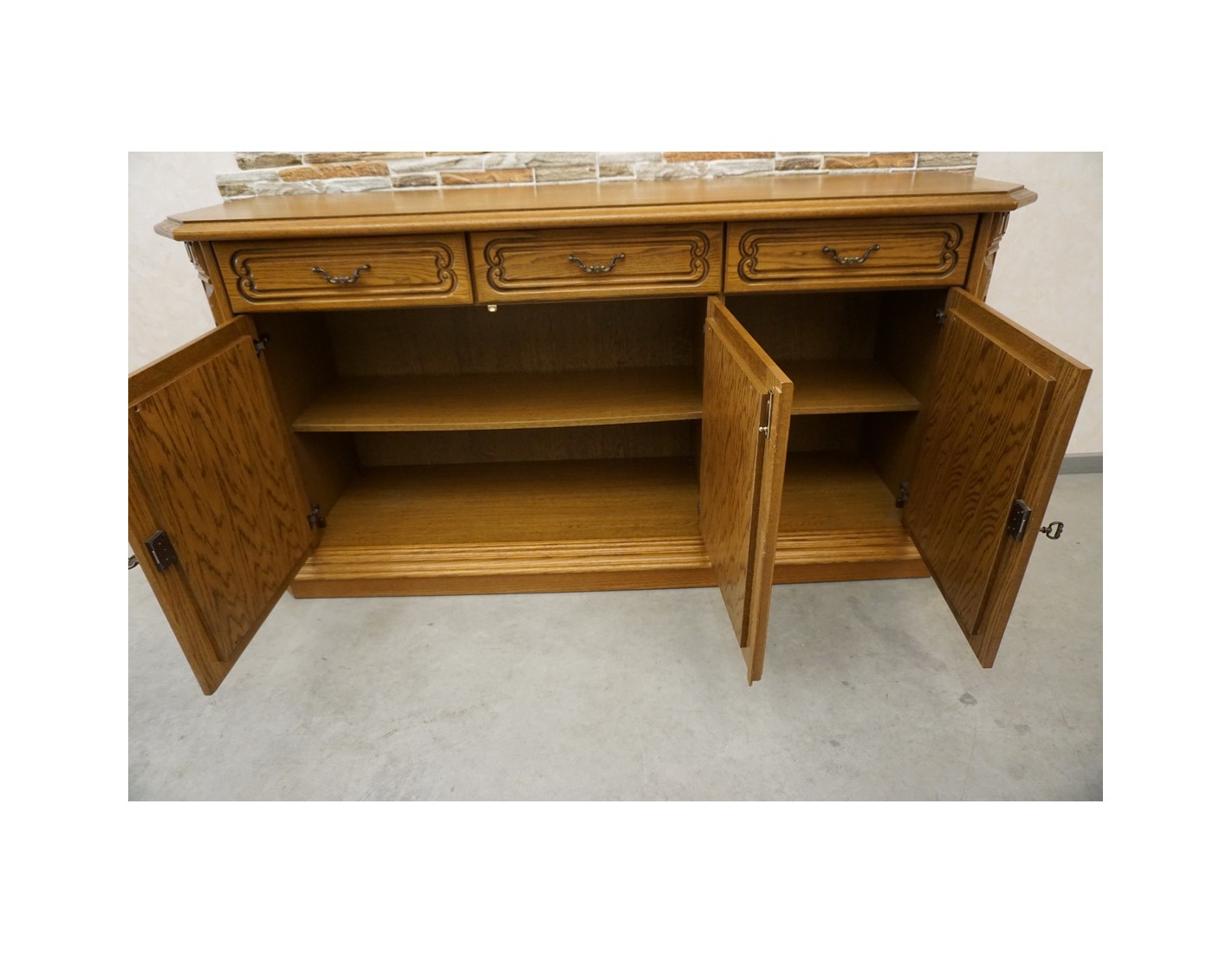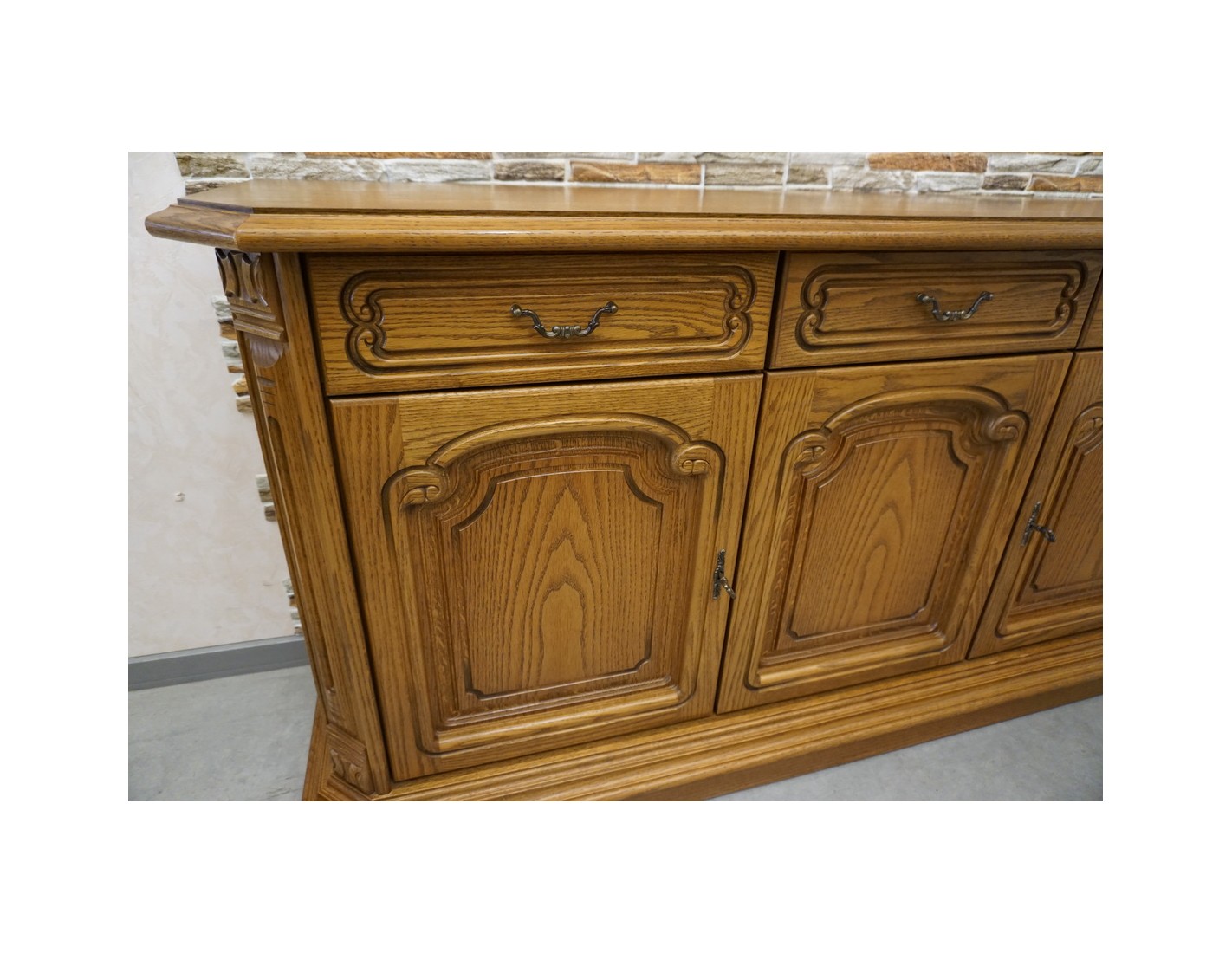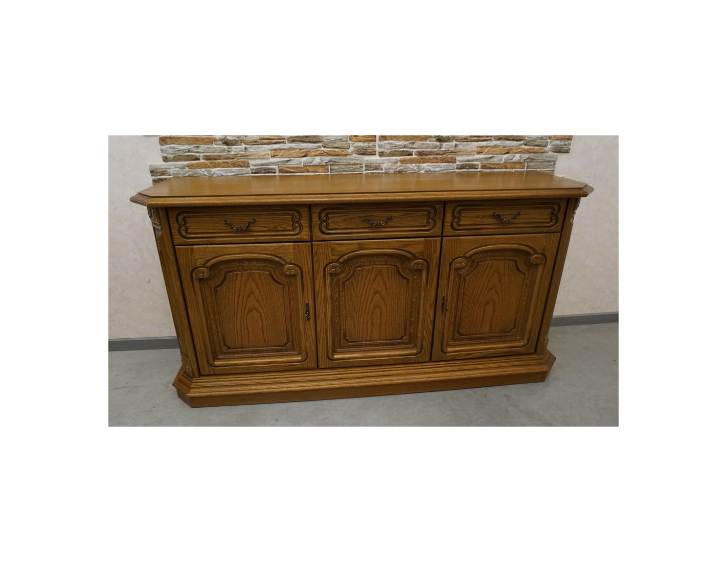 Stylowa i funkcjonalna komoda dębowa o klasycznej formie, wyposażona w 3 drzwi oraz 3 praktyczne szuflady. To doskonałe rozwiązanie do salonu, sypialni czy jadalni, które łączy elegancki wygląd z dużą pojemnością przechowywania.