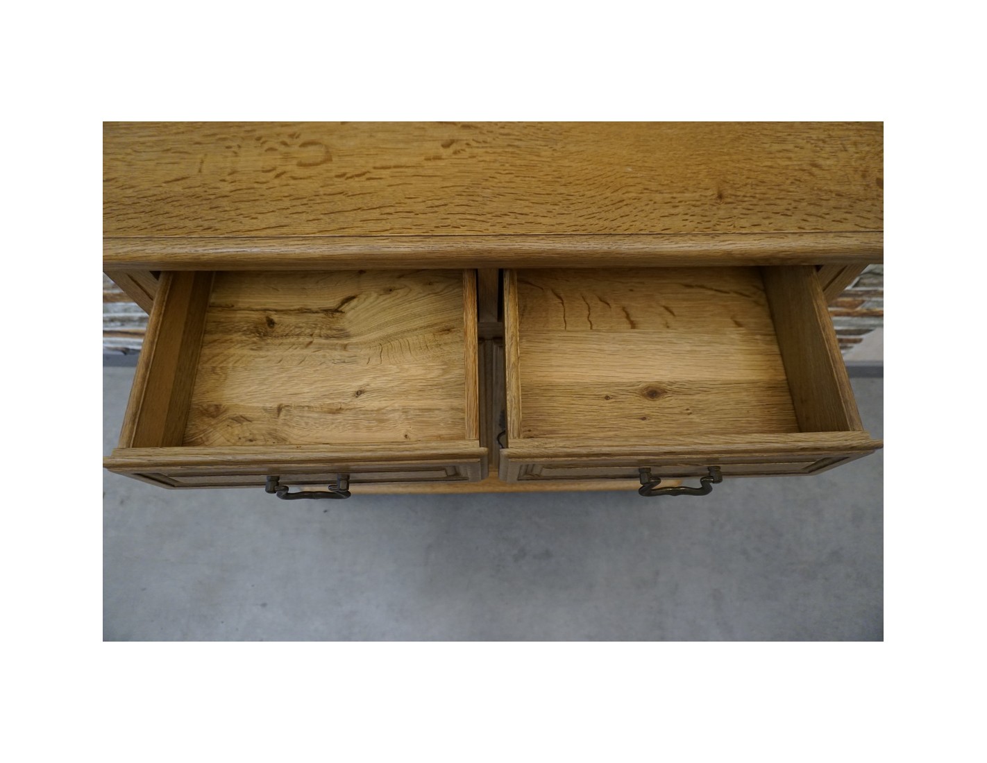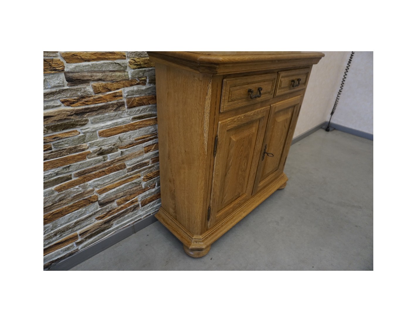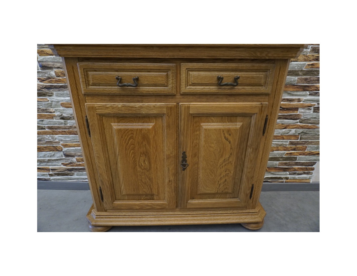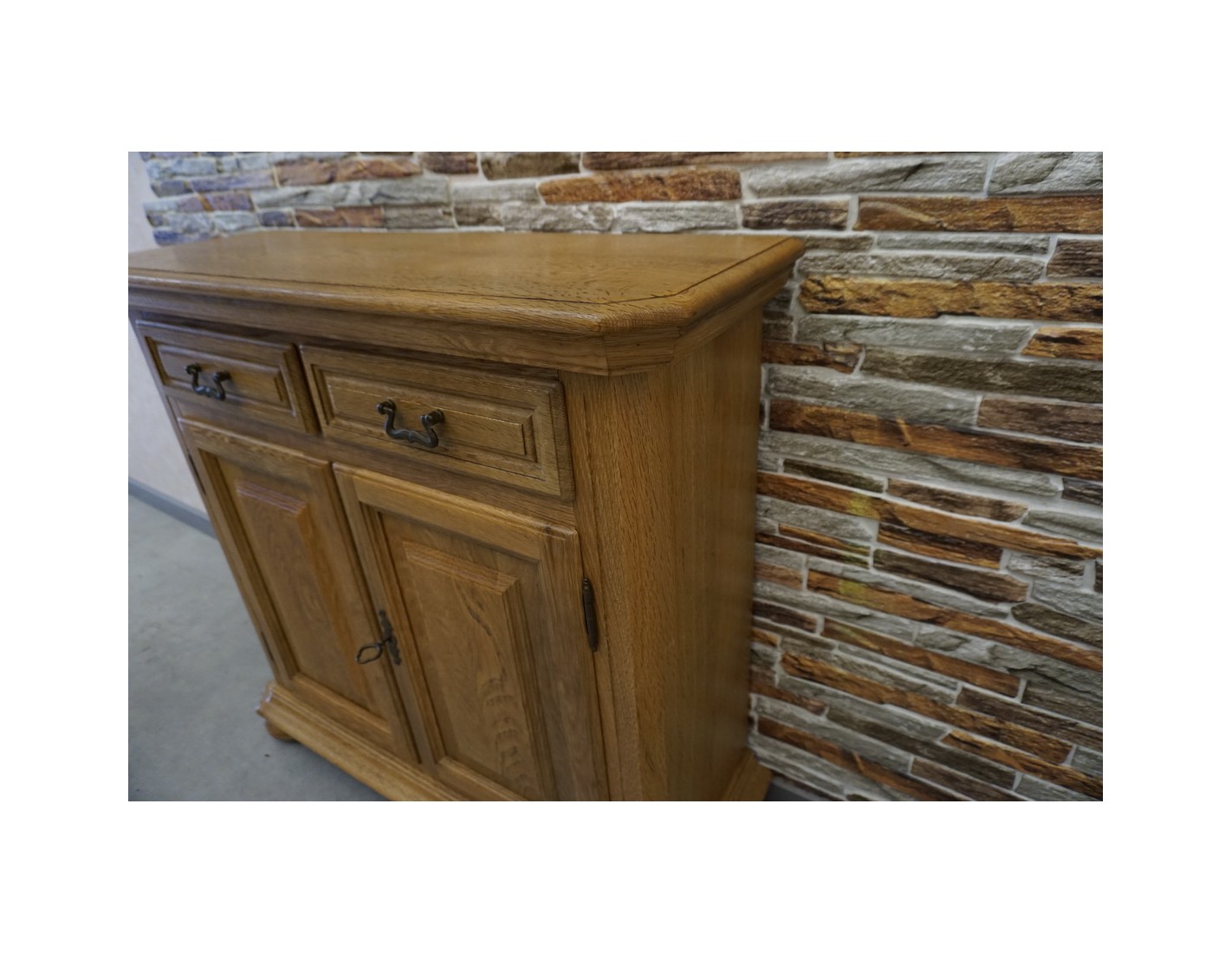 Kompaktowa komódka wykonana z litego dębu, idealna do przechowywania drobiazgów oraz mniejszych akcesoriów. Posiada dwie praktyczne szuflady i dwudrzwiową szafkę, które zapewniają wygodę użytkowania oraz estetyczny wygląd.