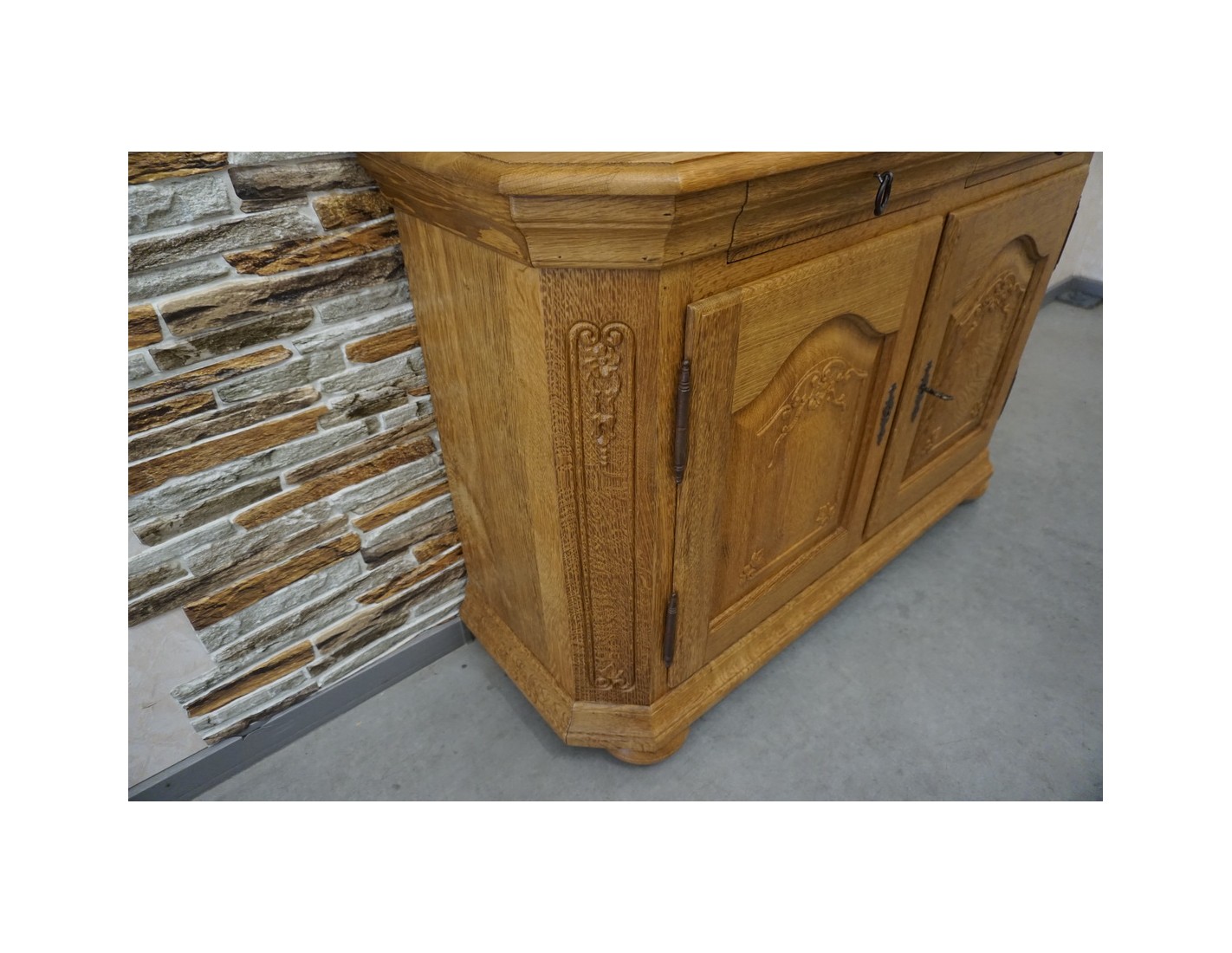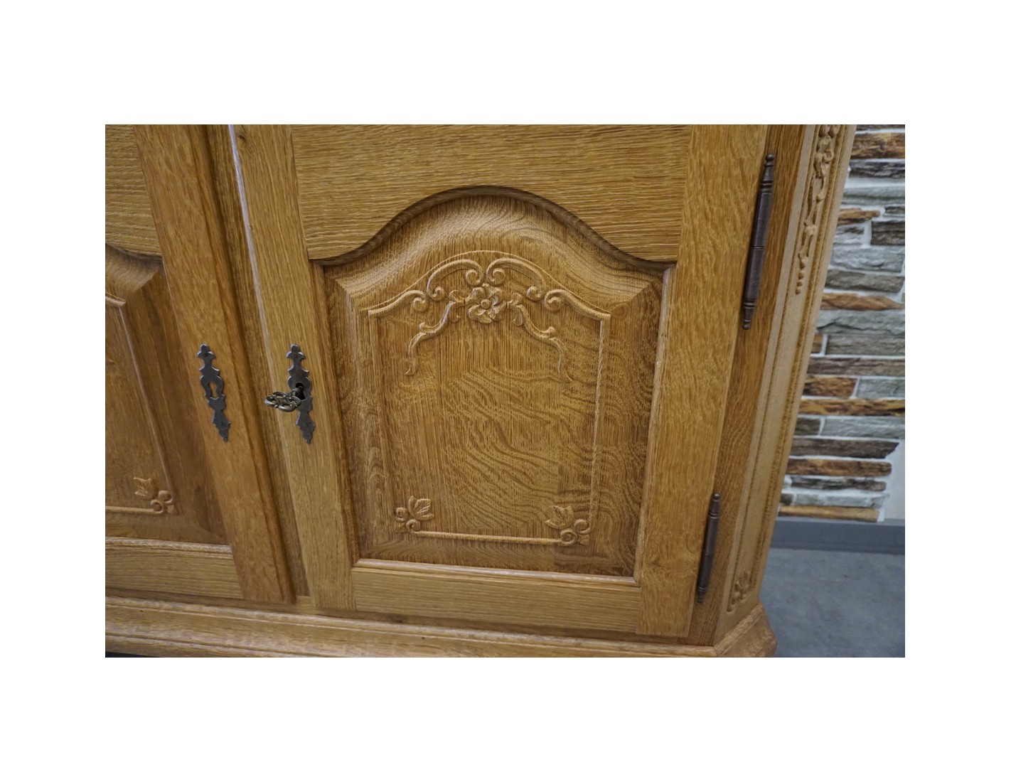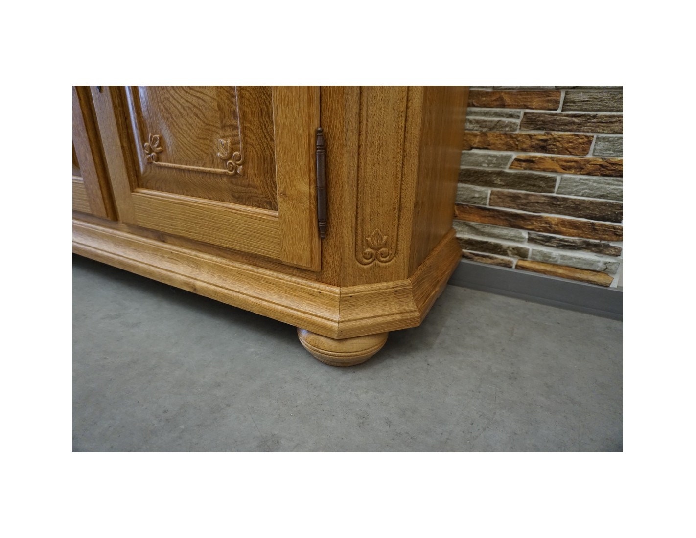 Klasyczna forma oraz naturalne drewno dębowe sprawiają, że mebel doskonale wkomponuje się w aranżacje salonu, jadalni czy sypialni, oferując trwałość na lata.