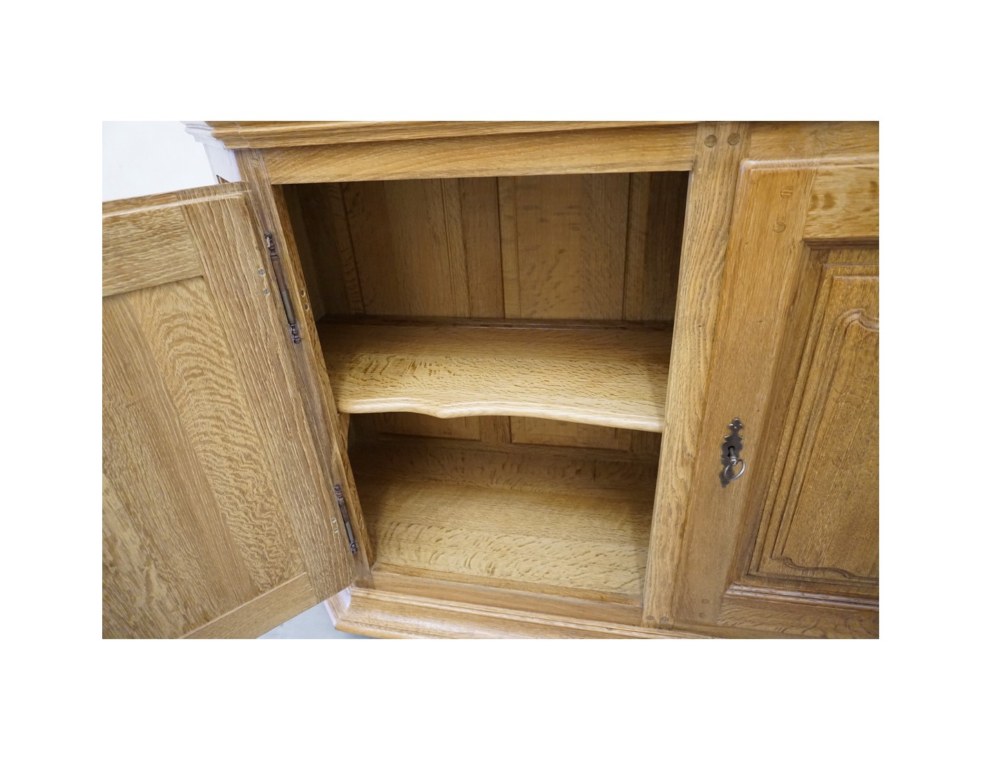 Trzydrzwiowa konstrukcja zapewnia dużo miejsca do przechowywania – idealna do salonu, jadalni lub sypialni. Lite drewno dębowe gwarantuje trwałość, stabilność i elegancki wygląd na lata.