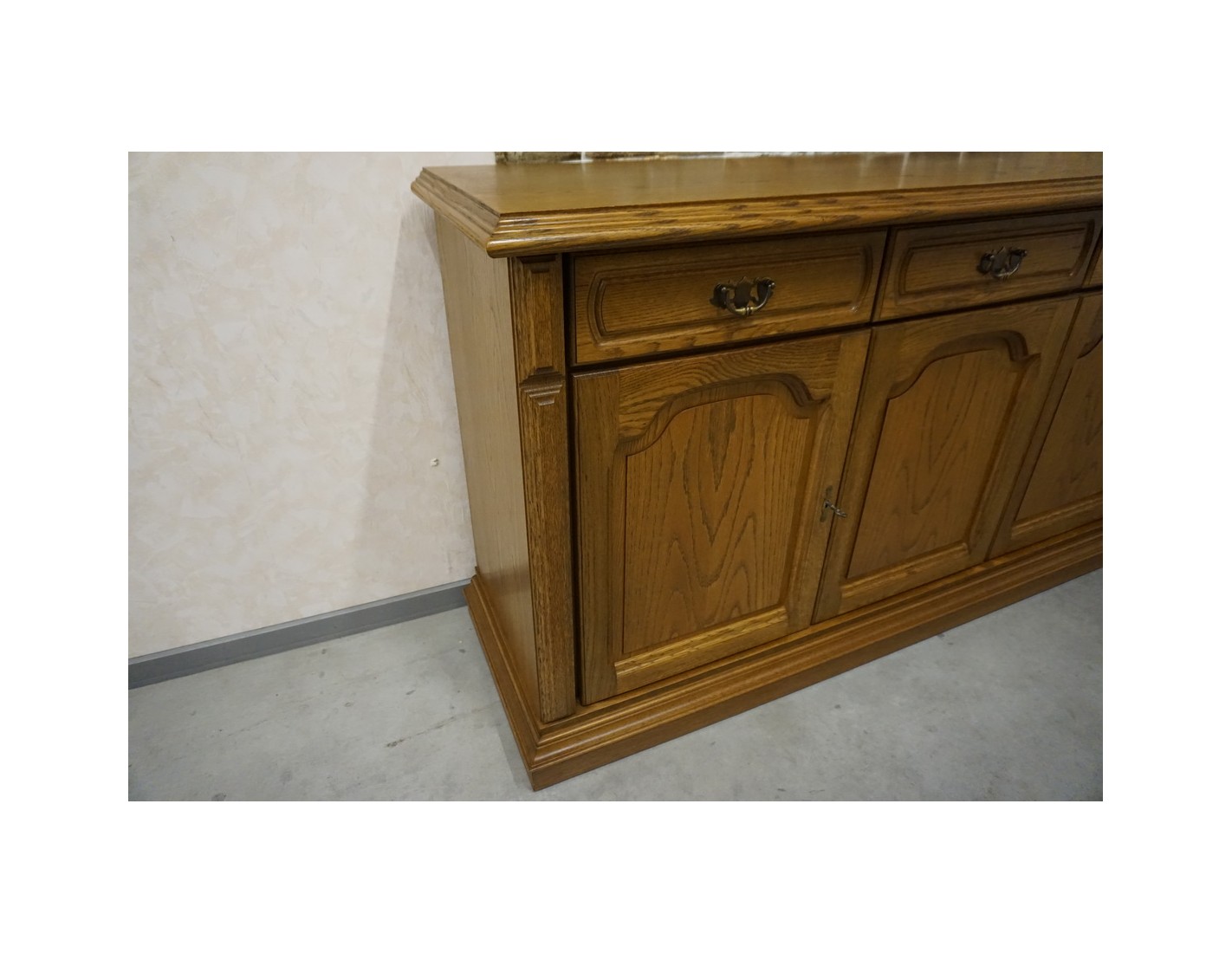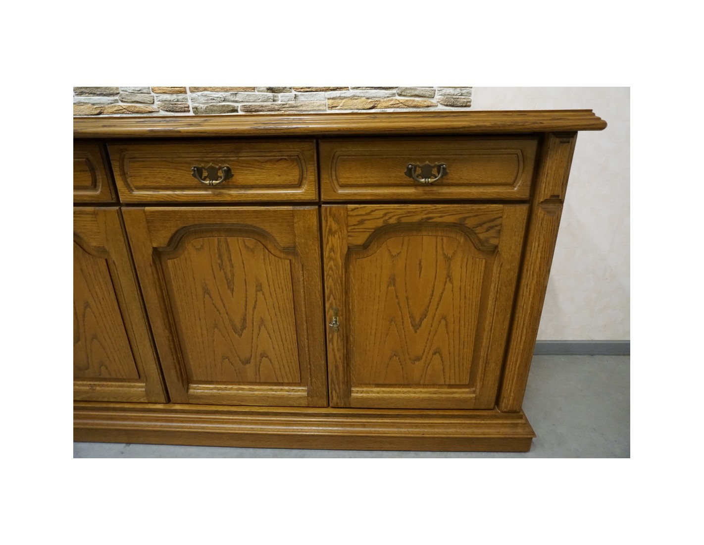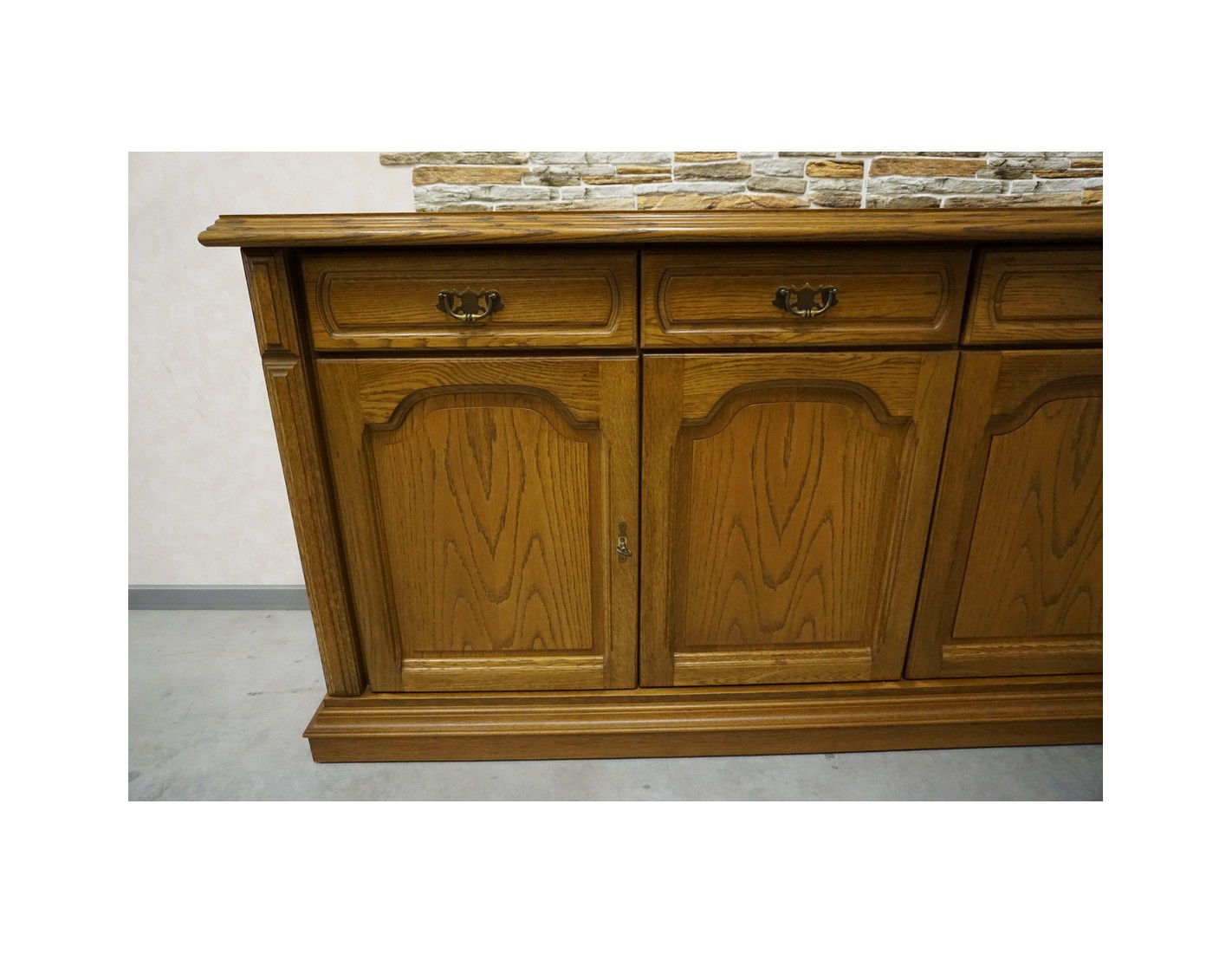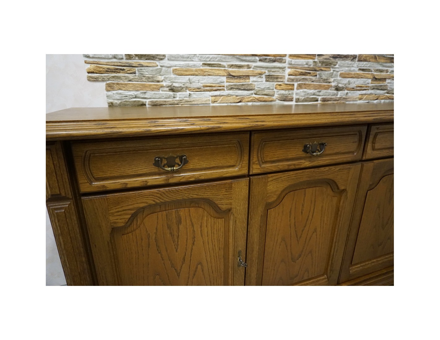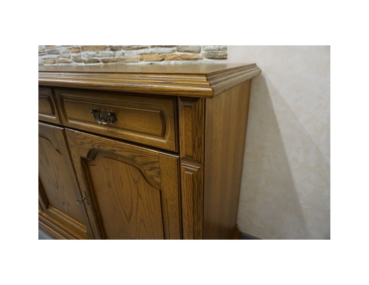 Przestronna komoda dębowa o eleganckim i ponadczasowym wyglądzie. Wykonana z wysokiej jakości dębu, charakteryzuje się solidną konstrukcją i starannym wykończeniem. Doskonale sprawdzi się w salonie, jadalni lub sypialni, oferując dużą ilość miejsca do przechowywania.