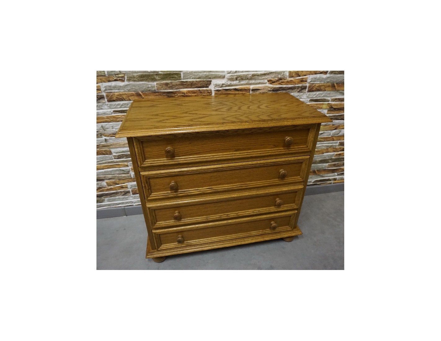 Praktyczna i kompaktowa komódka, idealna do sypialni lub garderoby. Dzięki czterem pojemnym szufladom świetnie sprawdzi się jako miejsce do przechowywania bielizny, drobnych akcesoriów lub innych osobistych przedmiotów. Jej niewielkie wymiary pozwalają ustawić ją nawet w mniejszych pomieszczeniach.