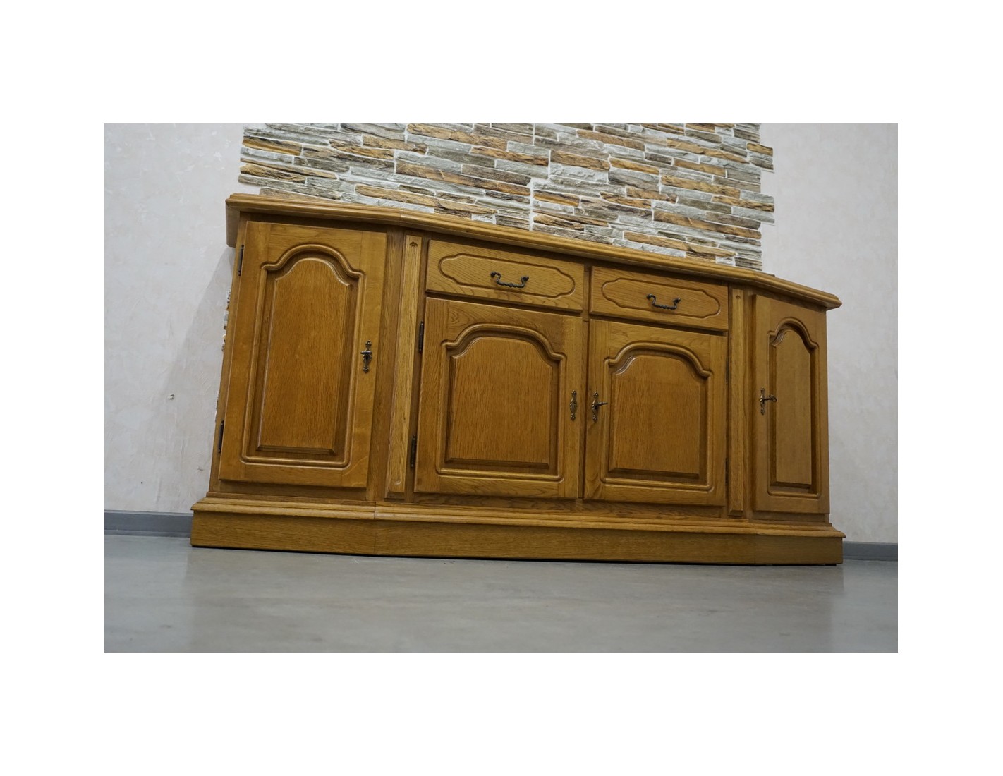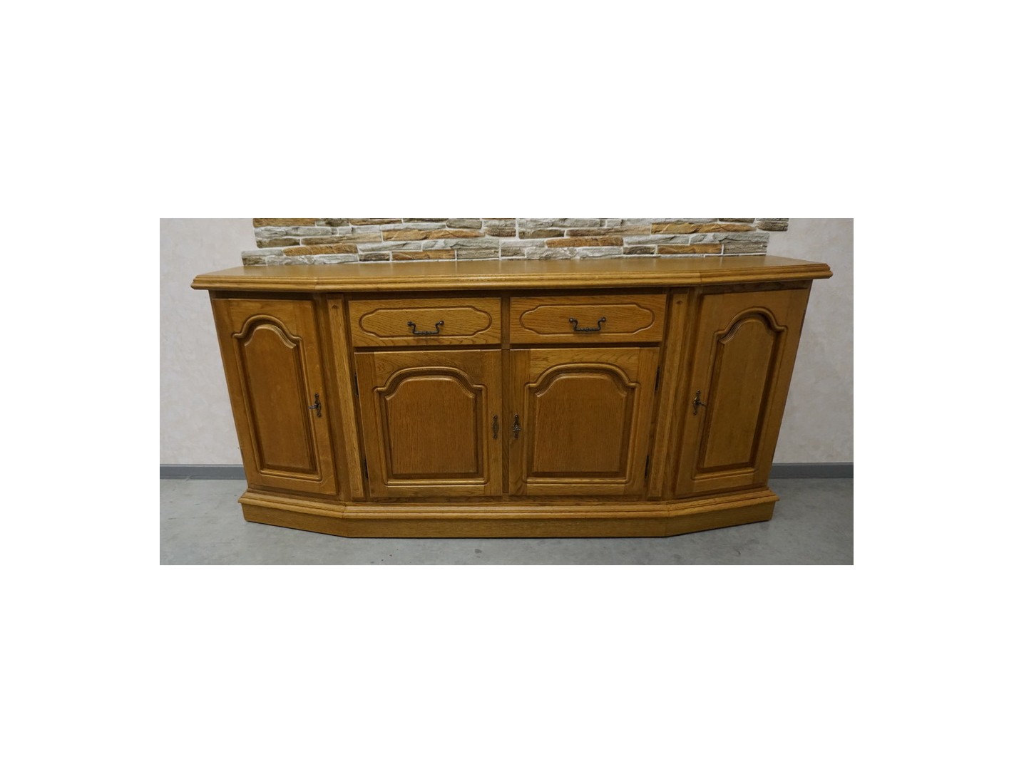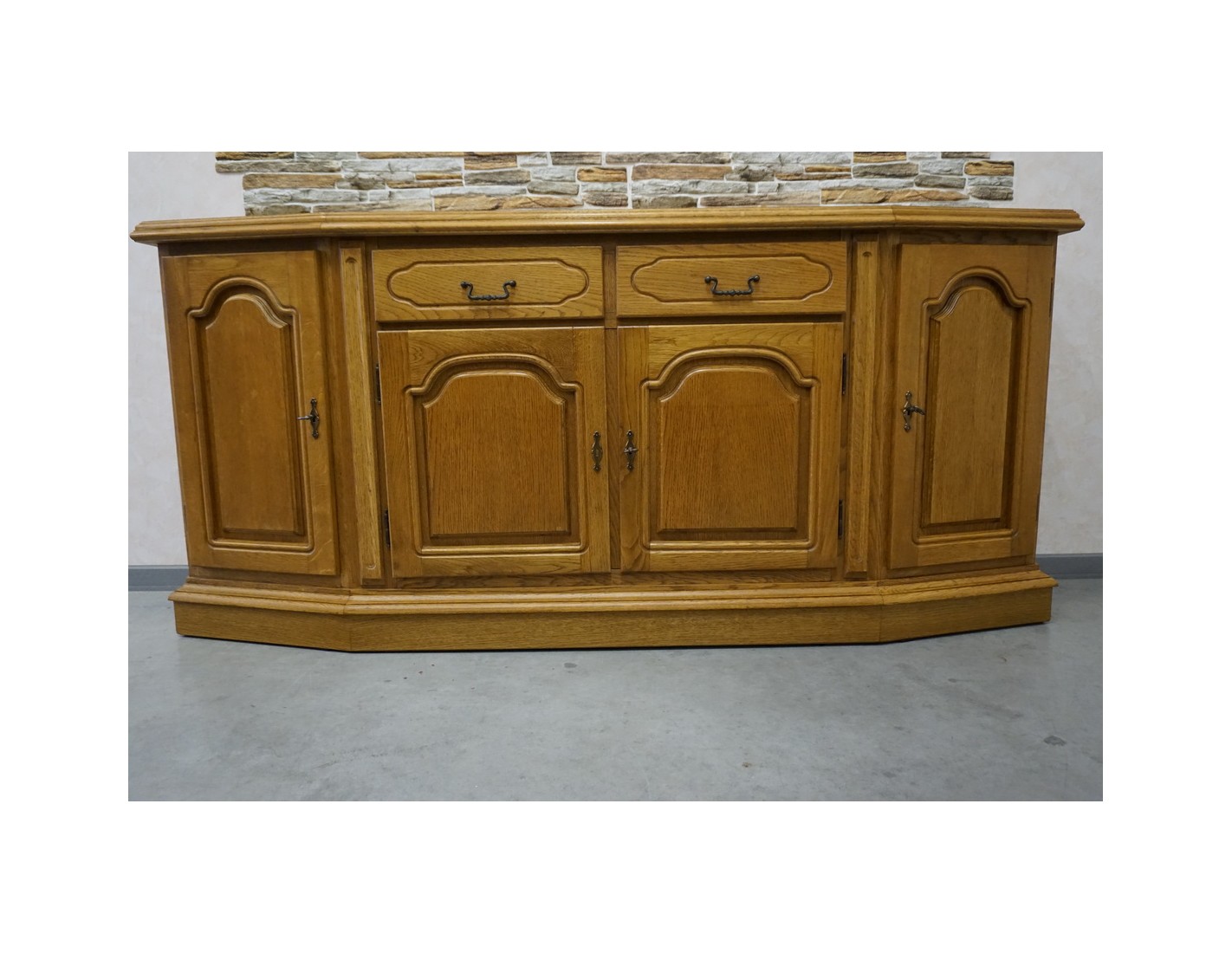 Solidna i funkcjonalna komoda wykonana z dębu. Klasyczna forma w połączeniu z praktycznym układem czterech drzwiczek oraz dwóch szuflad zapewnia dużą przestrzeń do przechowywania. Idealnie sprawdzi się w salonie, jadalni, sypialni lub przedpokoju.