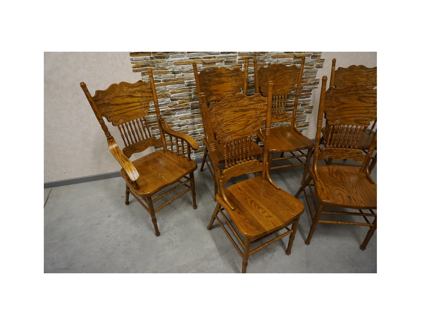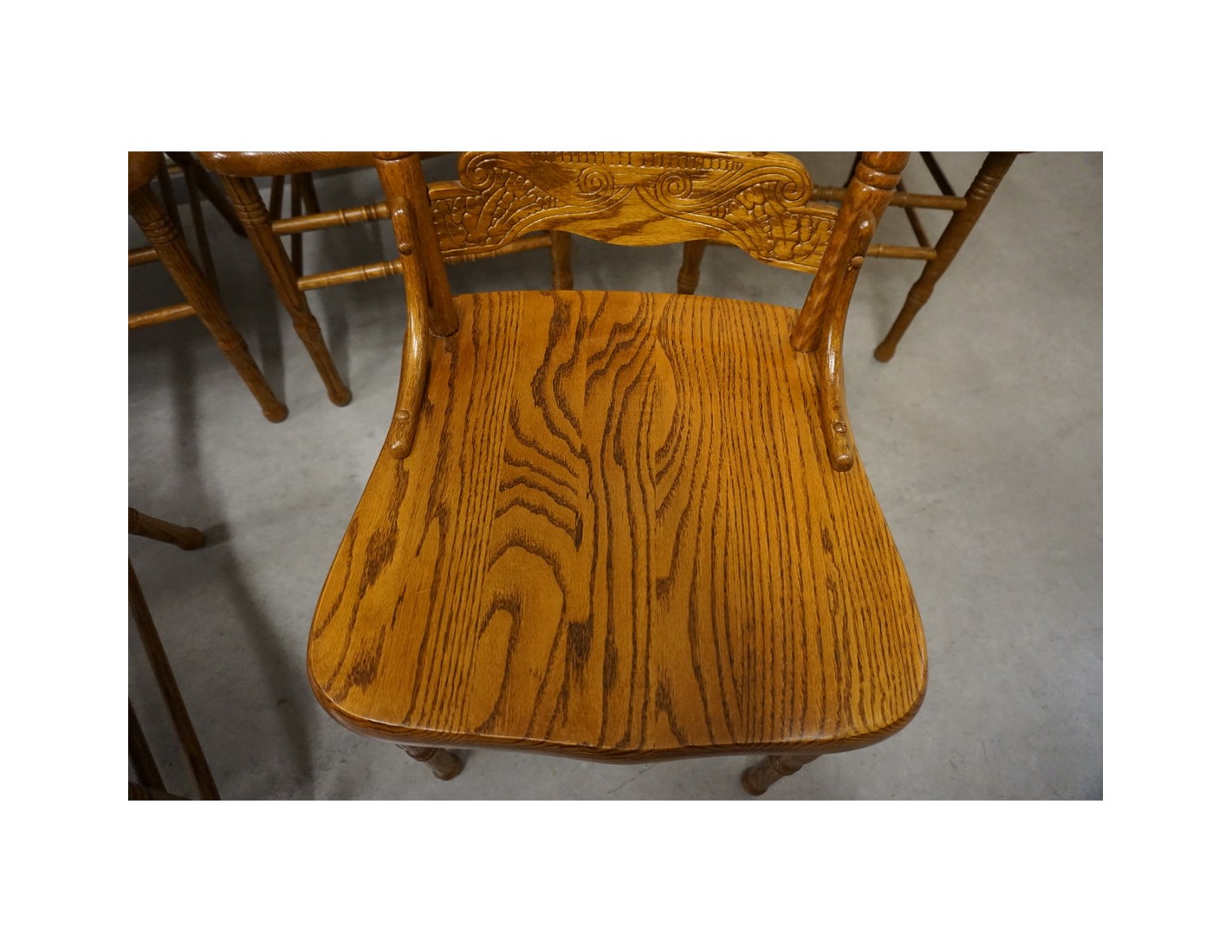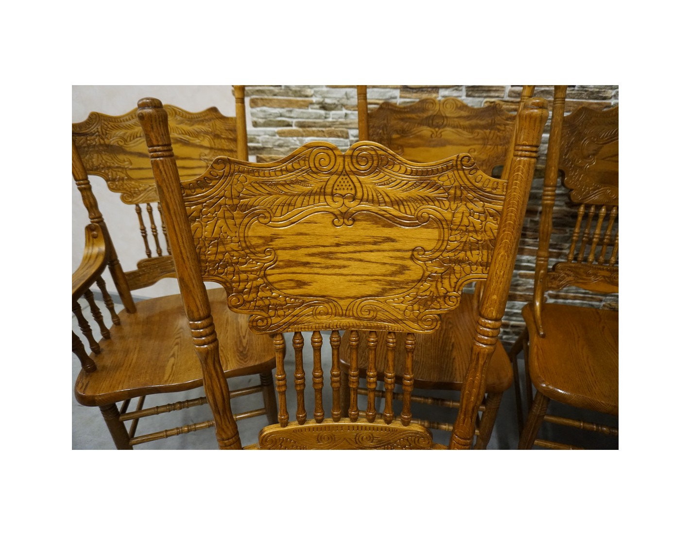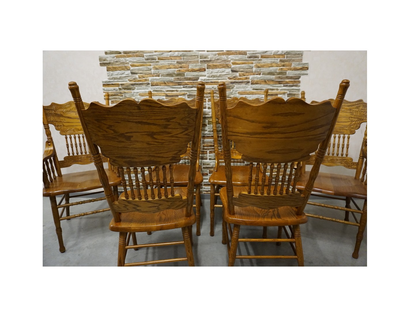 Elegancki zestaw krzeseł dębowych w stylu amerykańskim, który doskonale uzupełni wystrój jadalni, salonu lub gabinetu. W skład kompletu wchodzi 6 krzeseł: 2 krzesła z podłokietnikami i 4 krzesła bez podłokietników.