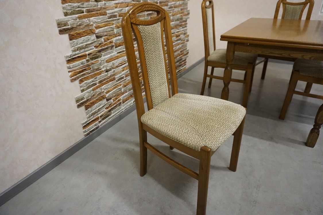 KRZESŁA : szer. 46 cm, gł. 45 cm, wys. oparcia 98 cm, wys. siedziska 47 cm