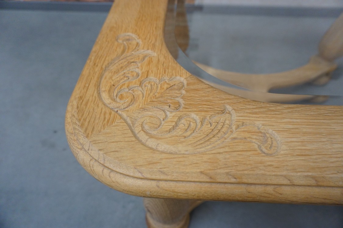 W ŚRODKU BLATU JEST TAFLA SZKŁA KTÓRA NA KRAWĘDZIACH JEST SZLIFOWANA