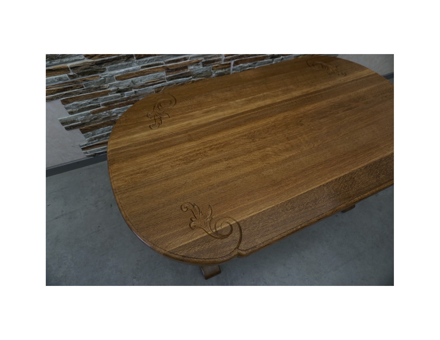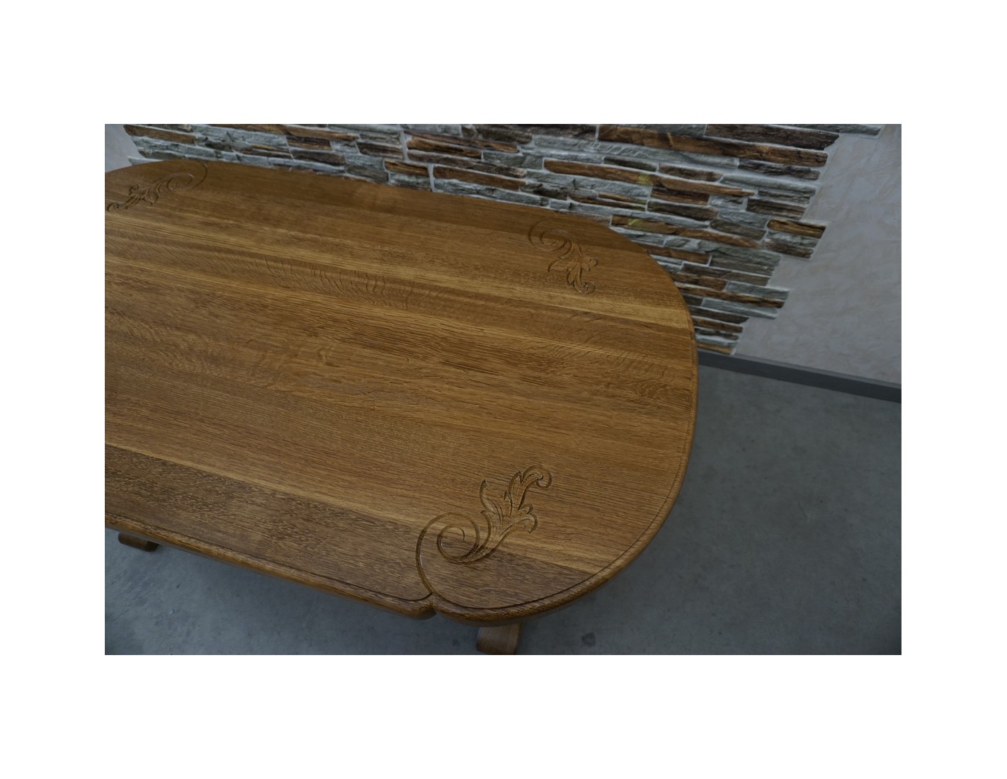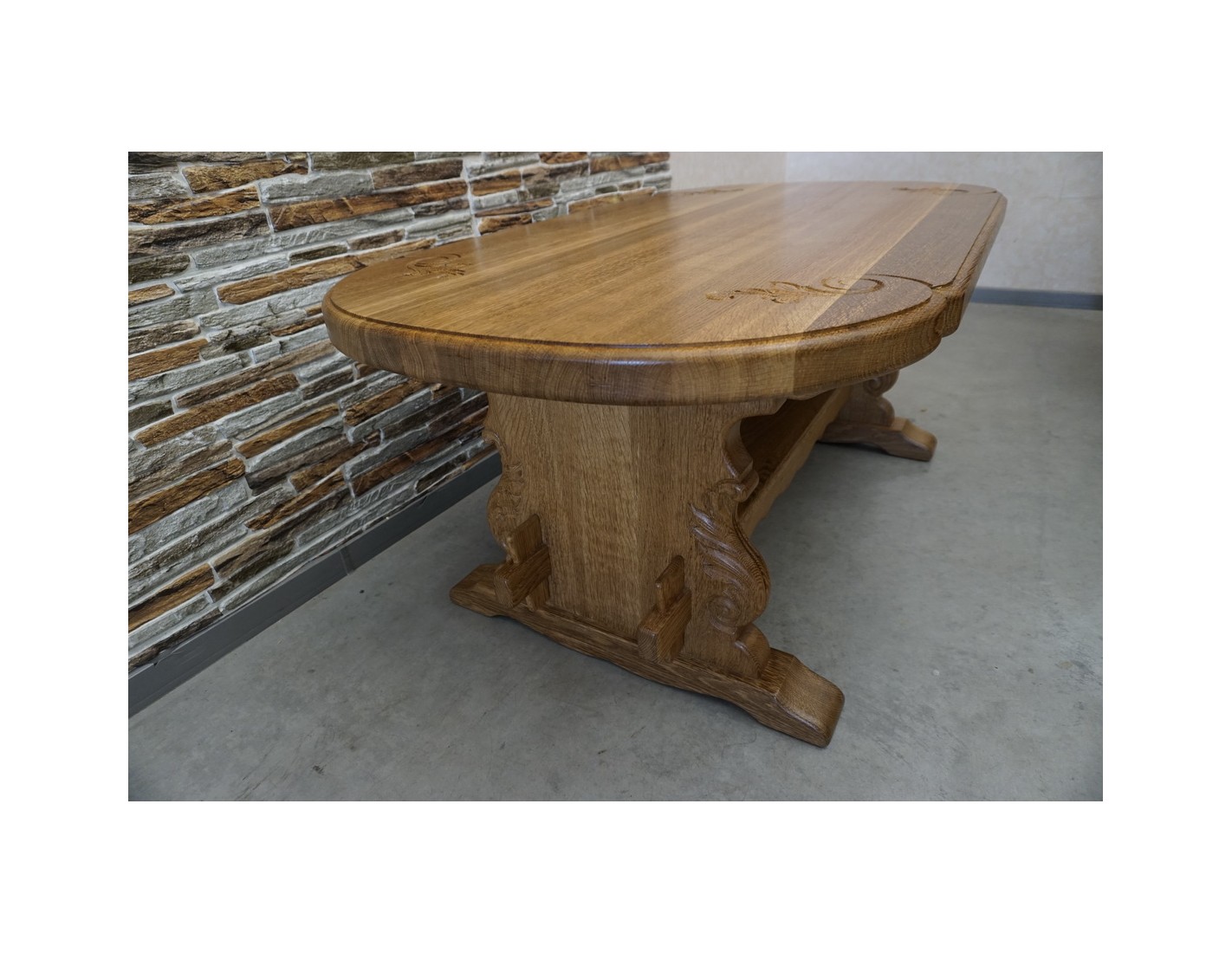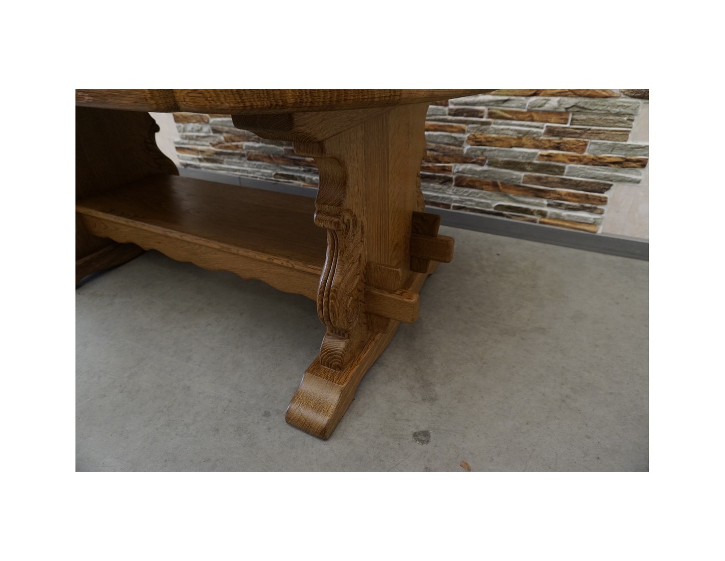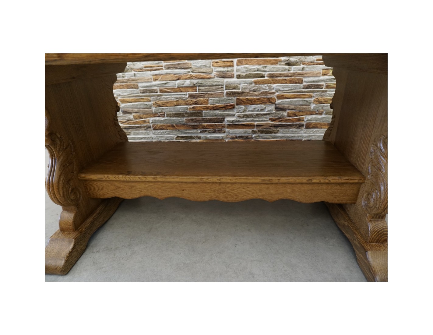 Ława wykonana z litego dębu, łącząca solidne wykonanie z klasycznym designem. Idealnie sprawdzi się w salonie jako praktyczny i estetyczny element wyposażenia. Stabilna konstrukcja gwarantuje trwałość i komfort użytkowania.