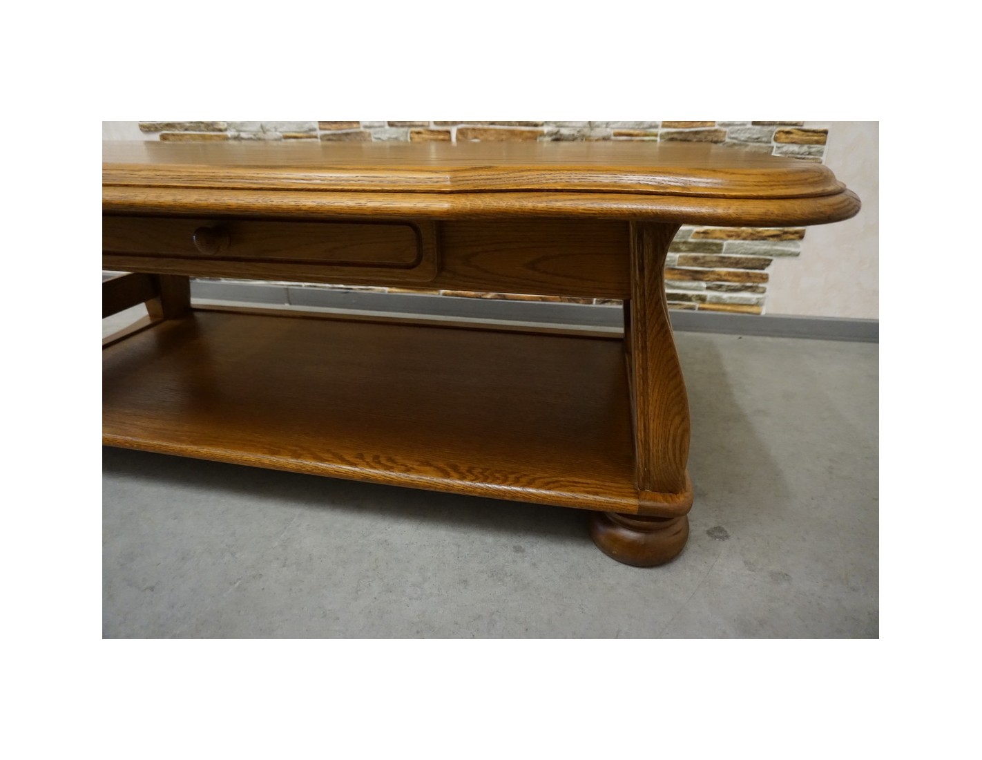 Elegancka ława dębowa z praktyczną szufladą to połączenie klasycznego stylu i funkcjonalności. Jej solidna konstrukcja oraz naturalne usłojenie drewna sprawiają, że mebel prezentuje się wyjątkowo szlachetnie i doskonale uzupełnia wystrój salonu.