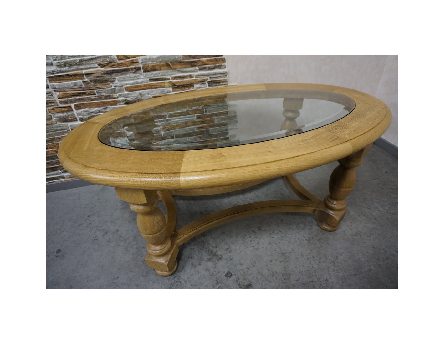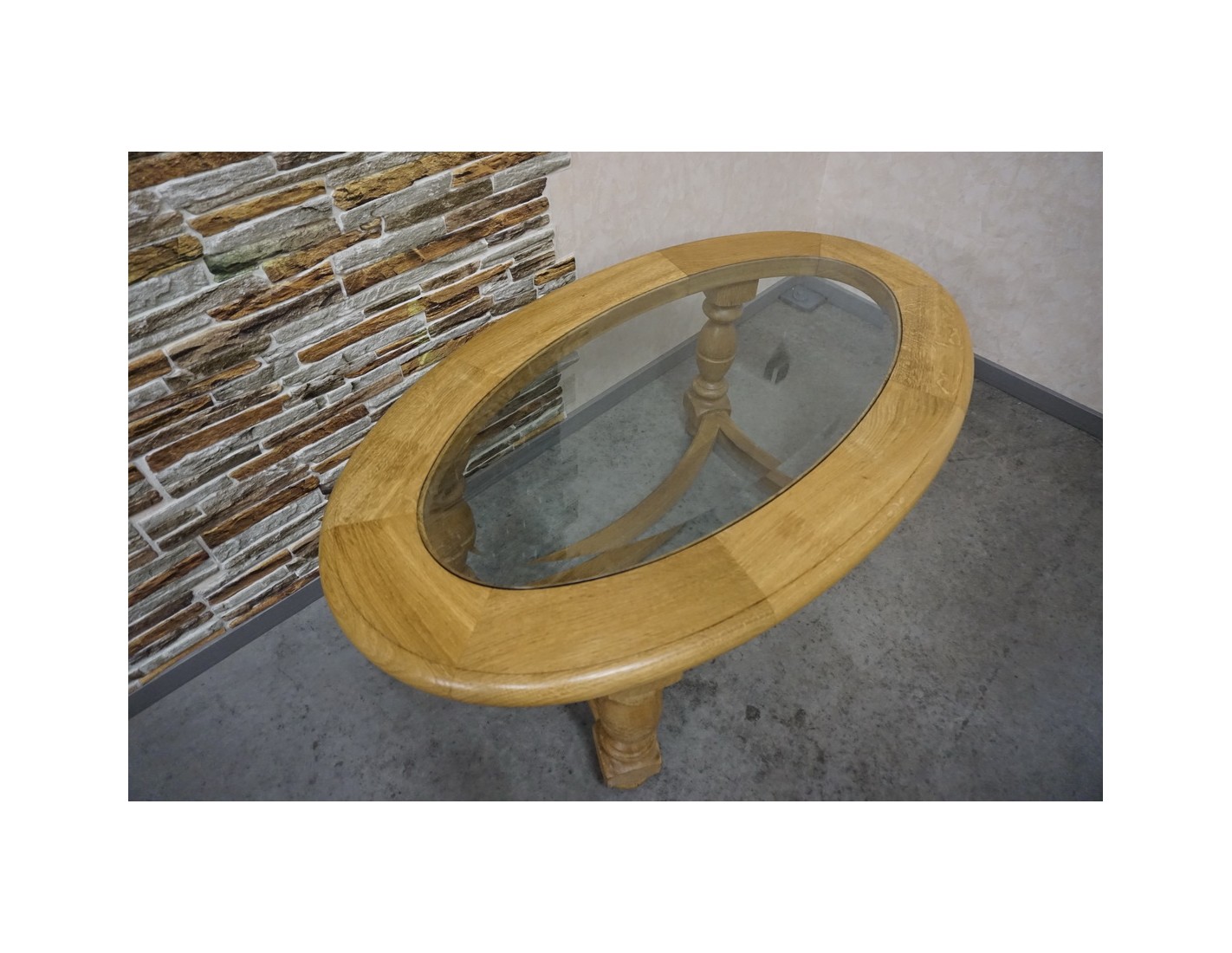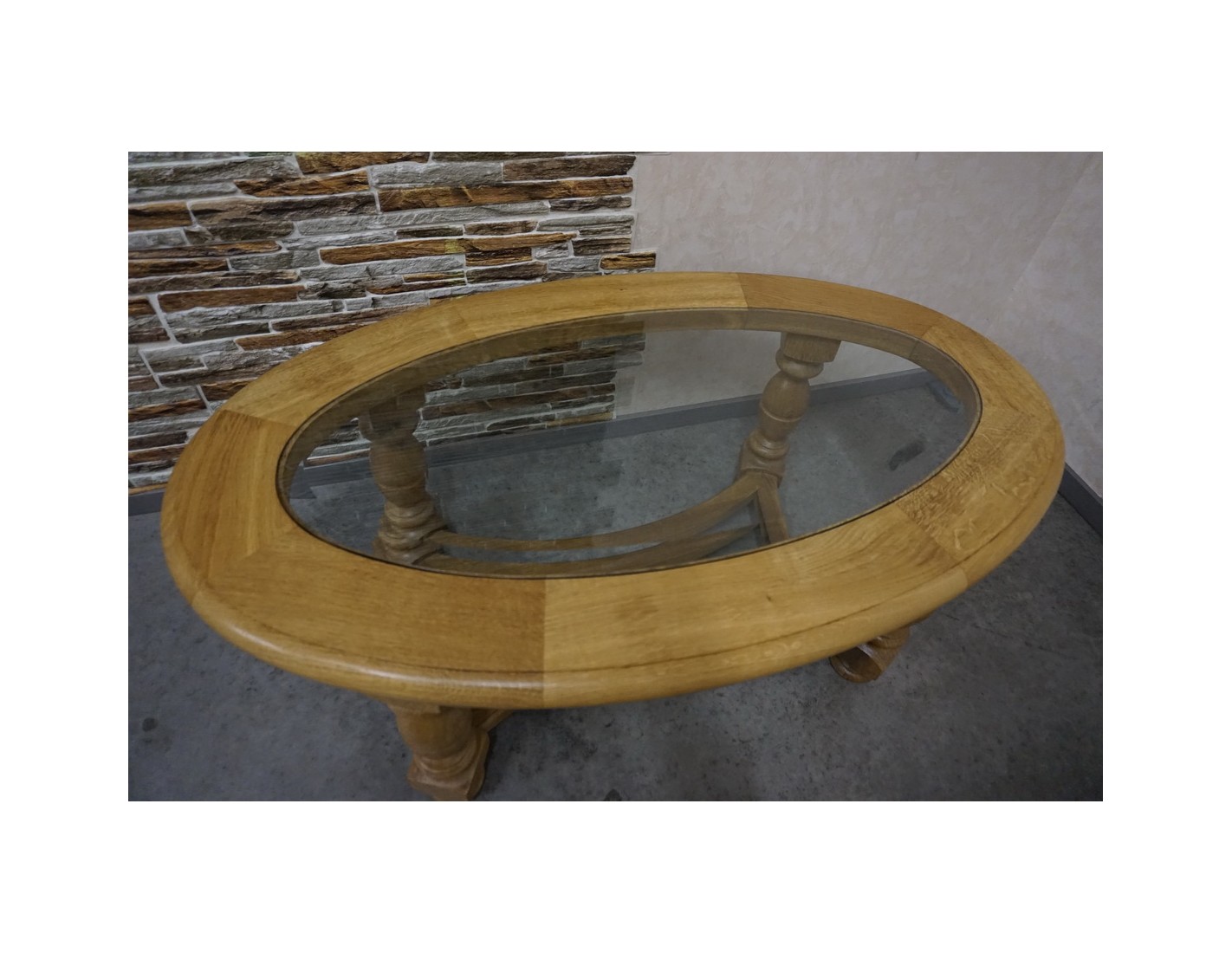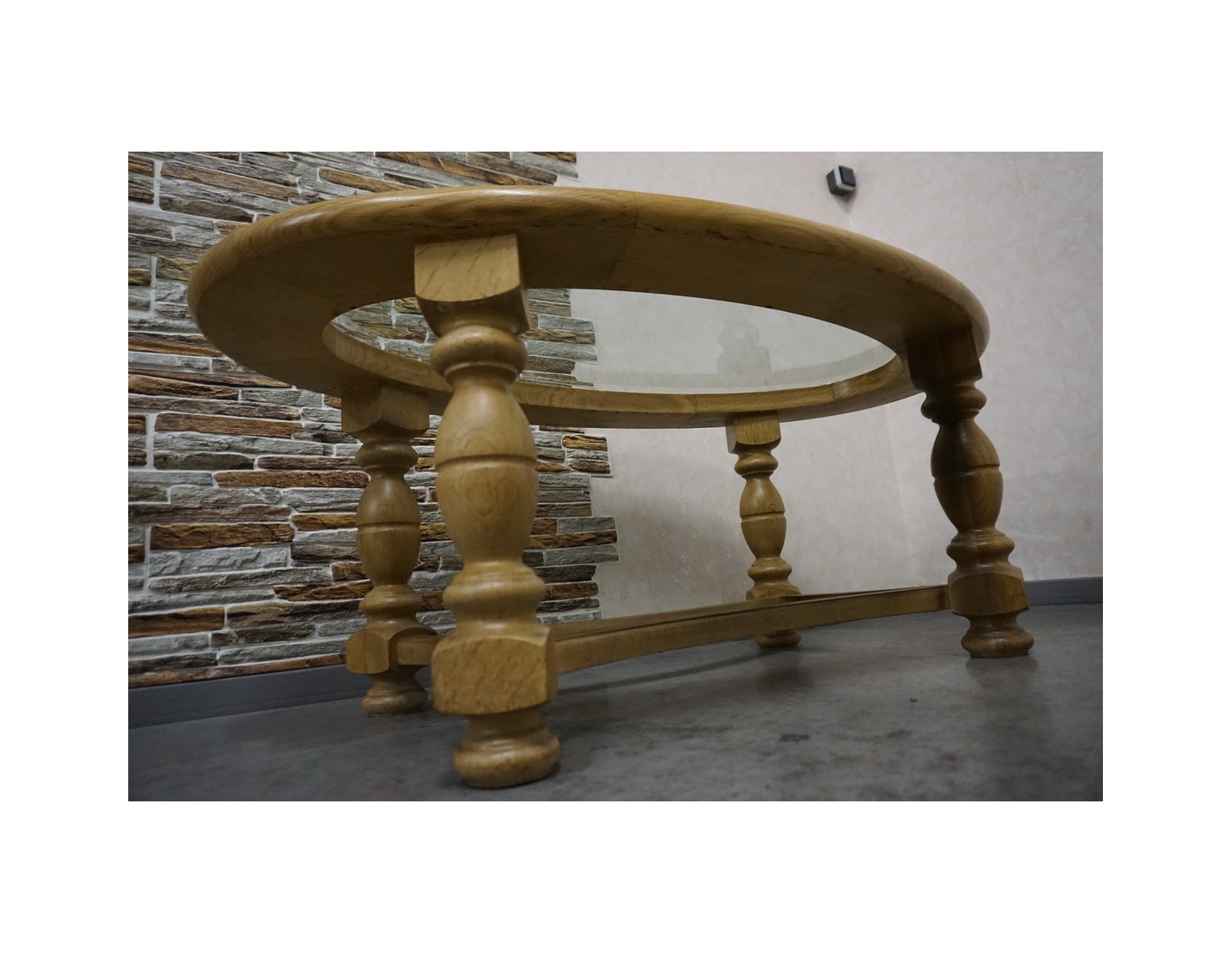 Ława owalna z jasnego litego dębu ze szklanym blatem frezowanym to elegancki i funkcjonalny mebel, który doskonale sprawdzi się w salonie jako centralny punkt strefy wypoczynkowej. Połączenie naturalnego drewna z dekoracyjnym szkłem nadaje jej lekkości oraz wyjątkowego charakteru.
