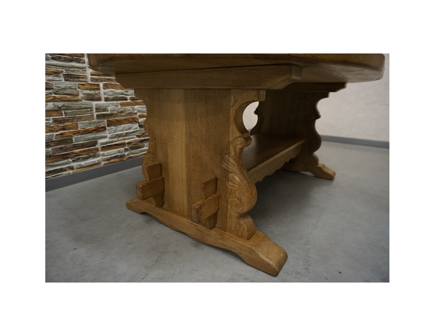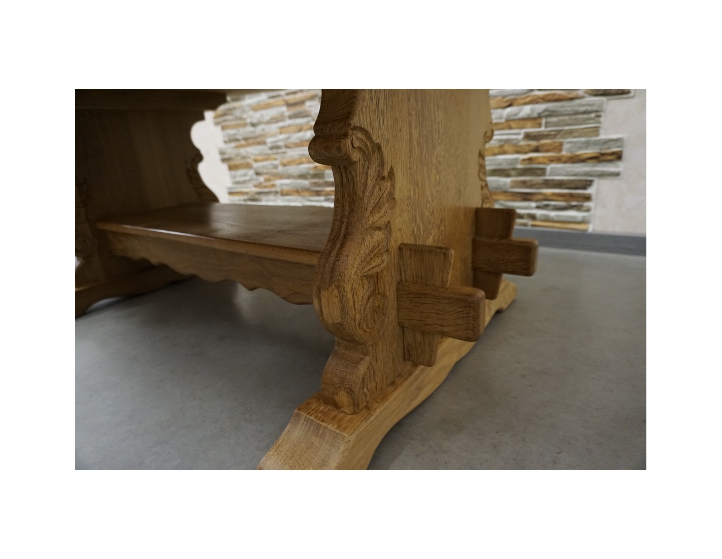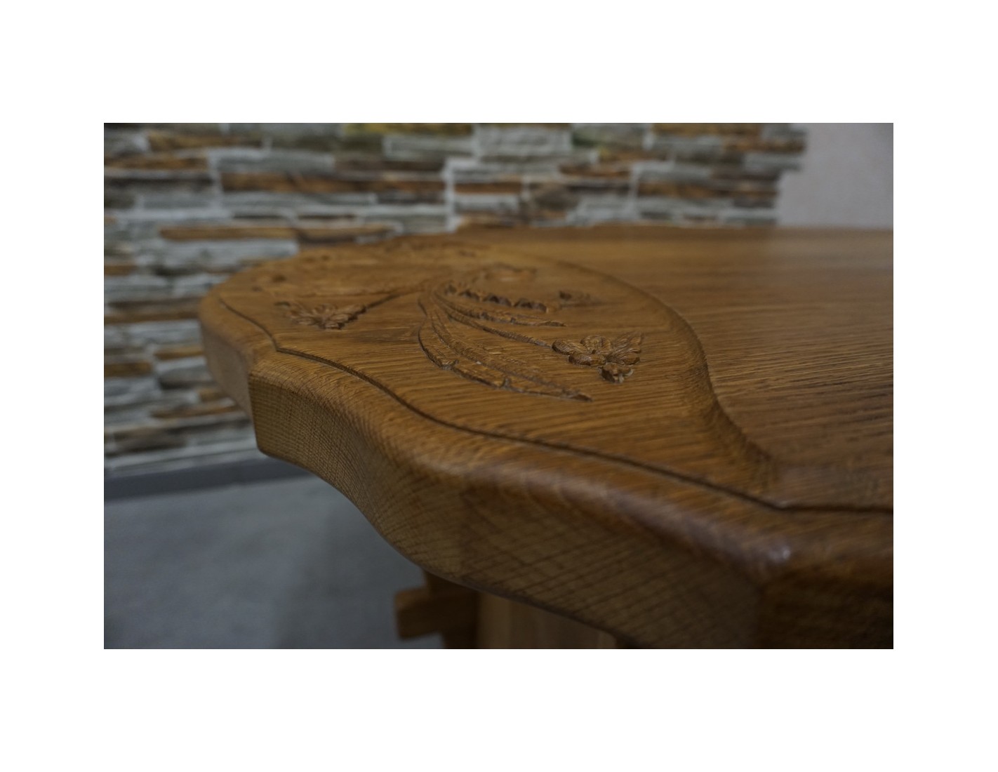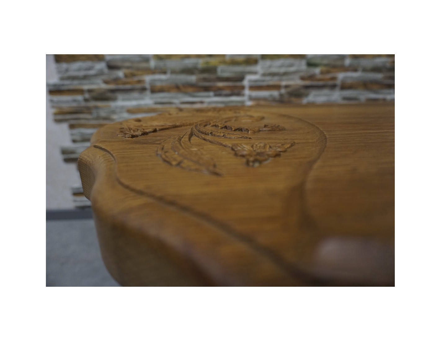 Duży, masywny blat zapewnia wygodną przestrzeń użytkową, idealną na codzienne spotkania przy kawie, przekąski czy dekoracje. Grubość blatu podkreśla solidność wykonania i nadaje meblowi wyjątkowego charakteru.