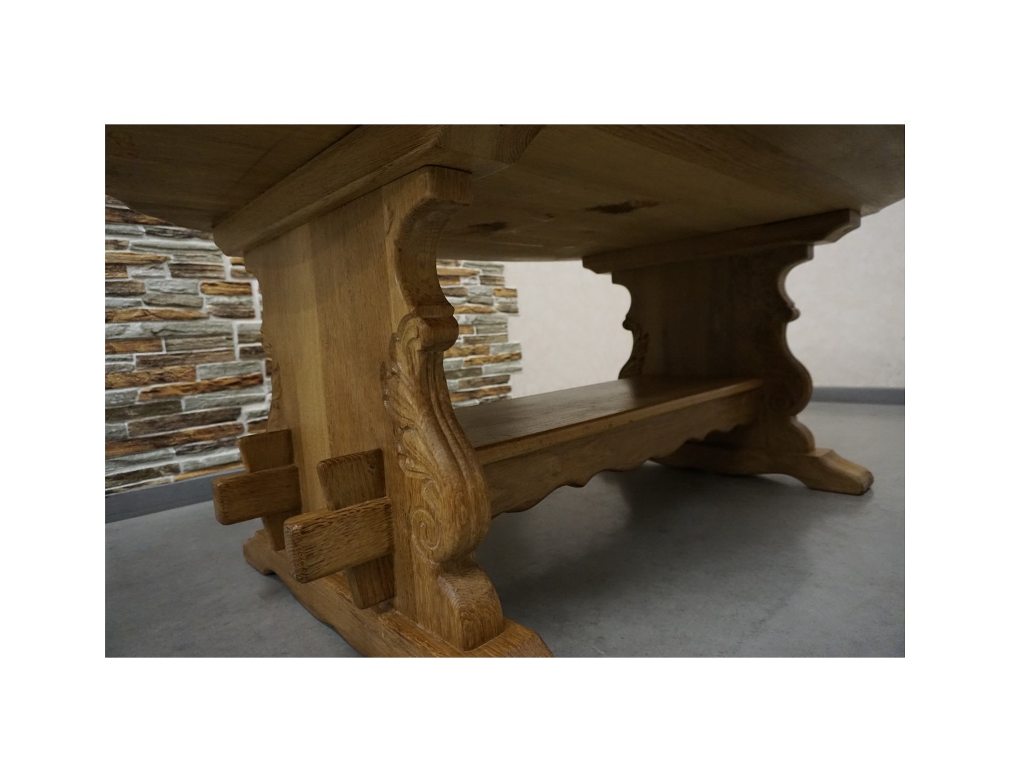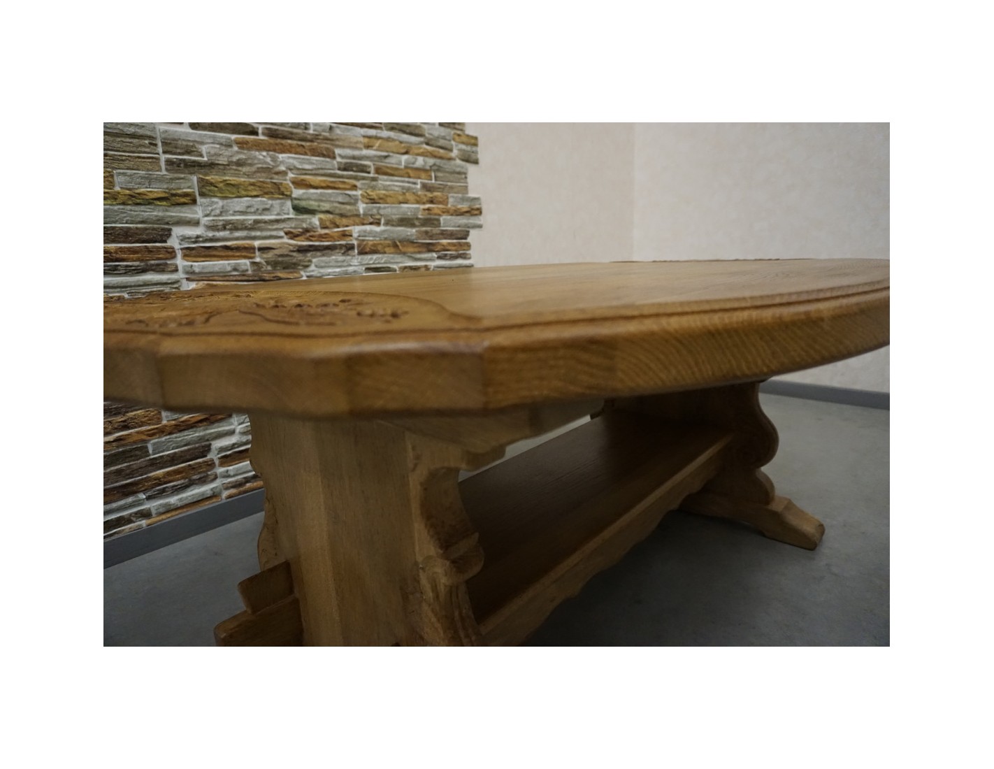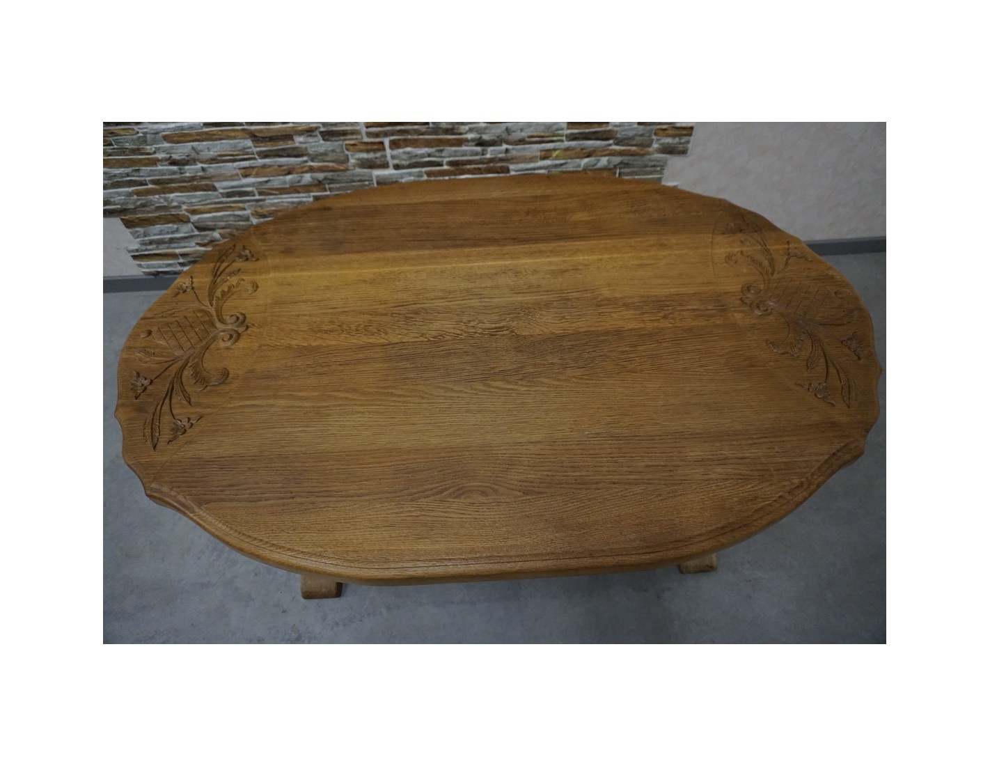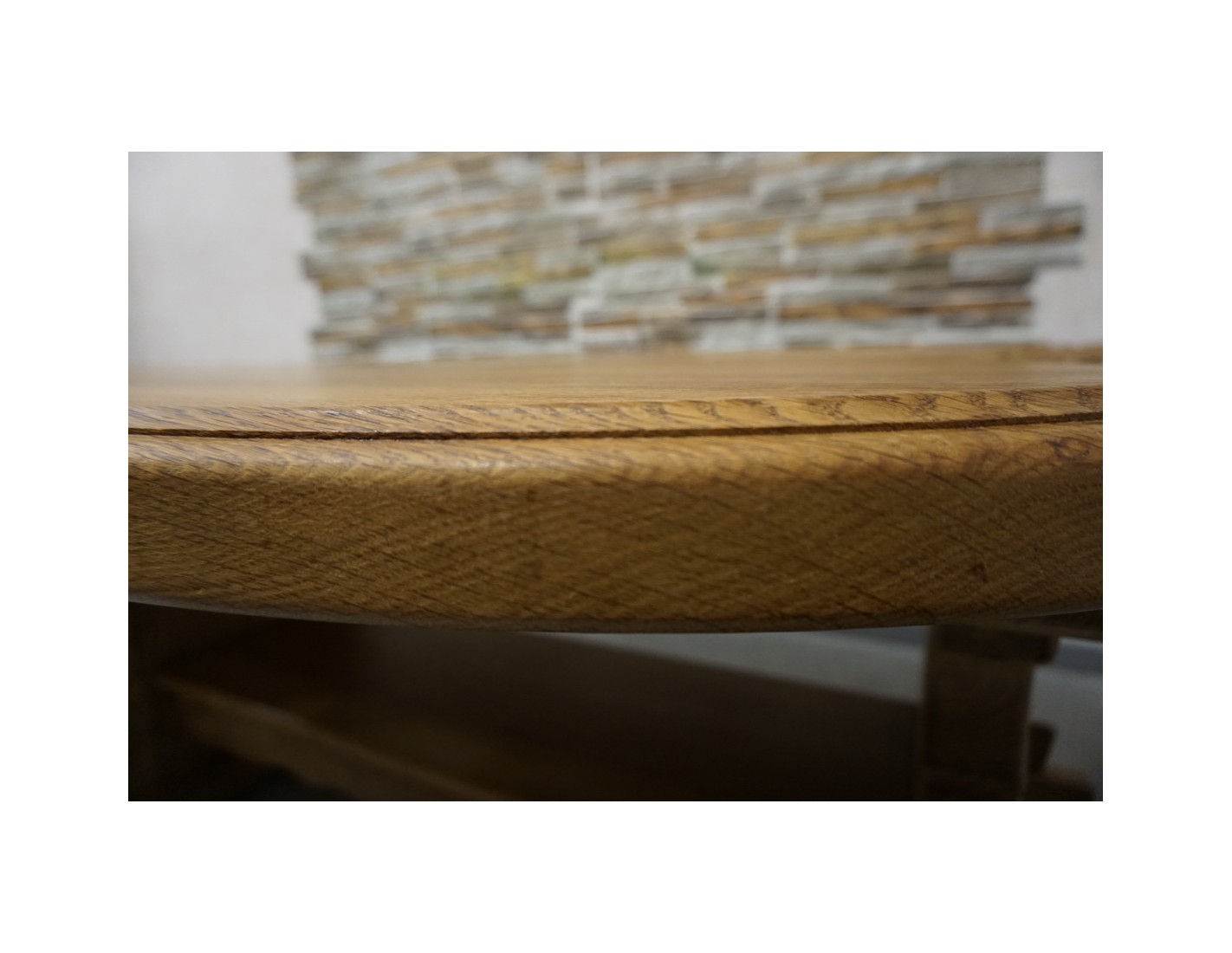 Duży, masywny blat zapewnia wygodną przestrzeń użytkową, idealną na codzienne spotkania przy kawie, przekąski czy dekoracje. Grubość blatu podkreśla solidność wykonania i nadaje meblowi wyjątkowego charakteru.