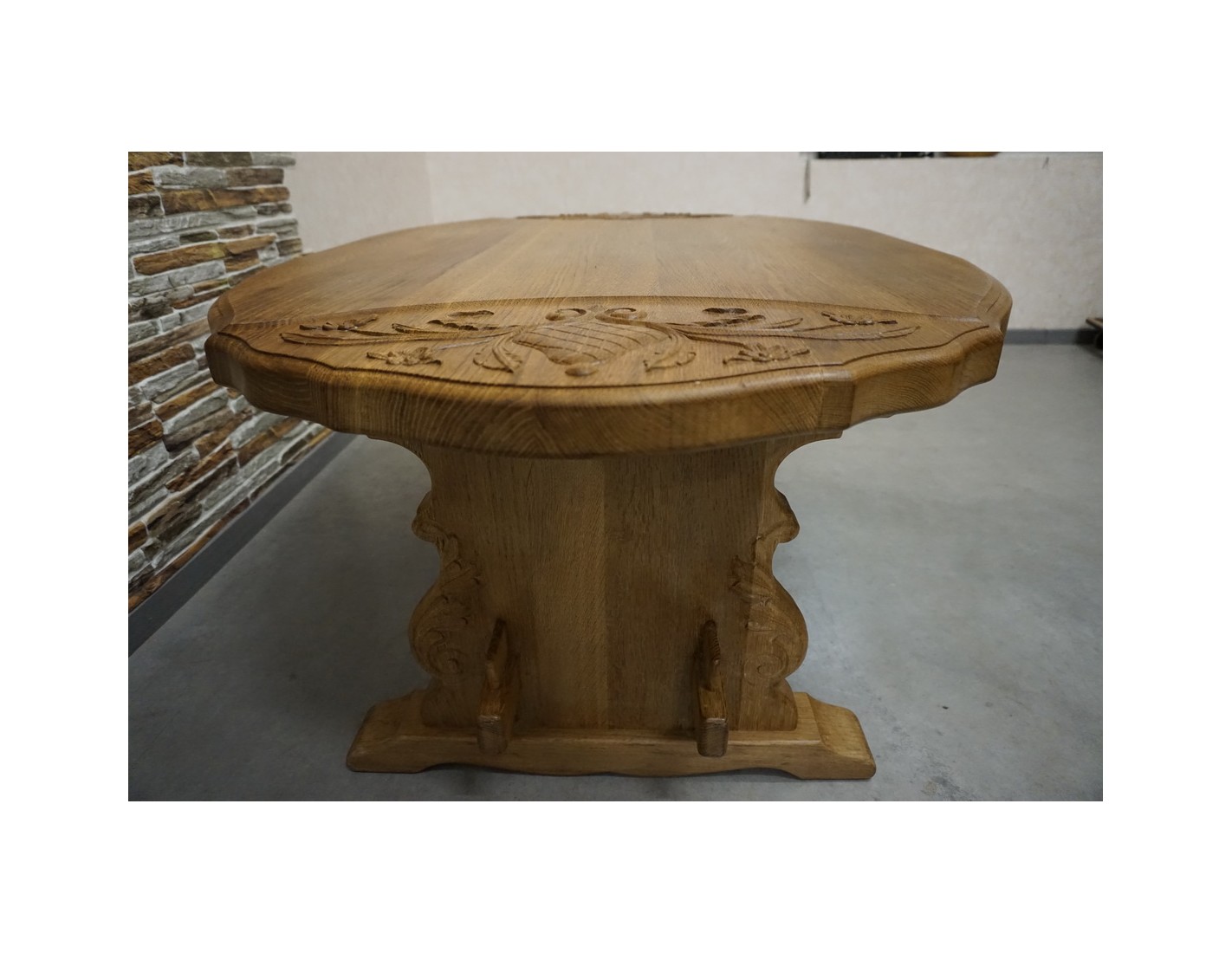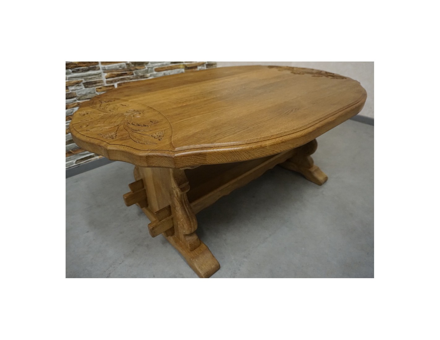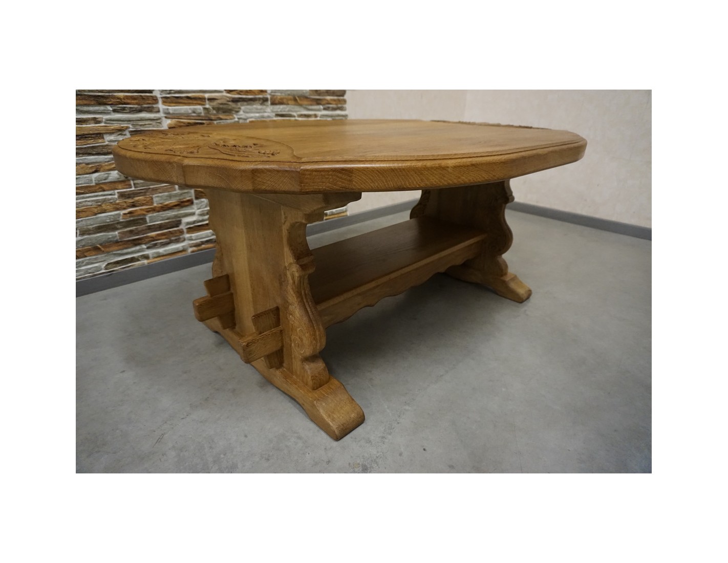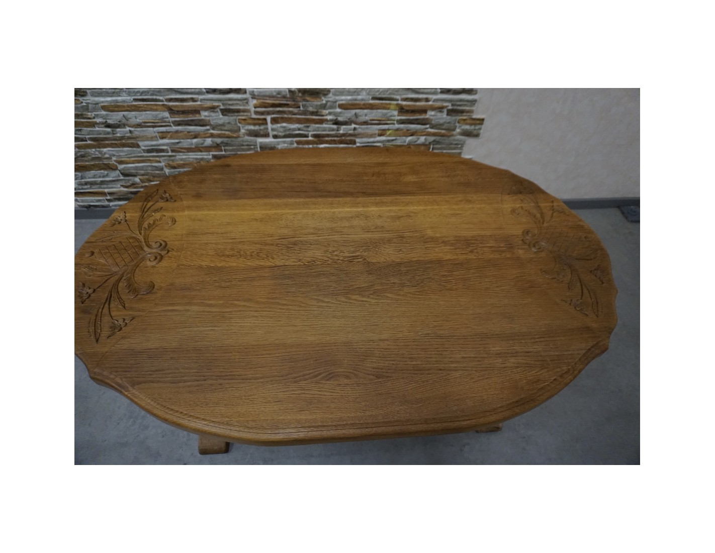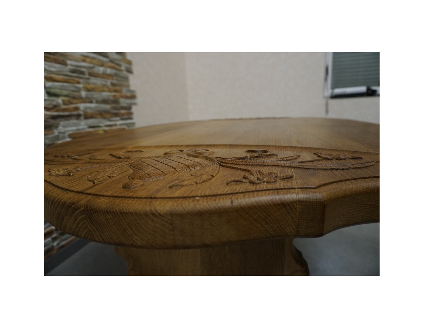 Duży, masywny blat zapewnia wygodną przestrzeń użytkową, idealną na codzienne spotkania przy kawie, przekąski czy dekoracje. Grubość blatu podkreśla solidność wykonania i nadaje meblowi wyjątkowego charakteru.