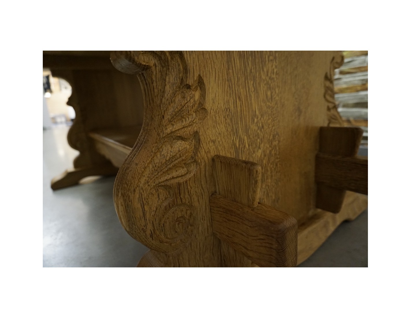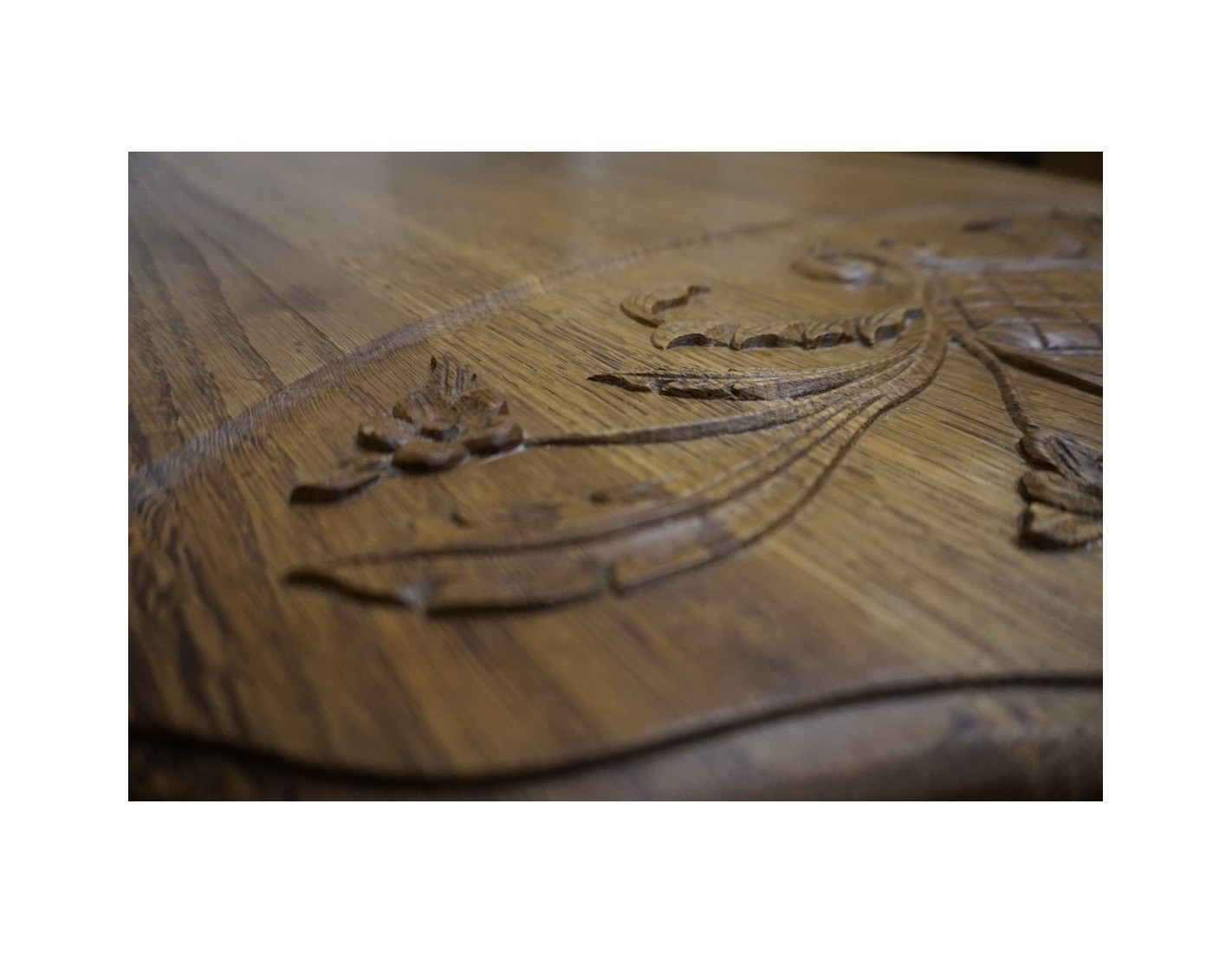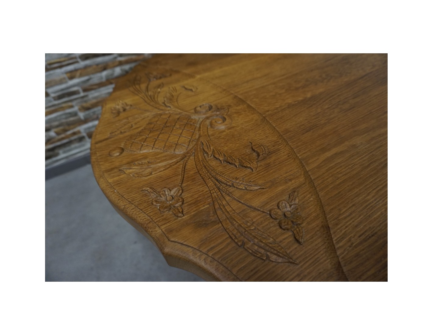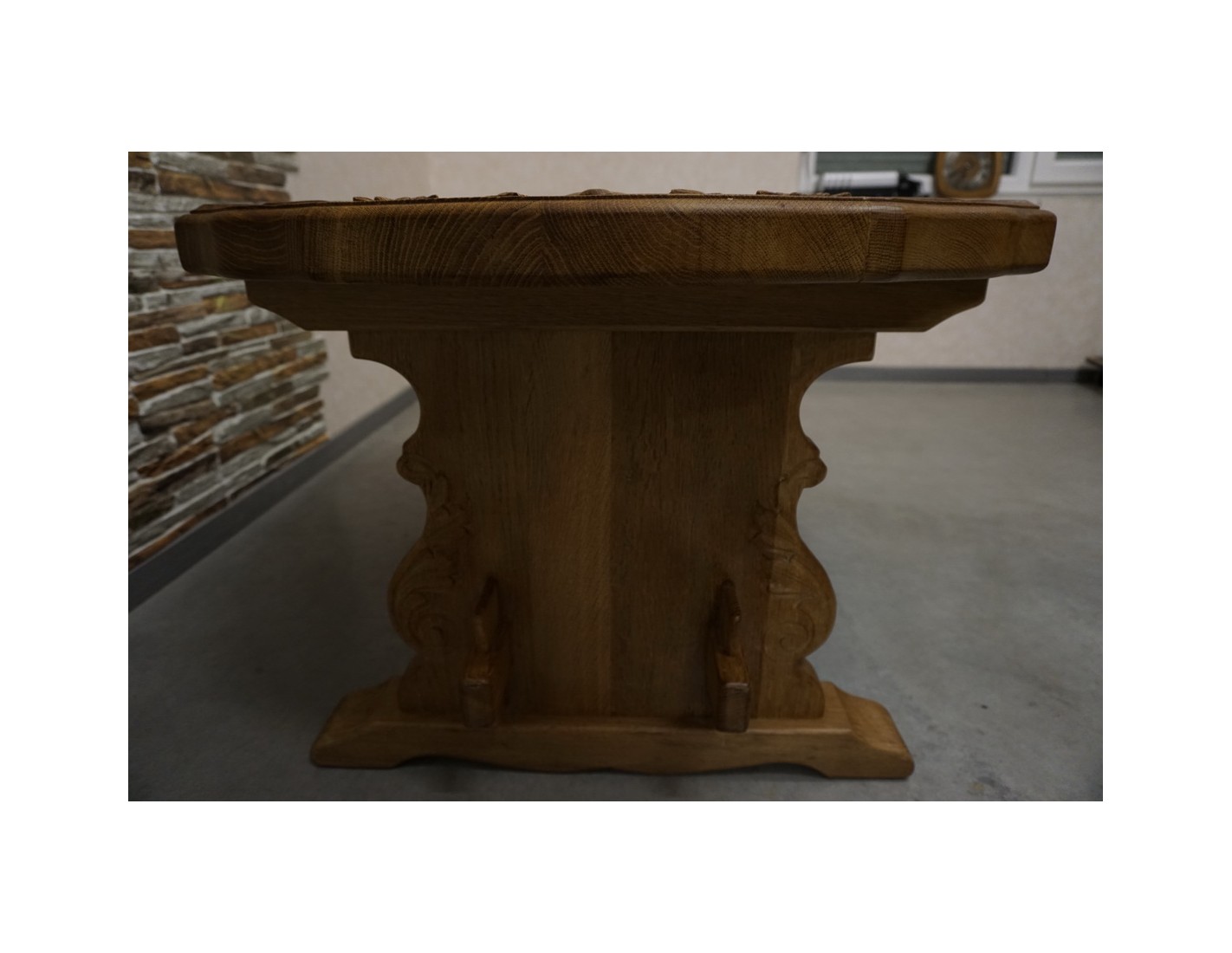 Duży, masywny blat zapewnia wygodną przestrzeń użytkową, idealną na codzienne spotkania przy kawie, przekąski czy dekoracje. Grubość blatu podkreśla solidność wykonania i nadaje meblowi wyjątkowego charakteru.