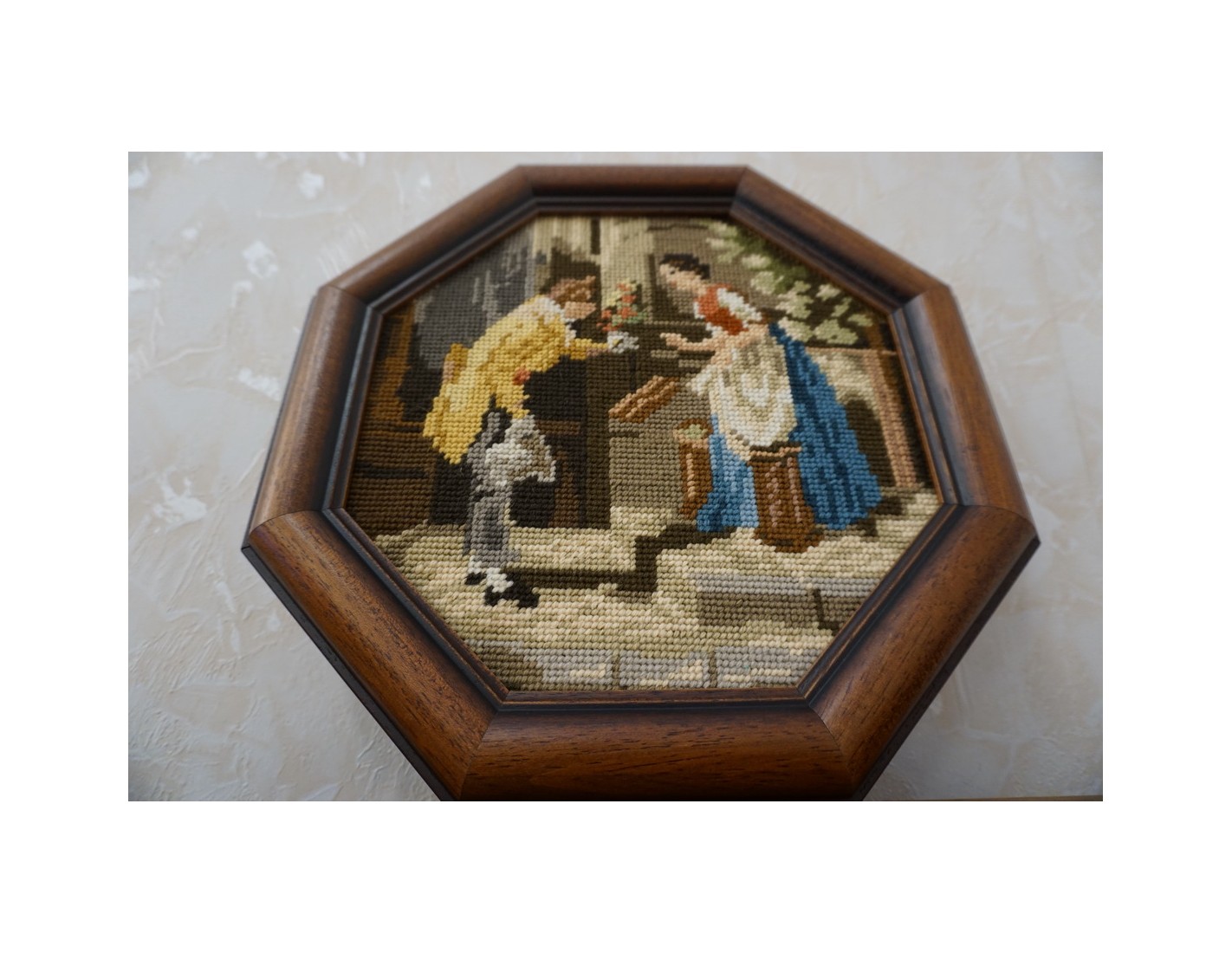 Elegancki ośmiokątny obrazek gobelinowy, który wprowadzi przytulny i stylowy akcent do każdego wnętrza. Precyzyjne wzory i staranne wykonanie nadają mu wyjątkowego charakteru.