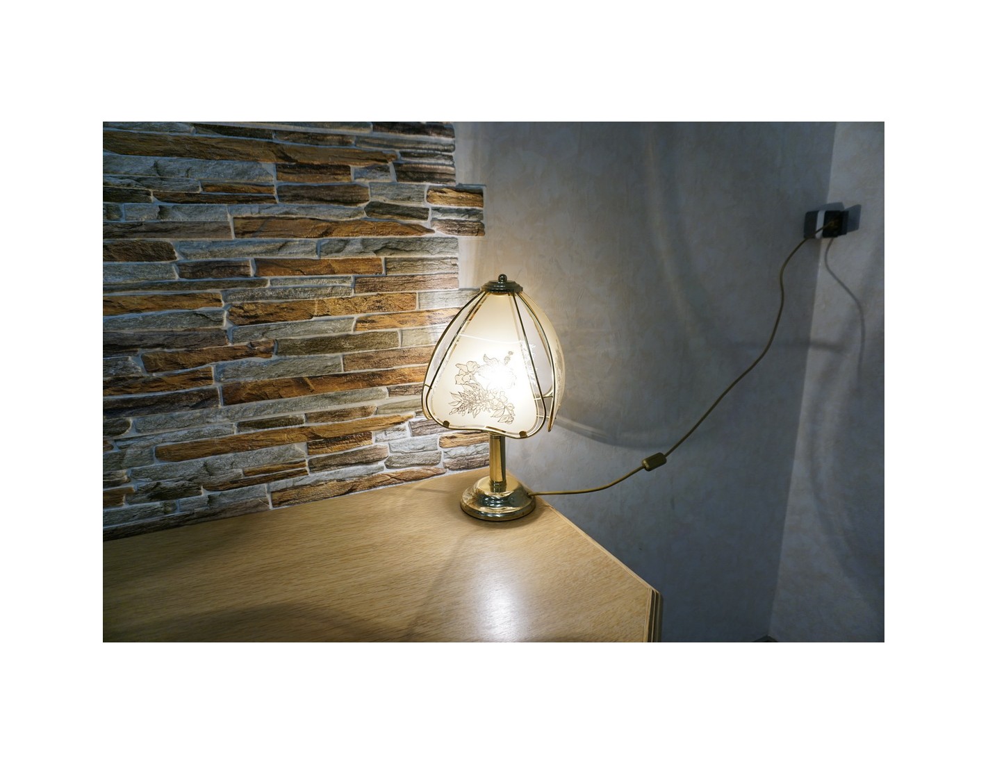 Szklany klosz z delikatnymi wzorkami dodaje lampce wyjątkowego uroku, doskonale pasując do klasycznych i nowoczesnych wnętrz. Dzięki niej praca przy biurku stanie się bardziej komfortowa.