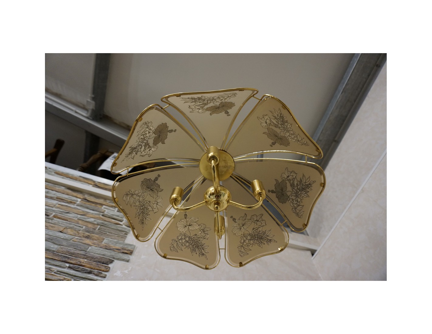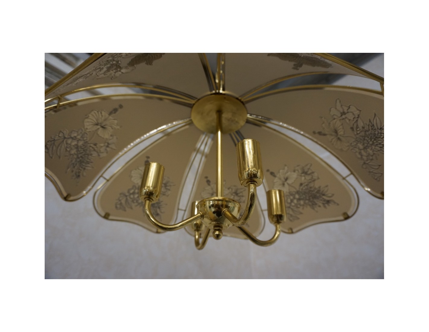 Szklany klosz ozdobiony wzorkami dodaje elegancji i wyjątkowego charakteru, sprawiając, że żyrandol będzie centralnym punktem każdego pomieszczenia.