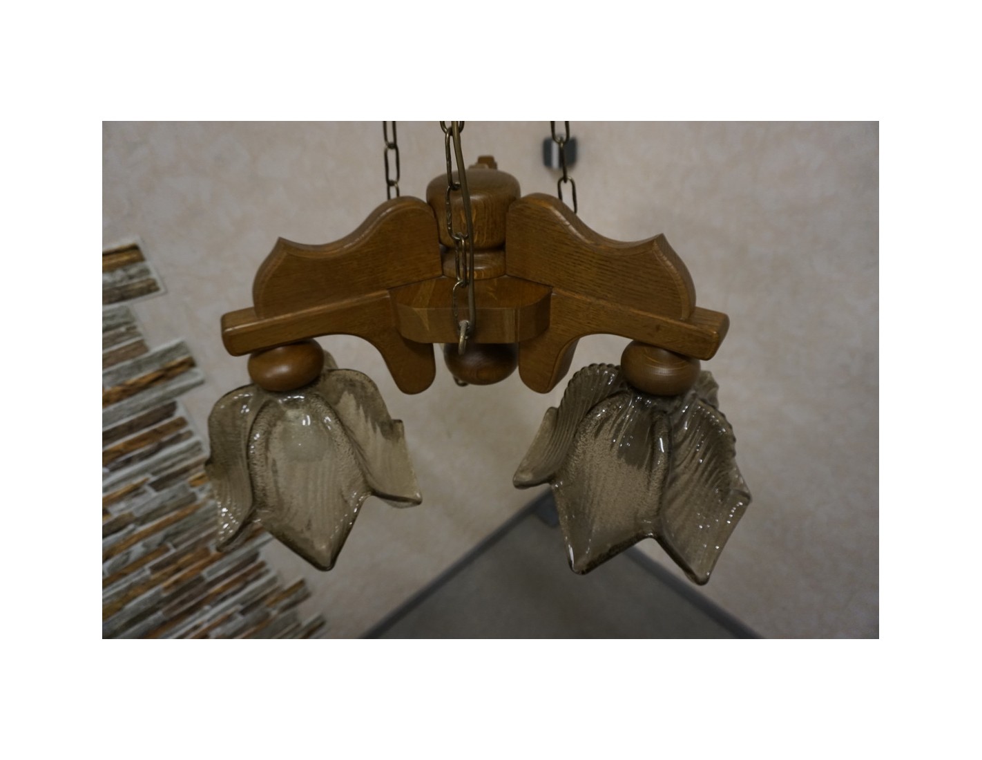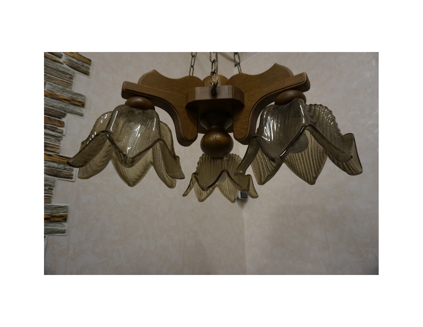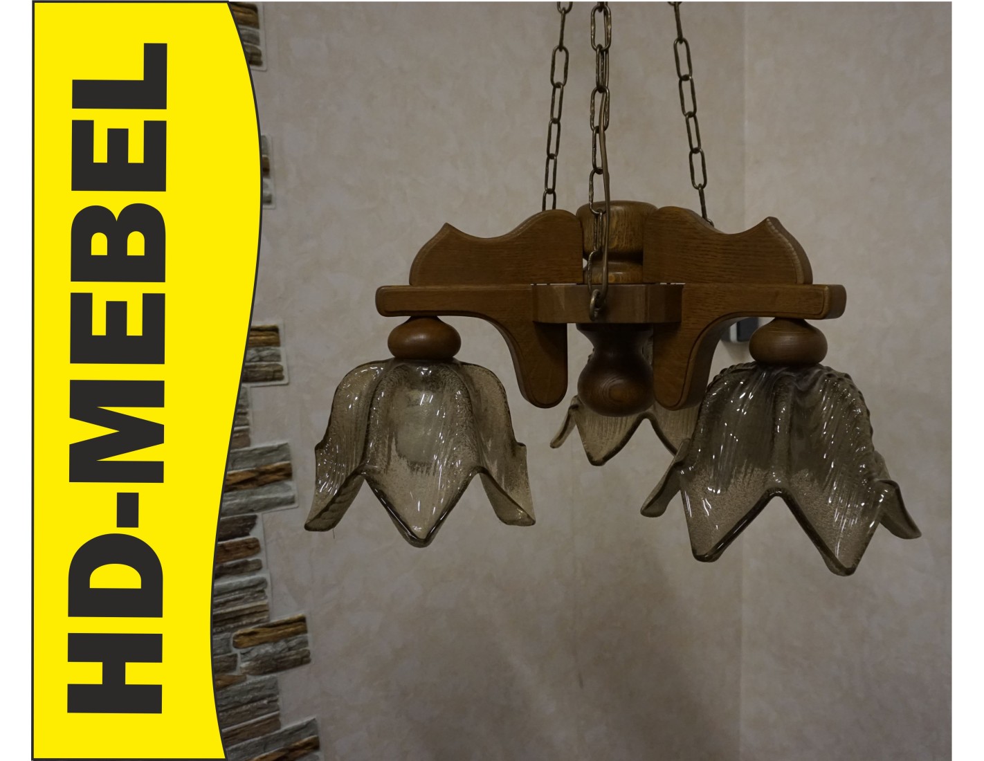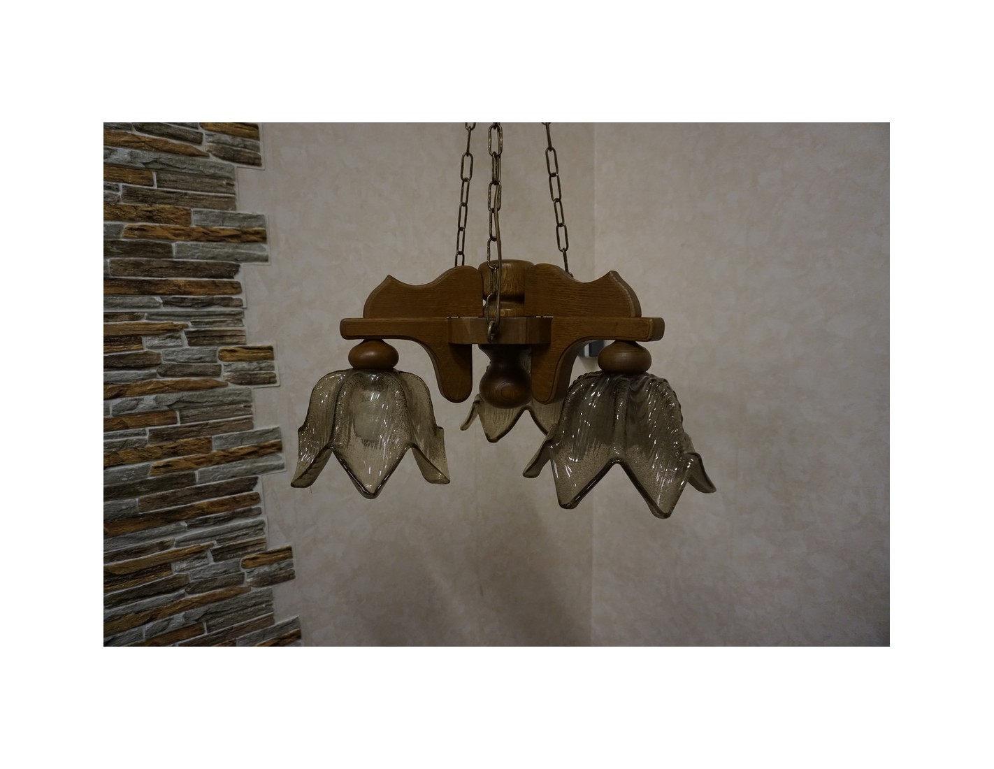 Elegancka i stylowa lampa wisząca z trzema szklanymi kloszami osadzonymi na solidnej, dębowej konstrukcji. Doskonałe rozwiązanie do oświetlenia salonu, jadalni lub sypialni. W zestawie znajdują się gratisowe żarówki.