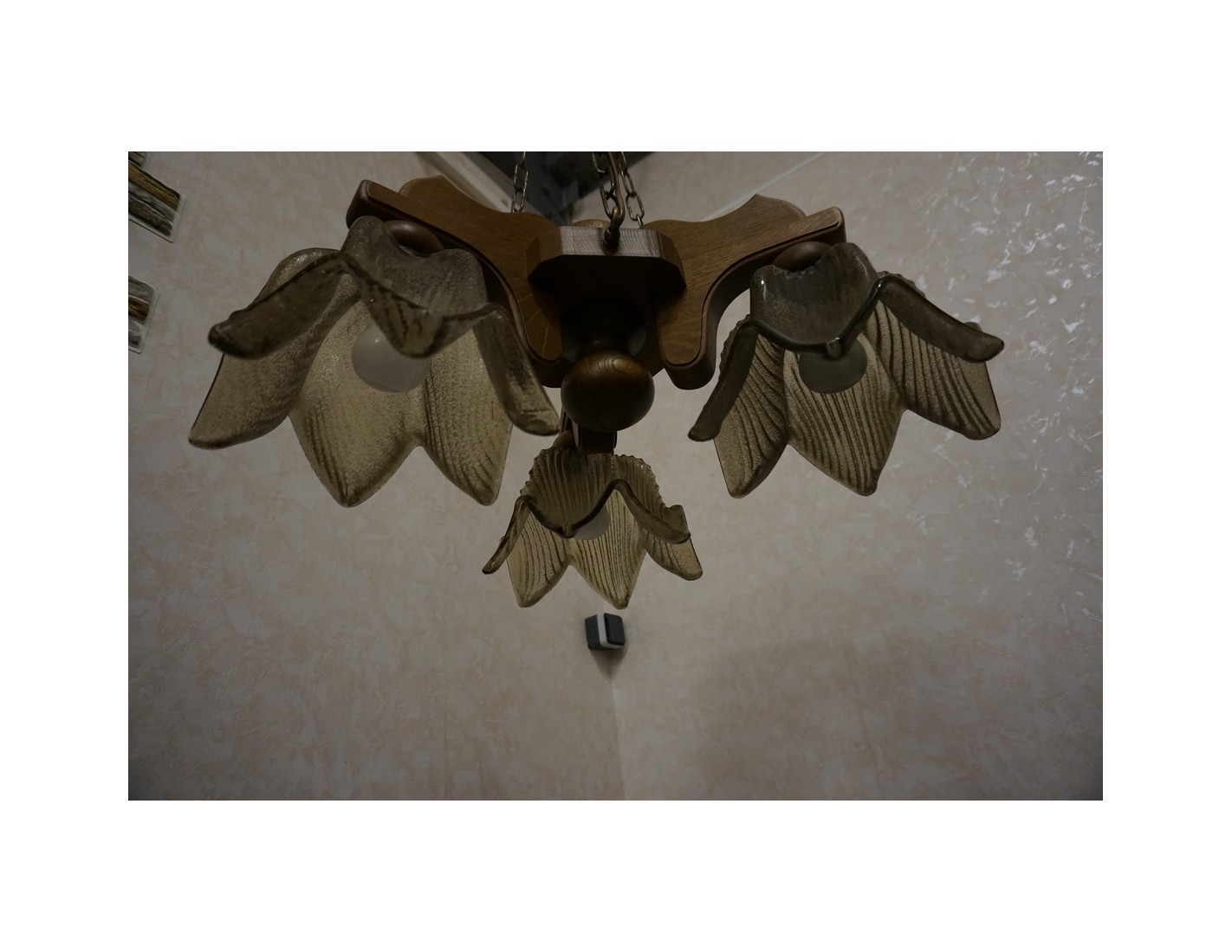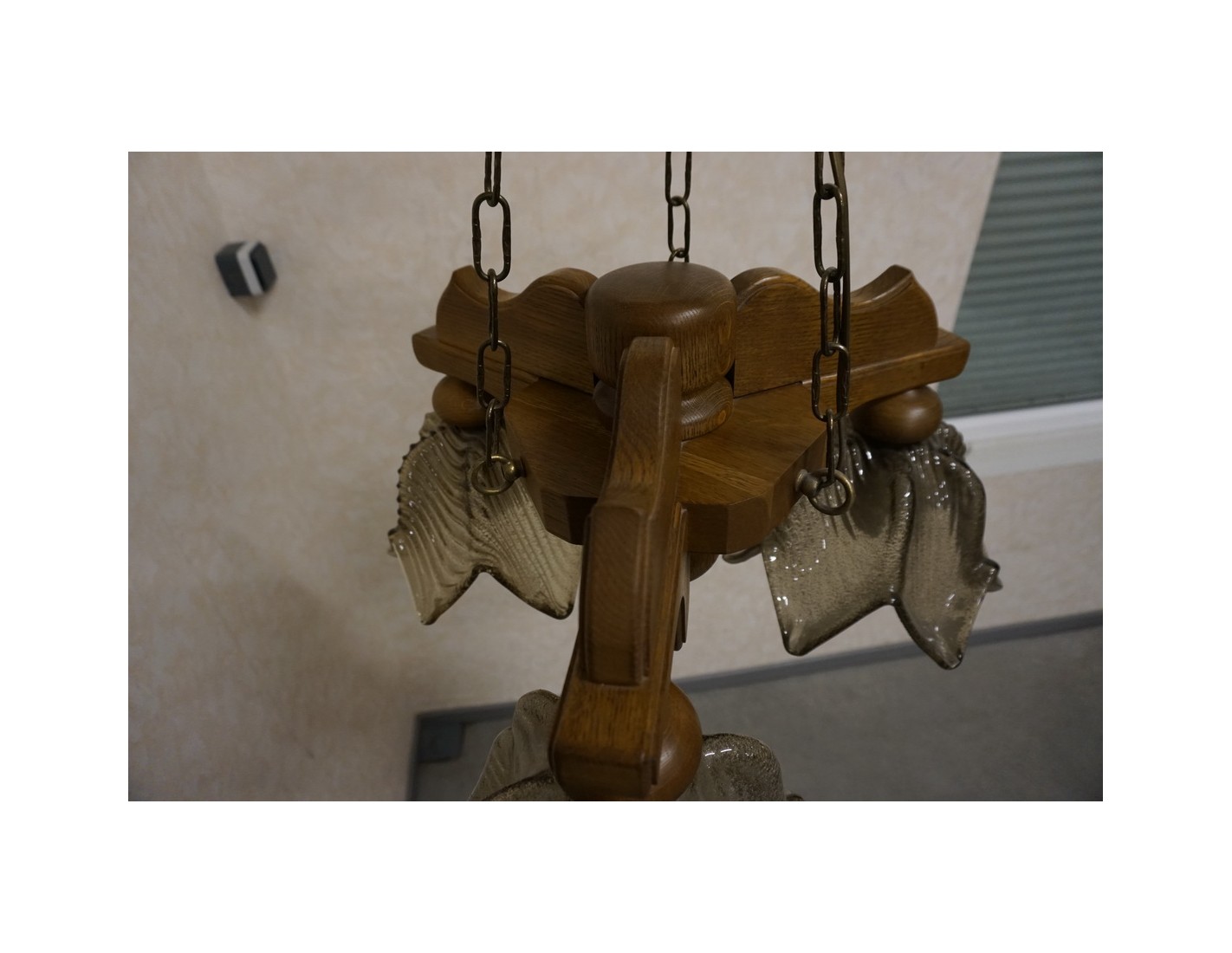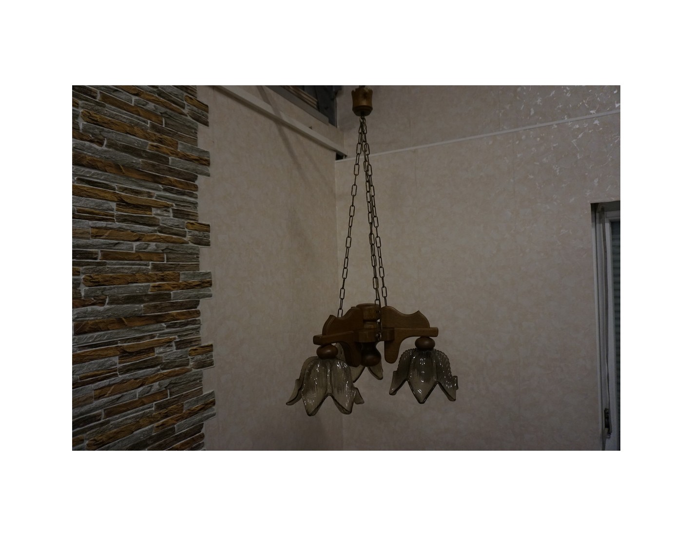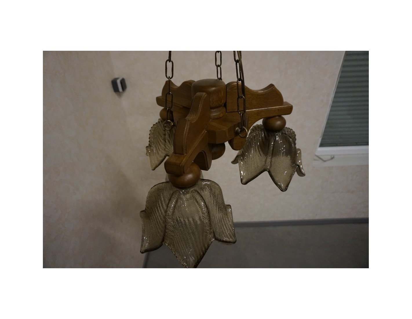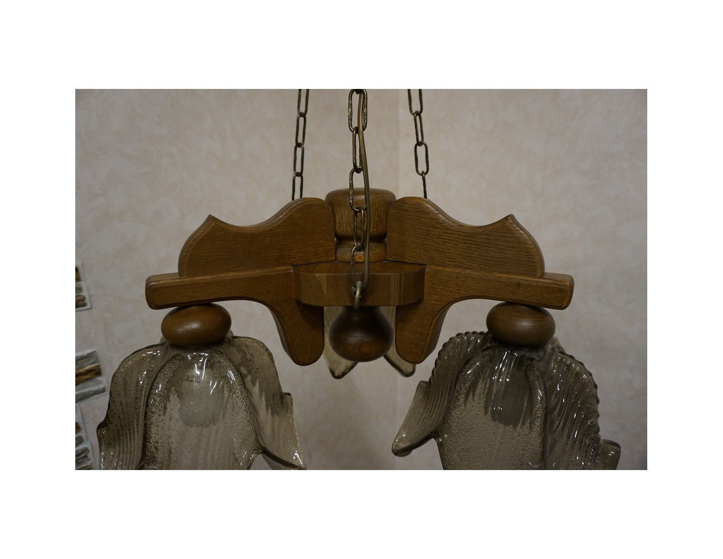 Elegancka i stylowa lampa wisząca z trzema szklanymi kloszami osadzonymi na solidnej, dębowej konstrukcji. Doskonałe rozwiązanie do oświetlenia salonu, jadalni lub sypialni. W zestawie znajdują się gratisowe żarówki.