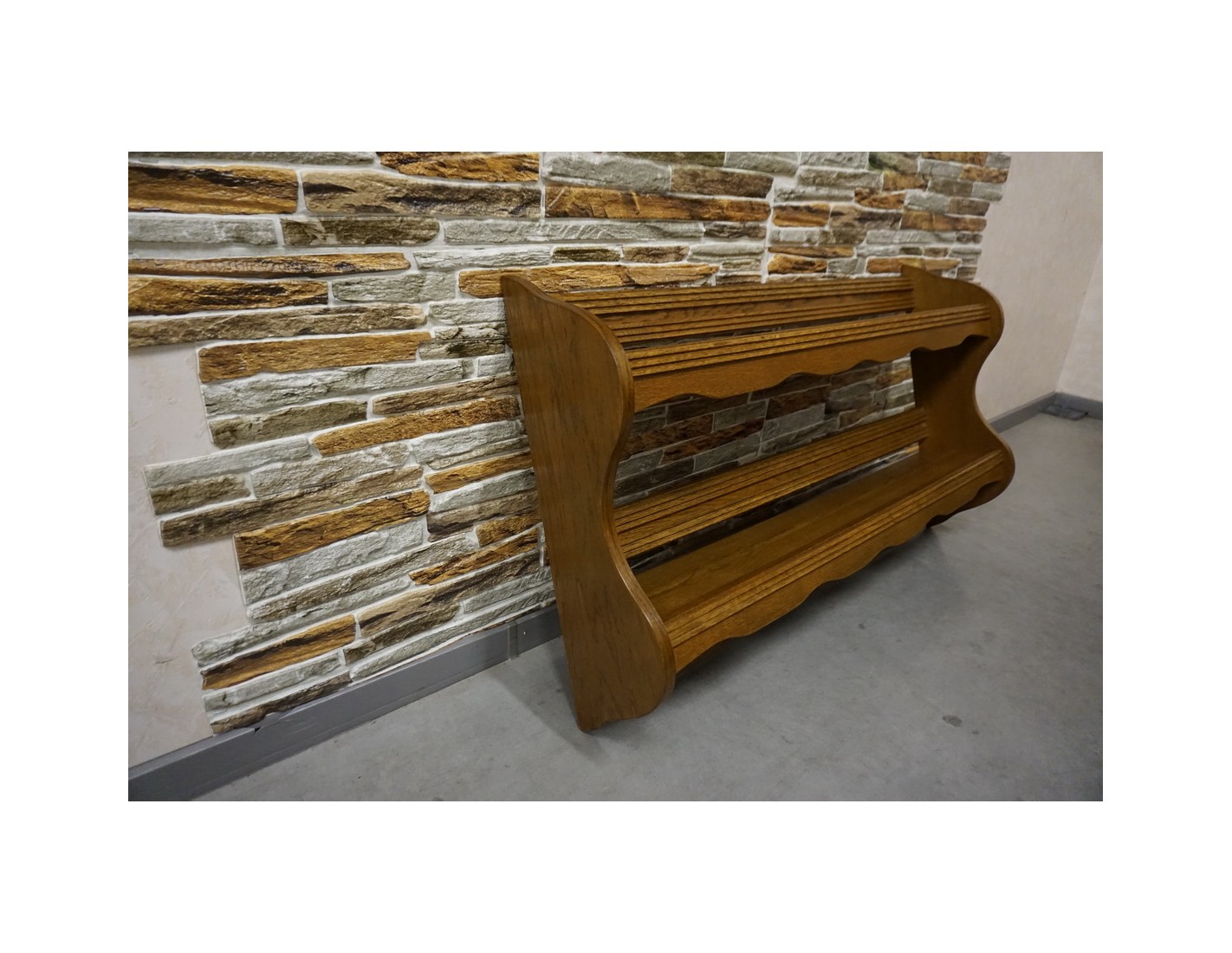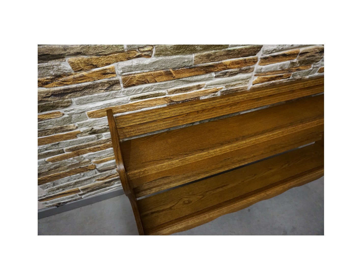 Półka doskonale komponuje się z innymi meblami dębowymi, wprowadzając do wnętrza ciepło i przytulny klimat. Świetnie sprawdzi się w salonie, sypialni lub przedpokoju.