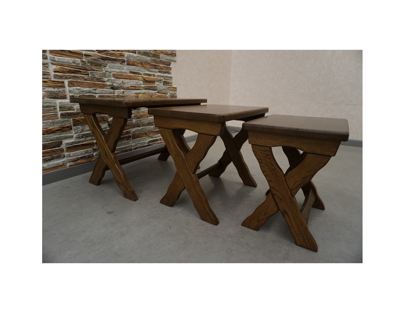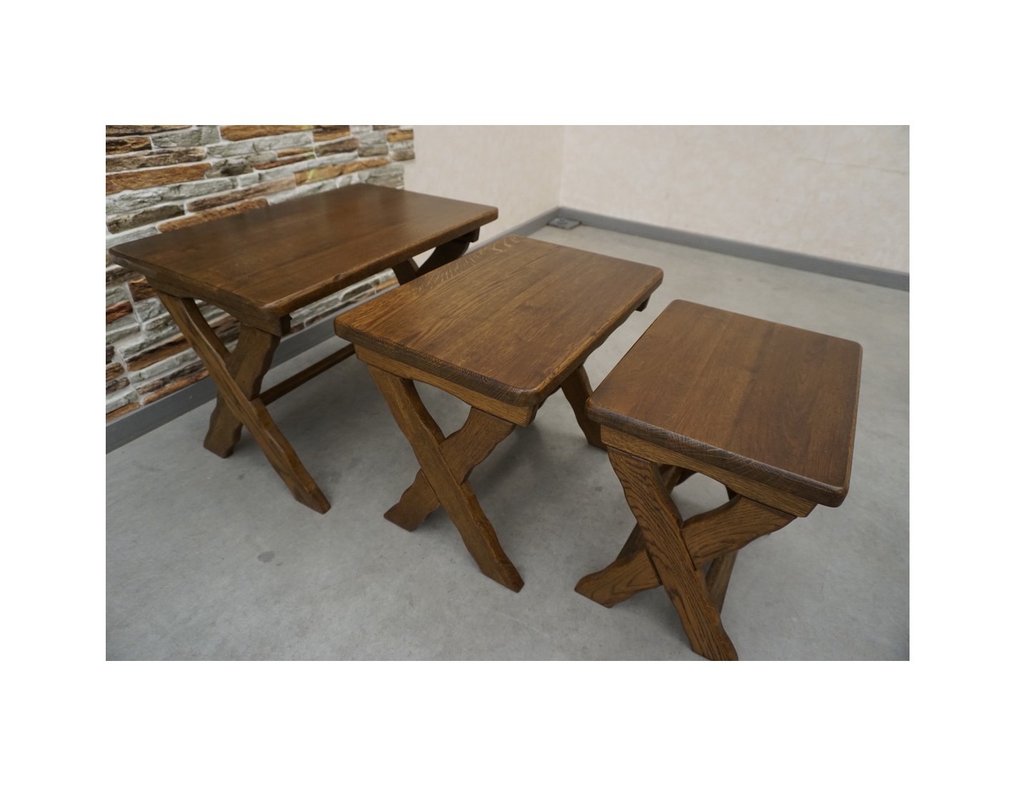 - Stolik 3: szerokość: 38 cm, głębokość: 30 cm, wysokość: 39 cm