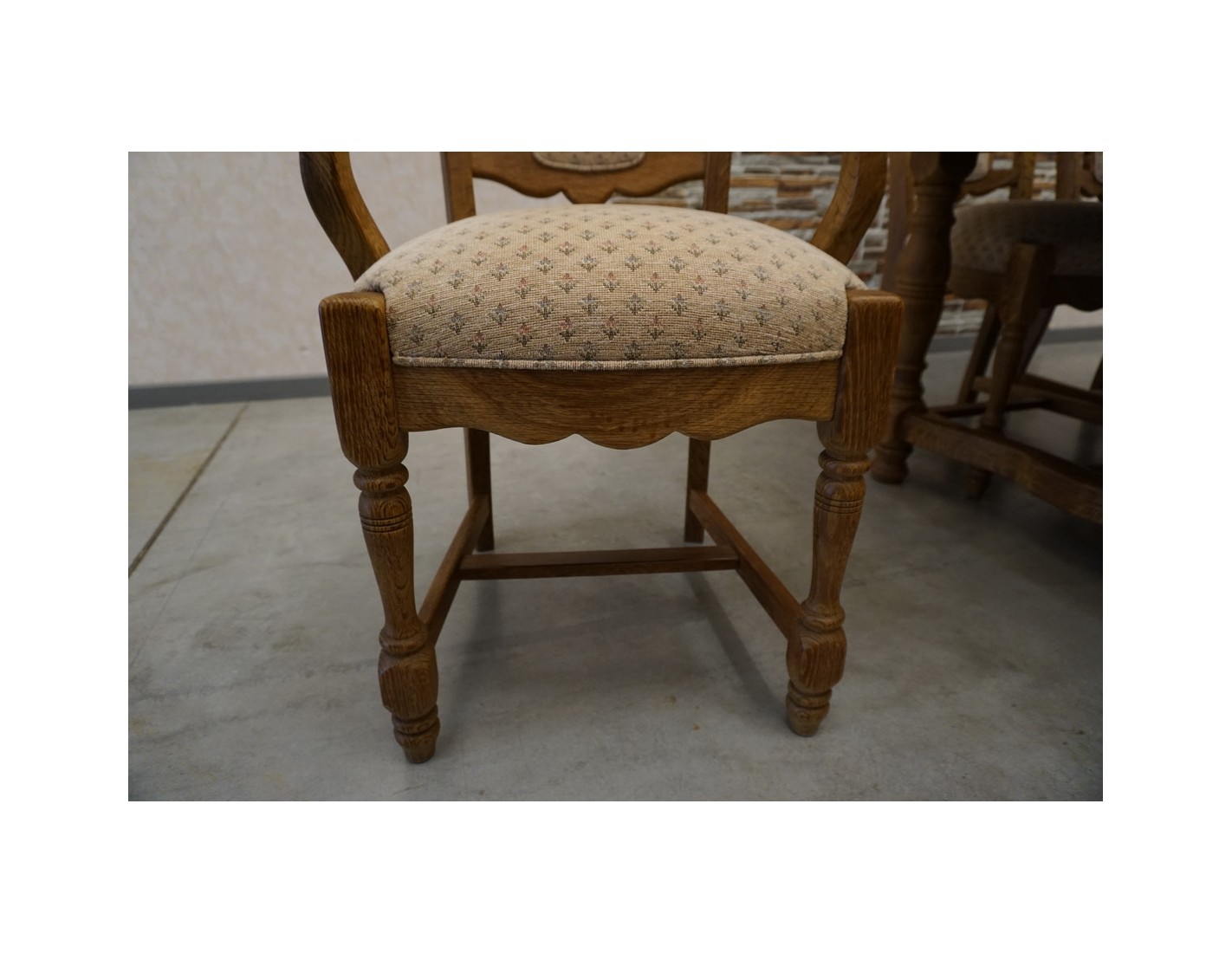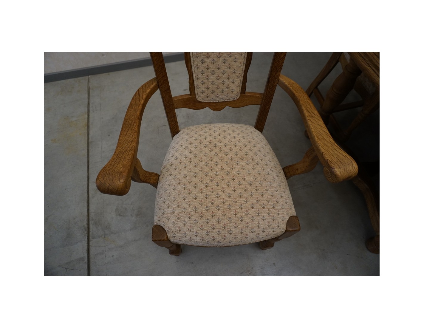 - 6 mniejszych krzeseł: szer. 48 cm, gł. 48 cm, wys. siedziska 50 cm, wys. oparcia 98 cm