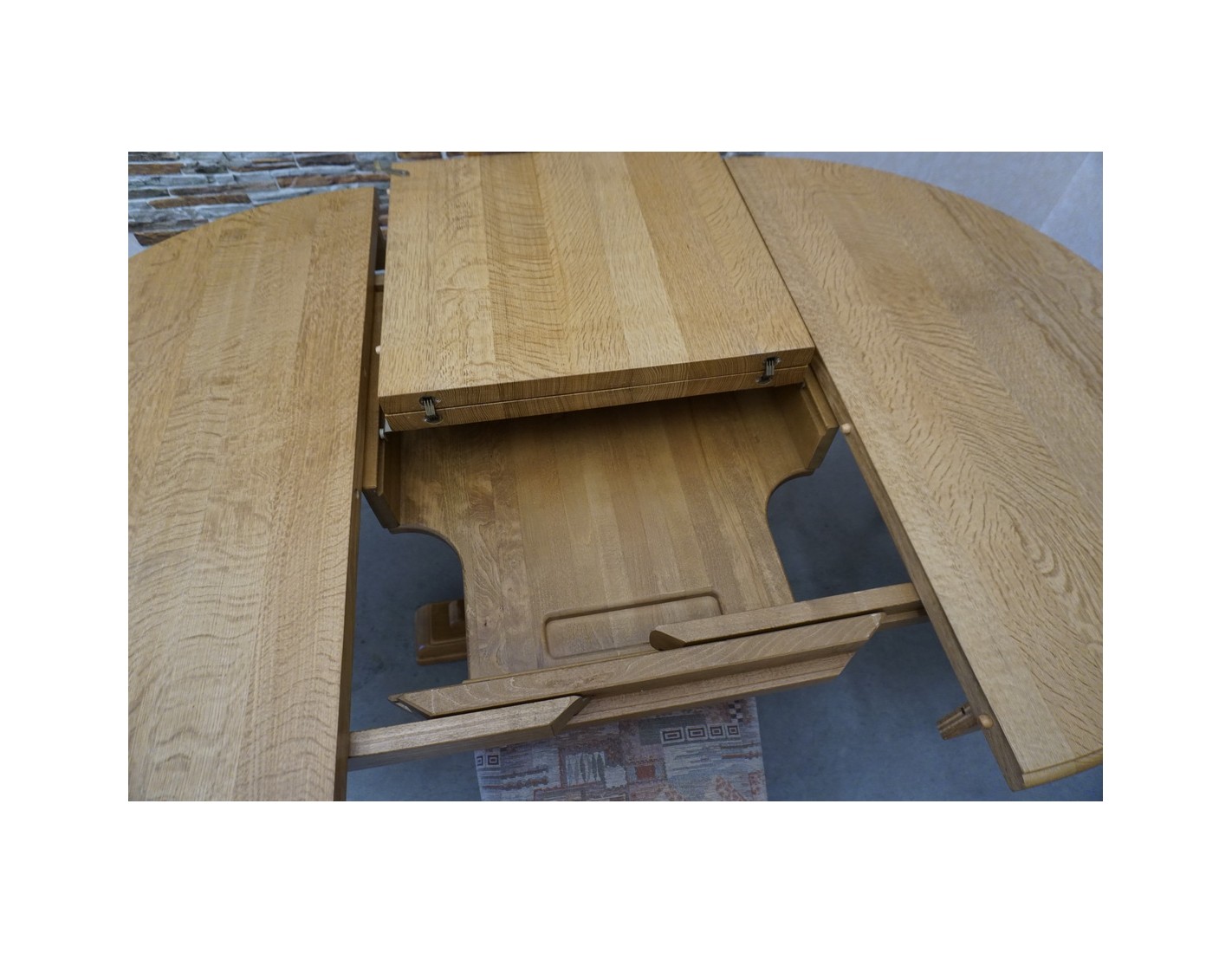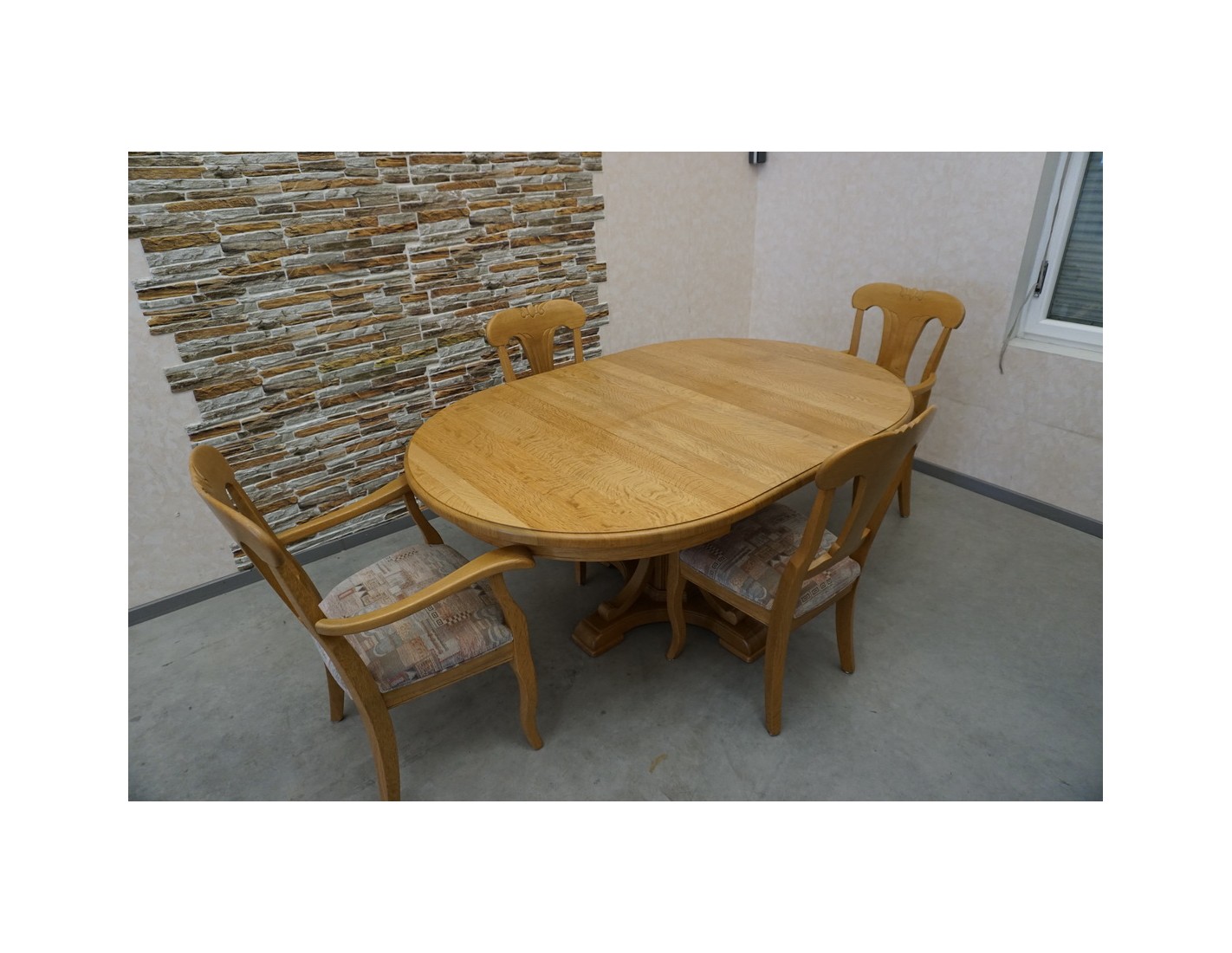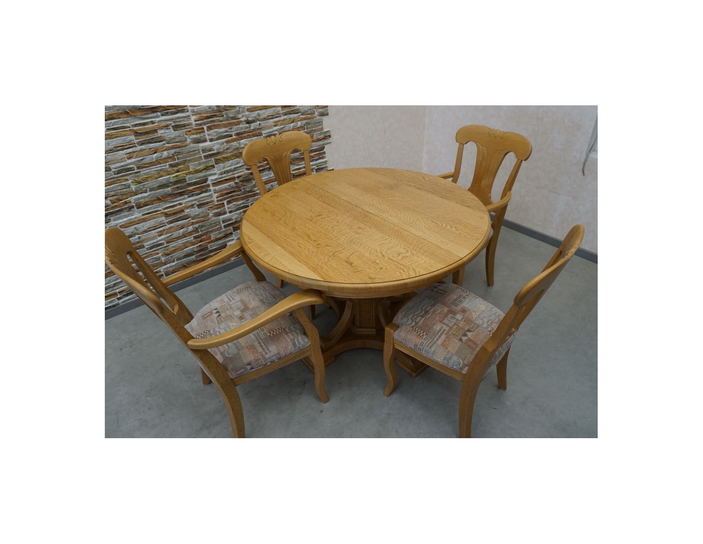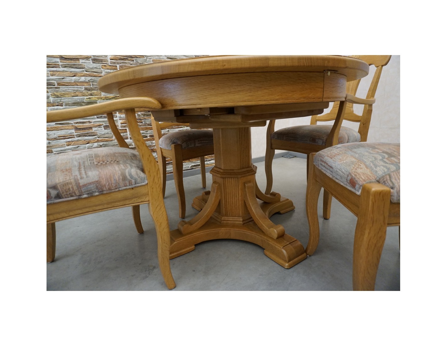 Elegancki rozkładany stół z litego dębu w komplecie z 4 krzesłami to idealny zestaw do jadalni lub salonu. Solidna konstrukcja i klasyczny design zapewniają trwałość oraz wygodę codziennego użytkowania. Stół można rozłożyć, zwiększając jego powierzchnię, co ułatwia organizację spotkań w większym gronie.