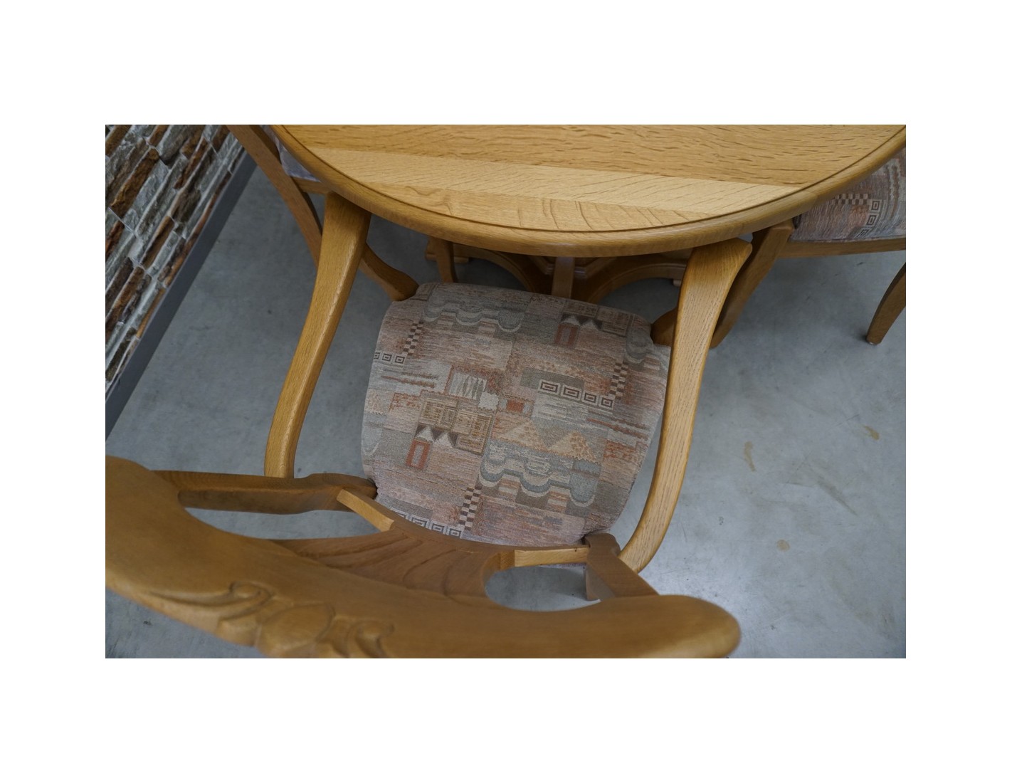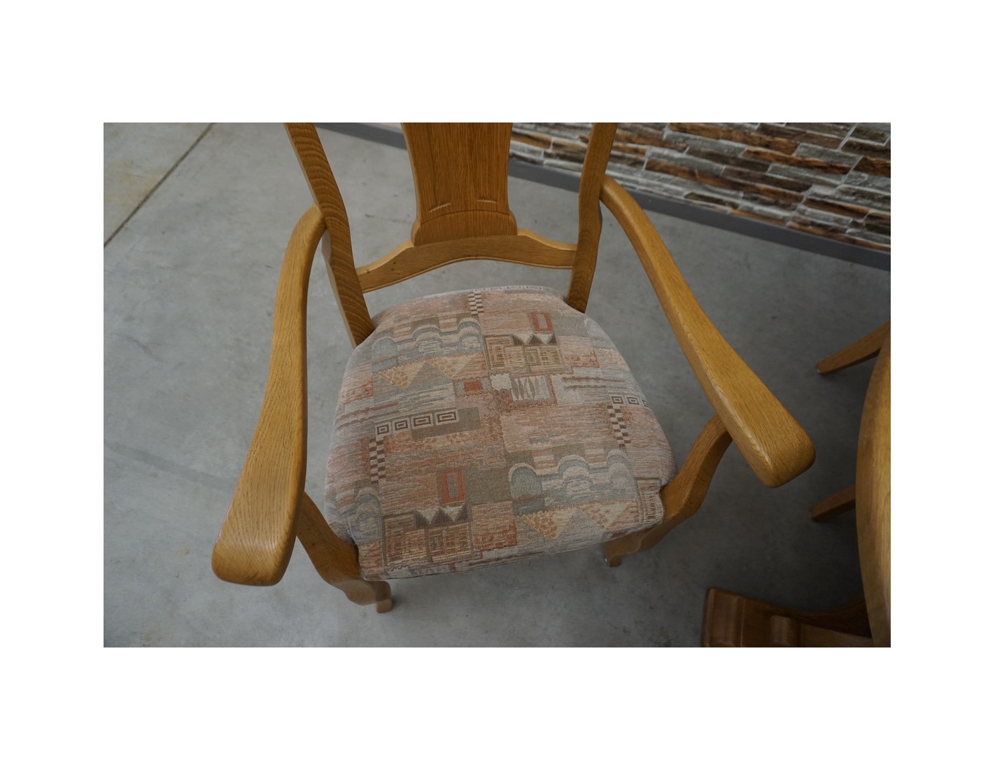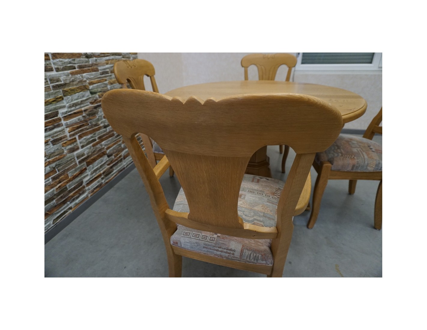 - 2 mniejsze krzesła: 44 × 43 cm, wysokość siedziska 49 cm, wysokość oparcia 95 cm