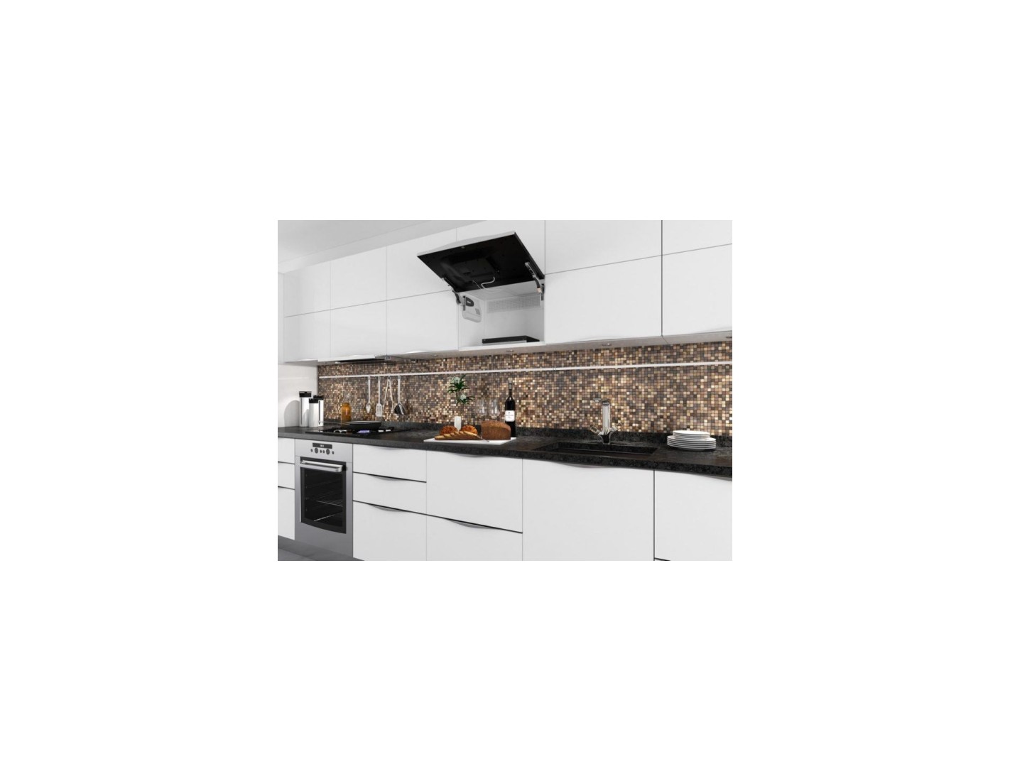 Smukła konstrukcja z hartowanym szkłem idealnie wkomponowuje się w zabudowę meblową.