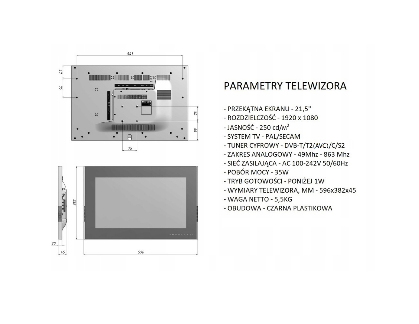- Zastosowanie lekkiej obudowy, wytworzonej z tworzywa sztucznego znacznie zmniejsza wagę telewizora