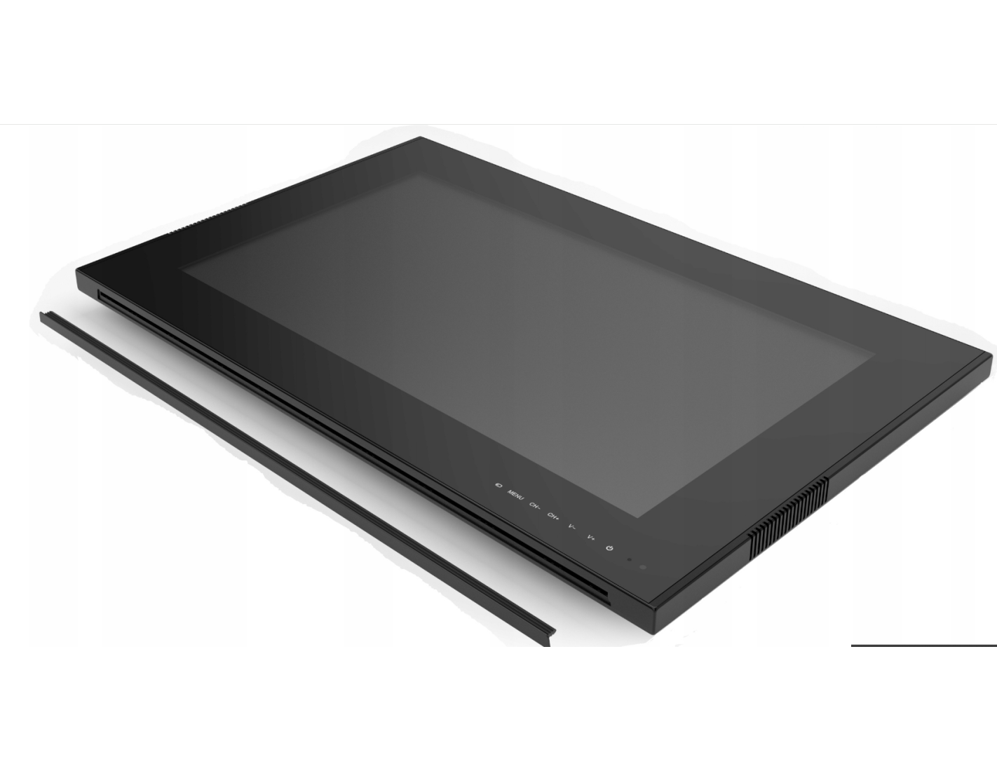 - Przednia strona telewizora kuchennego pokryta jest szkłem hartowanym oraz czarną oprawą z klawiaturą sensoryczną