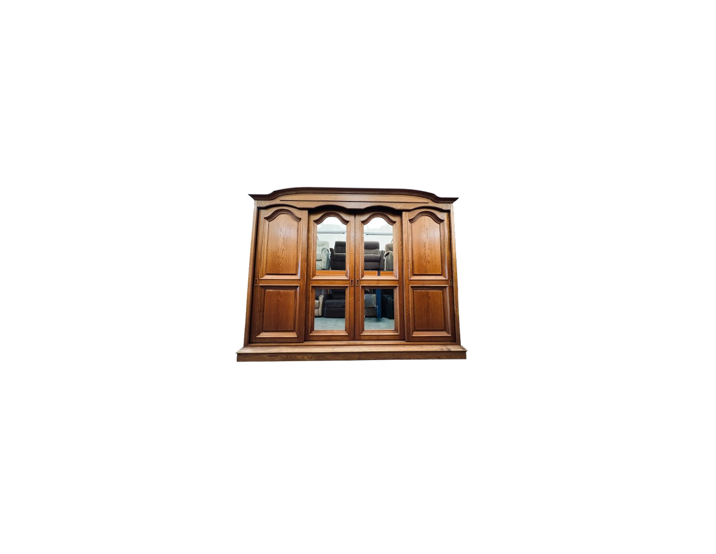 Elegancka i pojemna szafa dębowa z drzwiami przesuwnymi i lustrami to idealny wybór do dużych sypialni i garderób. Dzięki nowoczesnemu systemowi drzwi przesuwnych zyskujemy wygodny dostęp do wnętrza bez potrzeby dodatkowego miejsca na otwieranie drzwi. Lustra na frontach optycznie powiększają przestrzeń i nadają wnętrzu jasności.